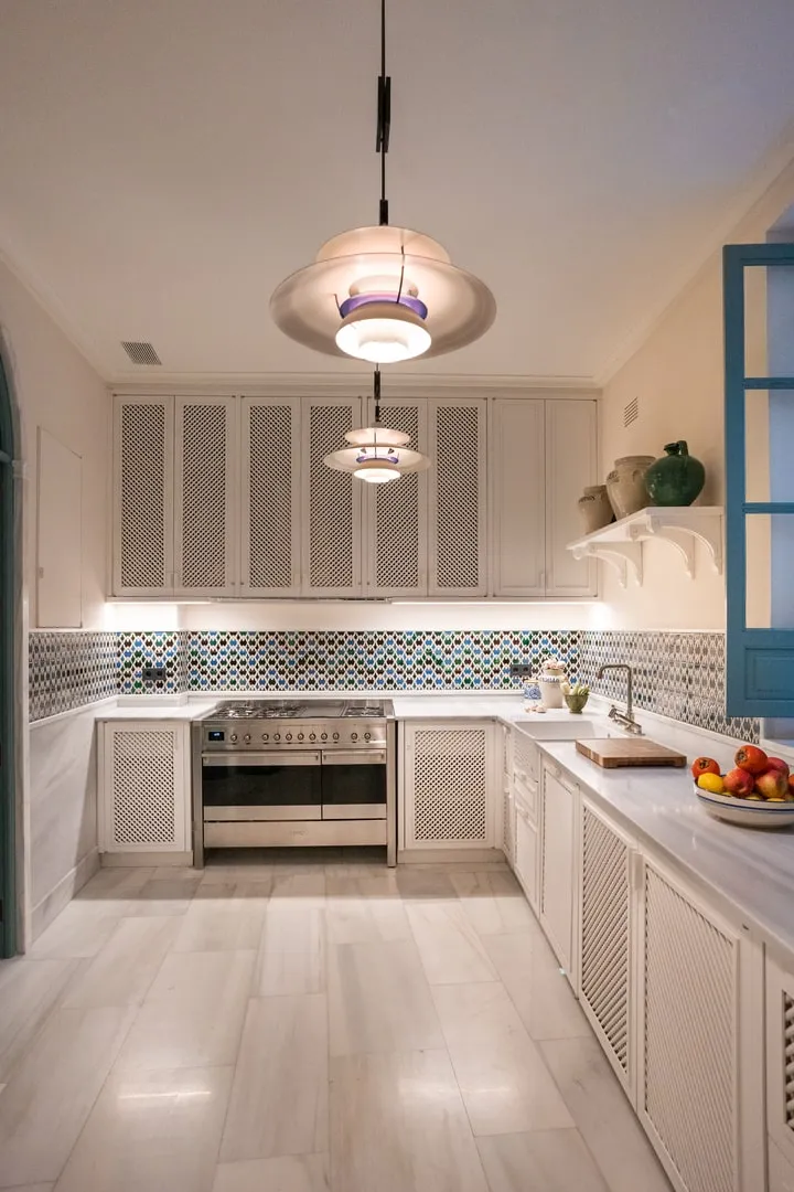 Step inside and be captivated by the intricate design of this luxurious villa. The seven bedrooms and seven bathrooms ensure ample space and privacy for up to 14 guests. Each room is adorned with beautiful patterned tiles and ornate headboards, exuding a sense of opulence. The villa’s spacious living areas are perfect for gatherings, and the fully equipped kitchen ensures you can enjoy delightful meals with ease.
