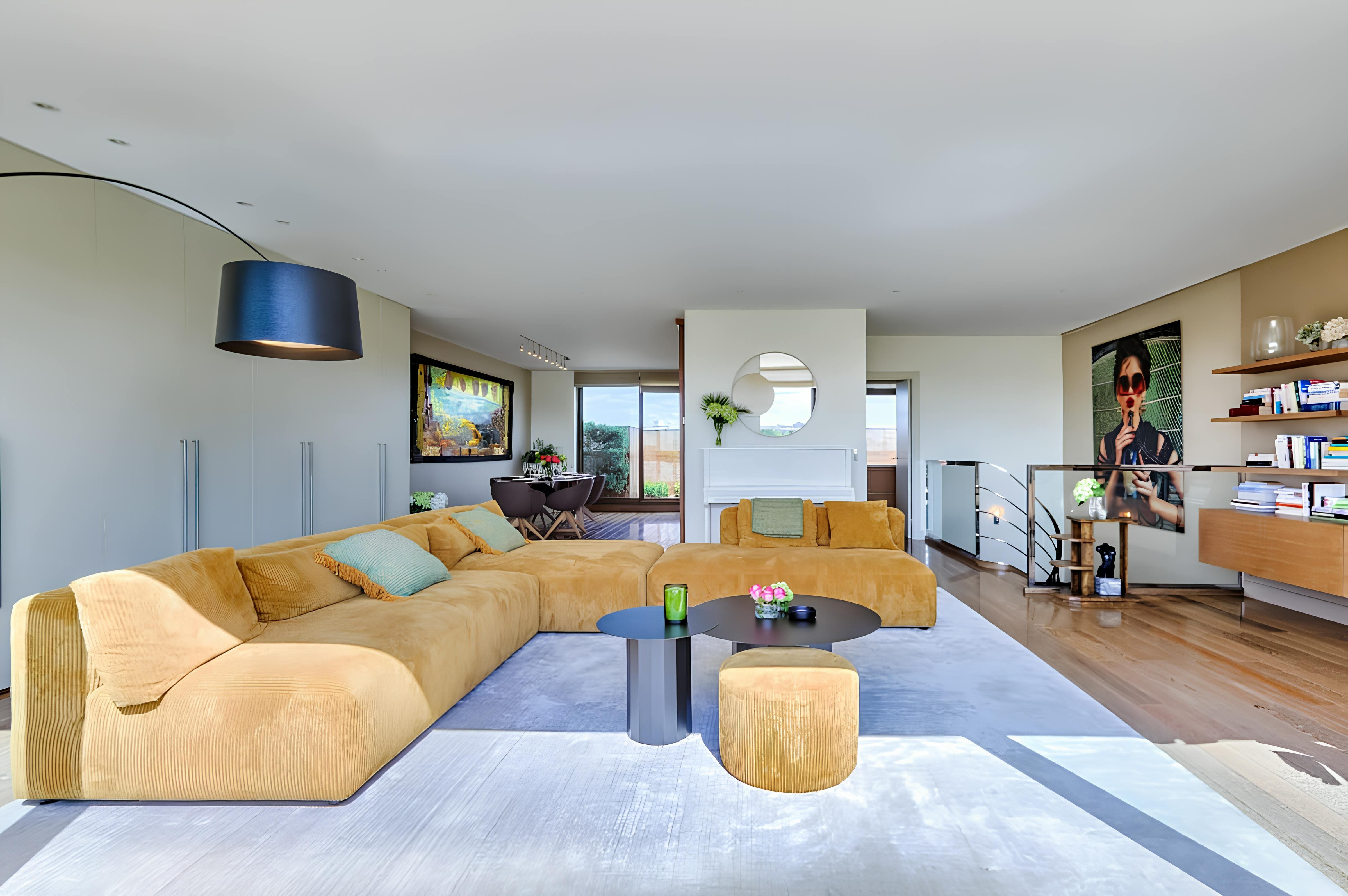 Step inside this beautifully designed townhouse and experience the blend of classic Parisian charm with modern amenities. The interior boasts a spacious living area with plush seating and stylish decor, perfect for socializing or unwinding. The open-plan layout seamlessly connects the living area to a dining space, where a chic dining table offers a versatile workspace for remote work. The two en-suite bedrooms on the lower level provide privacy and comfort, each featuring high-end furnishings and elegant bathrooms.