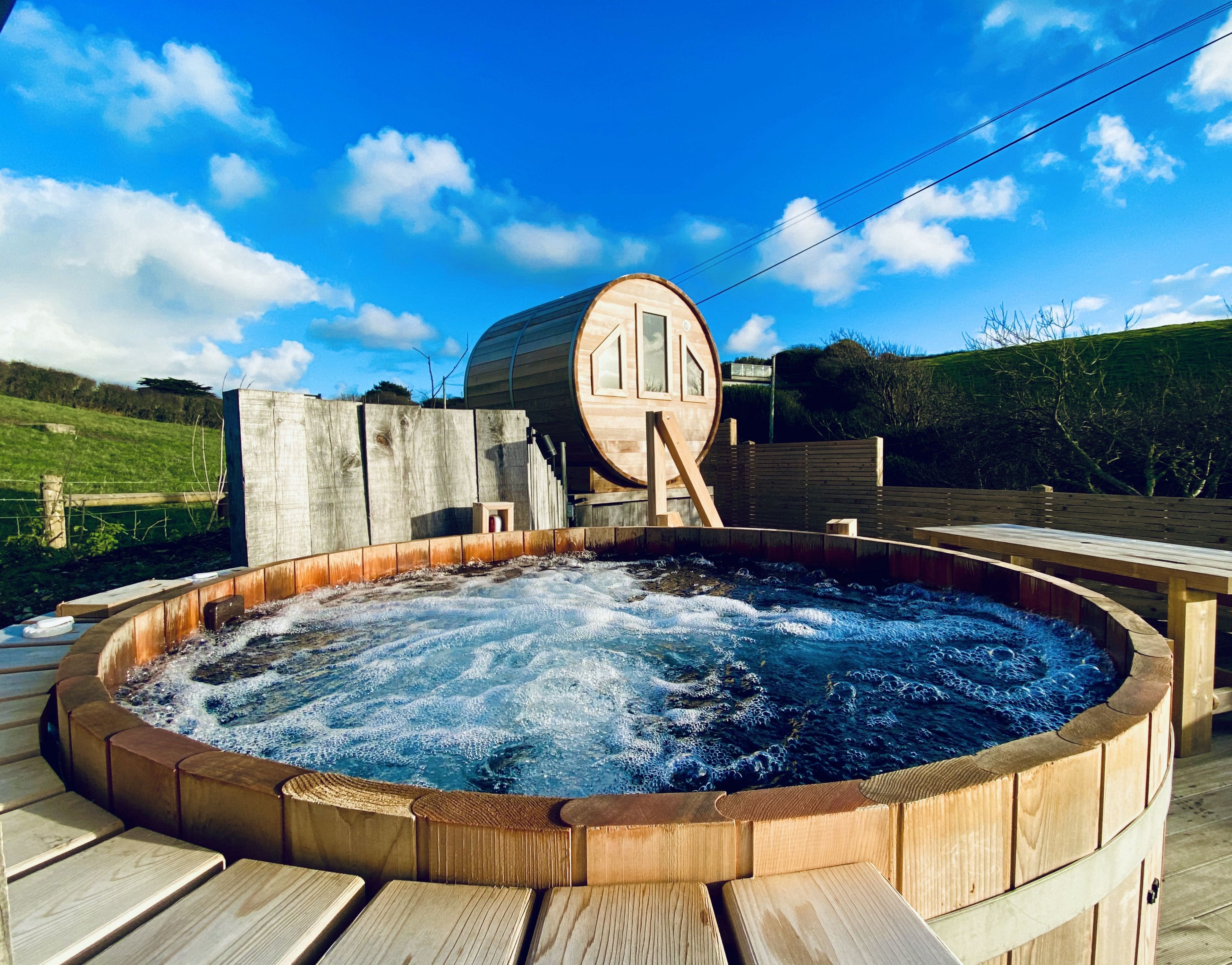 Outside, the property boasts a private hot tub where you can unwind while enjoying the spectacular sea views. Just a short walk from the beach, the location offers easy access to Cornwall’s stunning coastline. The outdoor dining area is perfect for alfresco meals, and the lush garden provides a serene backdrop for relaxation.