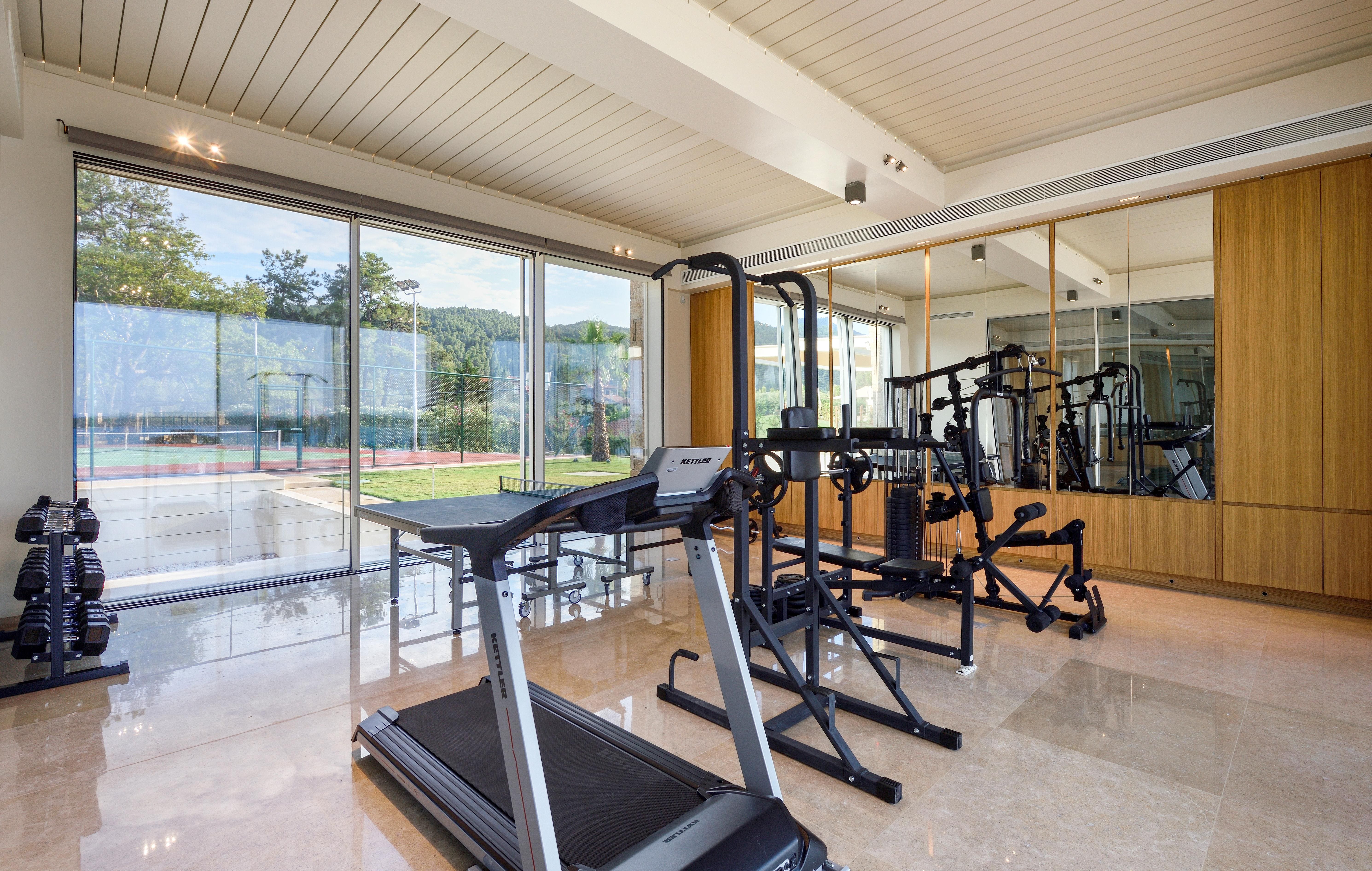 Outside, the villa’s expansive terrace provides the perfect backdrop for relaxation and entertainment. Enjoy the sauna, swim in the inviting pool, or challenge friends to a match on the private tennis court. With direct access to the beach, guests can enjoy sun-soaked days by the sea, while the lush gardens offer tranquil spots for reflection and leisure.