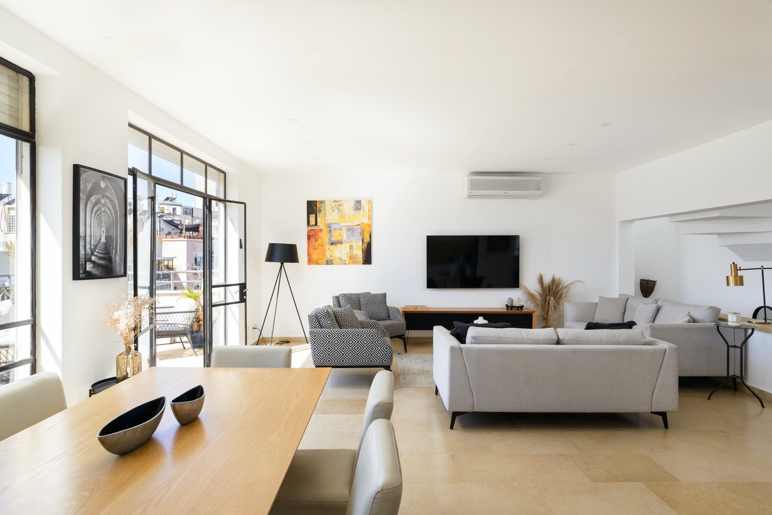 Two private terraces invite you to bask in the Mediterranean sun while enjoying alfresco meals with a backdrop of panoramic city and sea views. The proximity to Gordon Beach makes it easy to indulge in sun-soaked afternoons. The vibrant atmosphere of Tel Aviv envelops you, with its bustling streets and seaside charm.