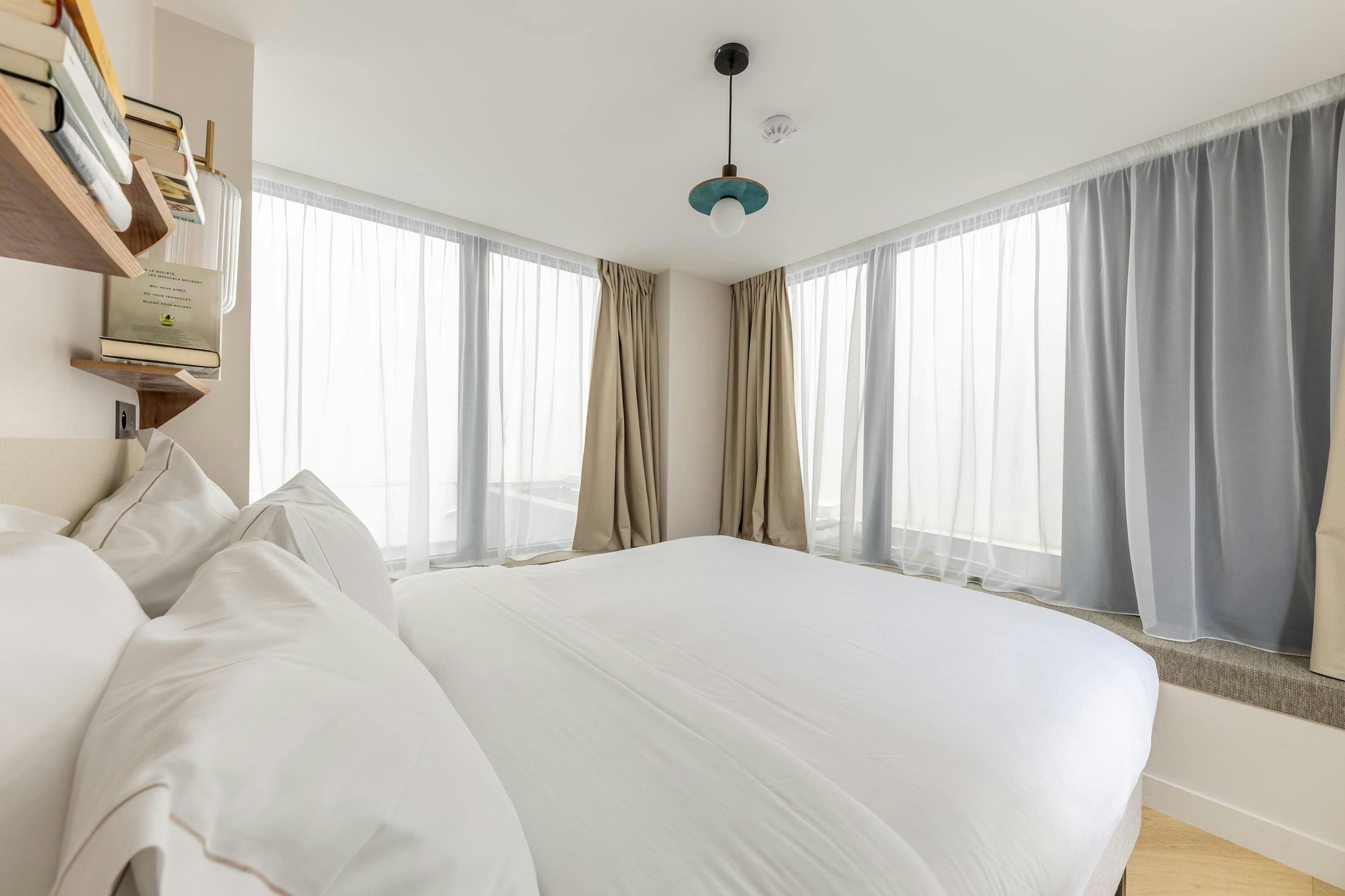 While the apartment itself is a sanctuary of comfort, its outdoor spaces offer a unique glimpse into Parisian life. Enjoy your morning coffee on the private balcony, taking in the bustling city below. The building also includes access to a shared gym, perfect for maintaining fitness routines during your stay.