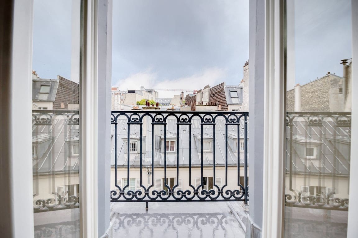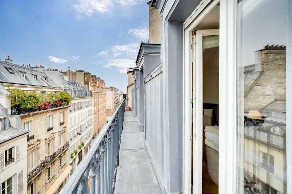 The apartment’s balcony is the perfect spot to enjoy a morning coffee or an evening glass of wine, while taking in the breathtaking views of Parisian rooftops. Although the property lacks air conditioning, the large balcony doors allow for a refreshing breeze to flow through the space, enhancing your comfort during warmer days.