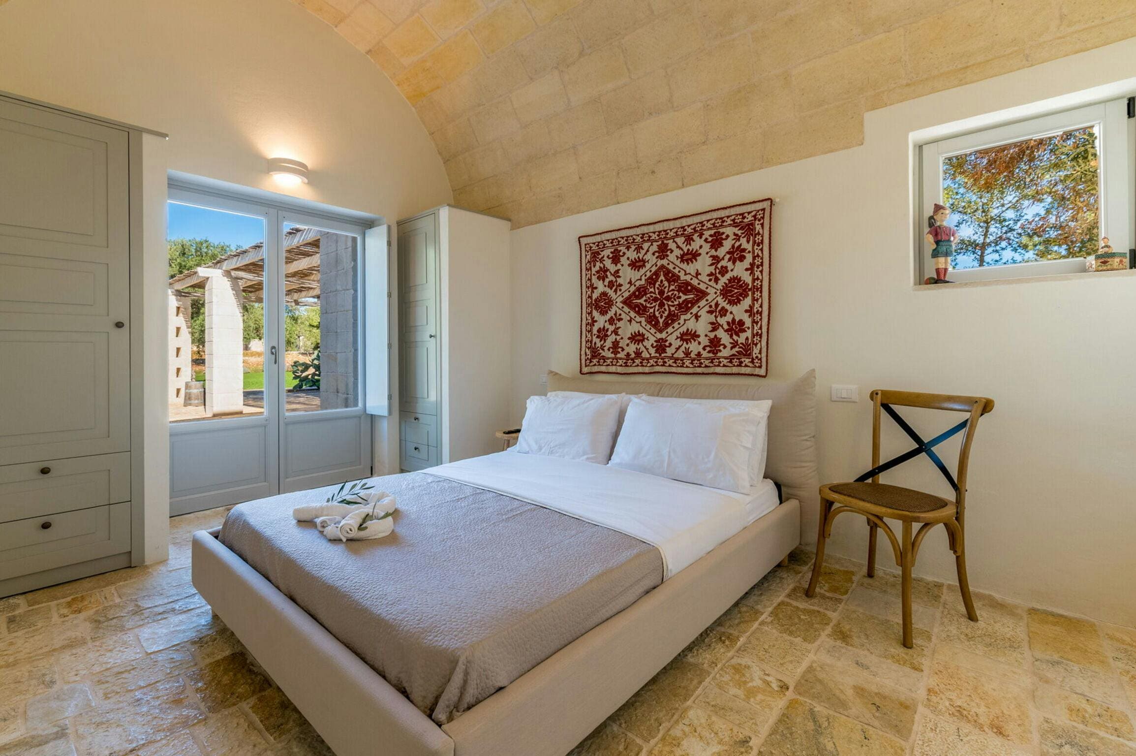 The outdoor spaces are a true highlight, featuring a stunning swimming pool open from May to October, surrounded by olive trees and offering breathtaking views. The terrace is an ideal spot for alfresco dining, allowing you to enjoy the tranquil surroundings and the beauty of Ostuni.