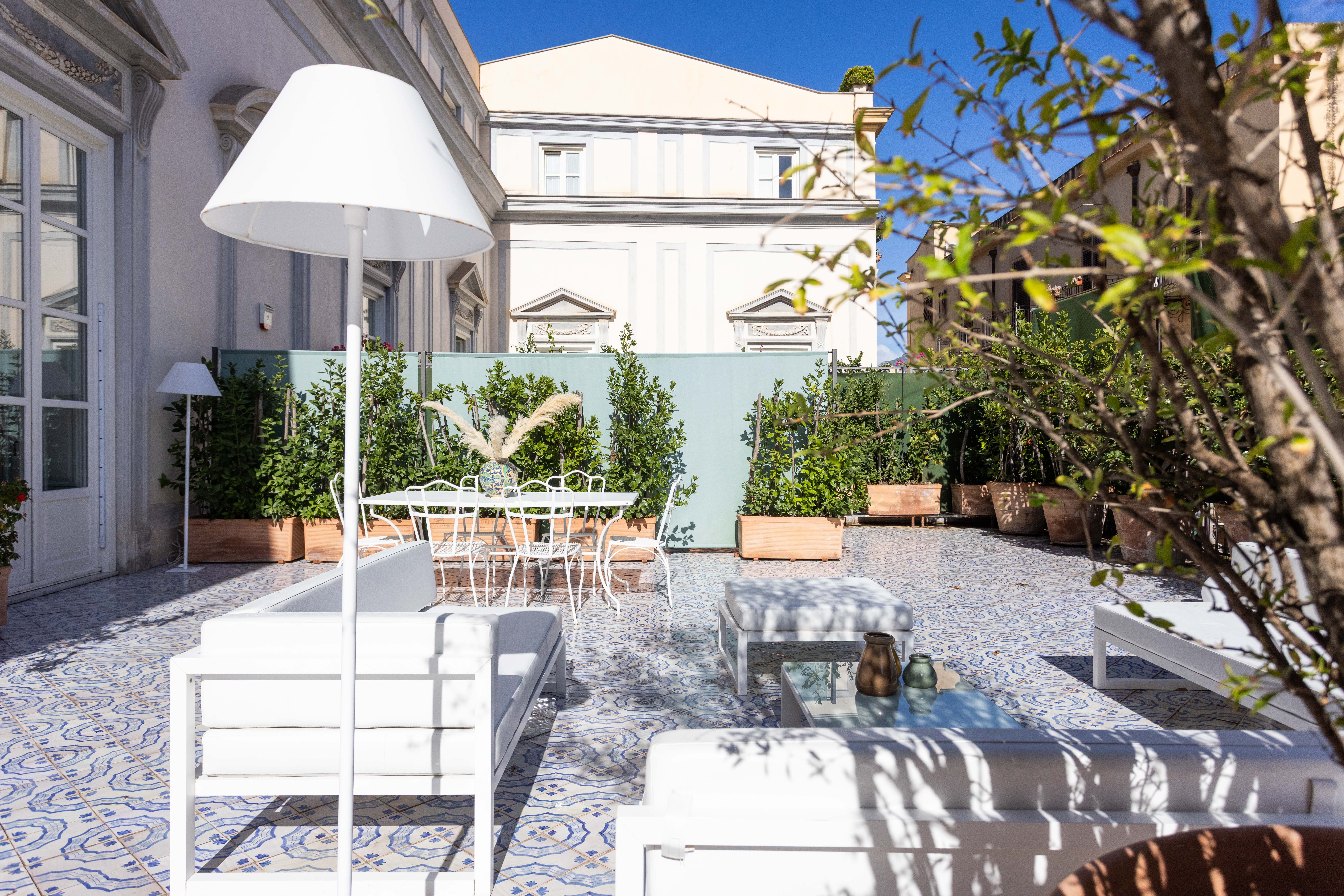 The blue-and-white-tiled terrace is a standout feature of this property, offering a spectacular space for dining, relaxing, or simply soaking up the sun. With the bustling city of Palermo at your doorstep, enjoy the convenience of being close to all the action while having a tranquil space to retreat to.