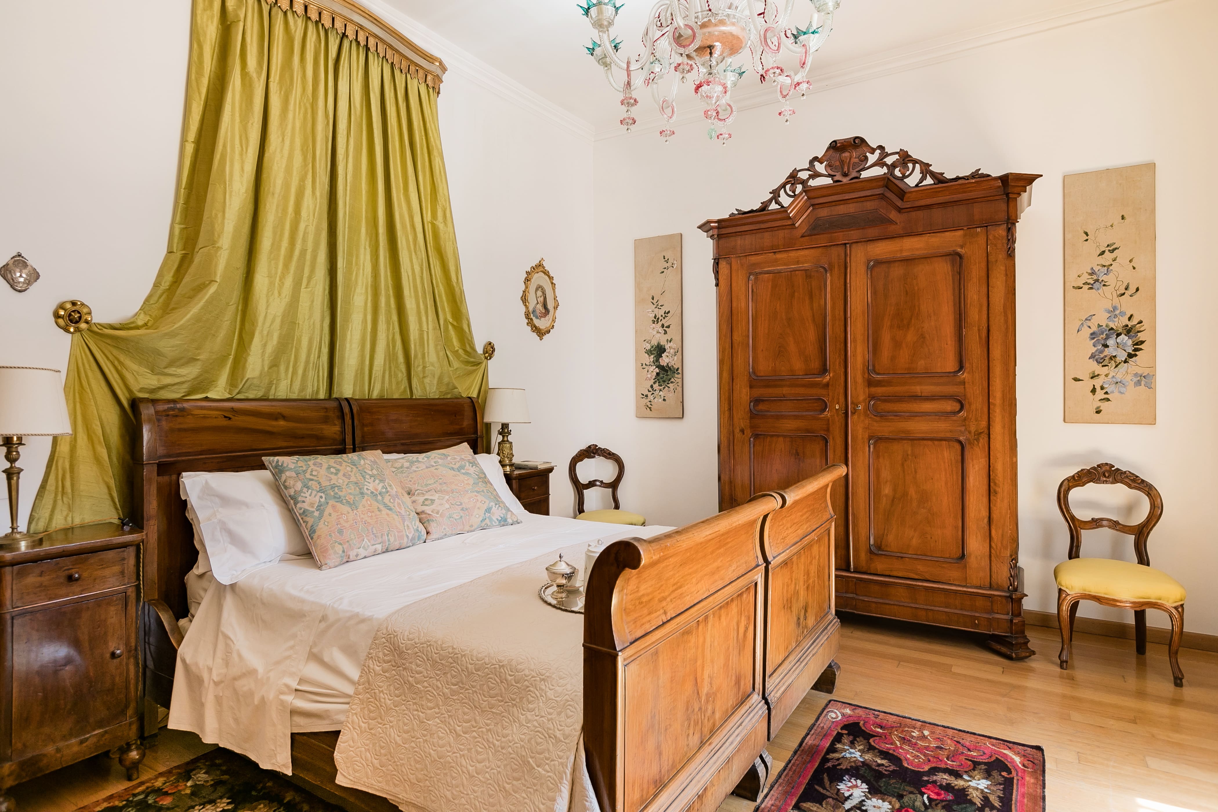 This grand apartment welcomes you with its high vaulted ceilings and exquisite glass chandeliers, creating an atmosphere of opulence. The living spaces are adorned with historic artifacts and antique furnishings that tell the story of Sicily’s rich past. The large dining room is ideal for sumptuous feasts, while the cozy library invites you to lose yourself in a world of books. Each of the four bedrooms is a sanctuary, offering plush bedding and en-suite bathrooms that ensure privacy and relaxation.
