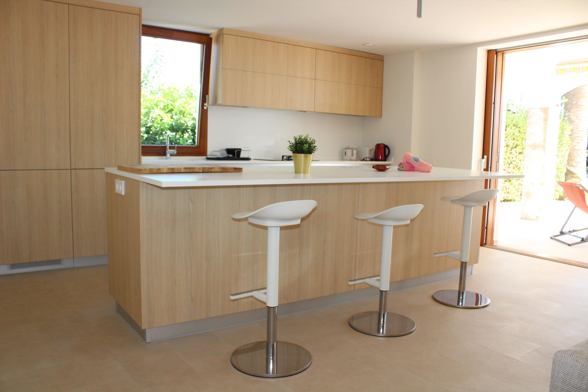 The interior of Casa Tramuntana Palma exudes sophistication and modernity. With four spacious bedrooms and three elegantly designed bathrooms, each space offers a sanctuary of relaxation. The open-plan living area is perfect for entertaining, featuring sleek furnishings and a fully equipped kitchen where culinary delights are easily crafted. Every detail has been thoughtfully curated to provide a seamless living experience for guests.