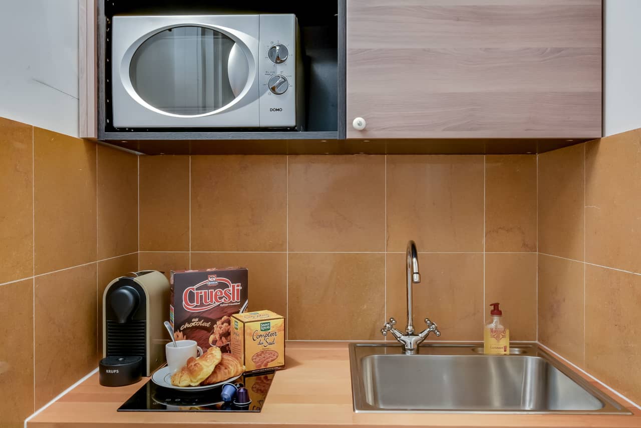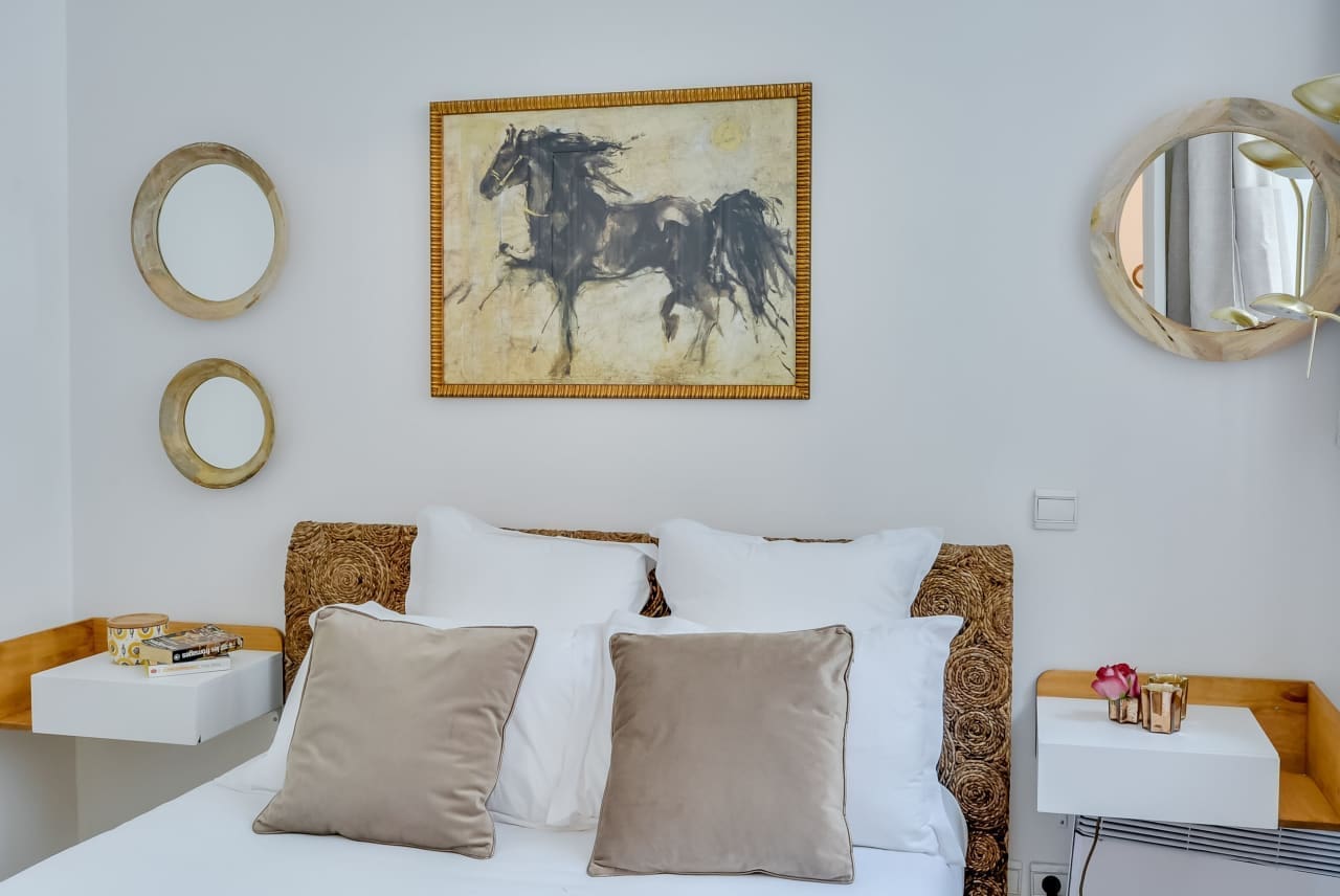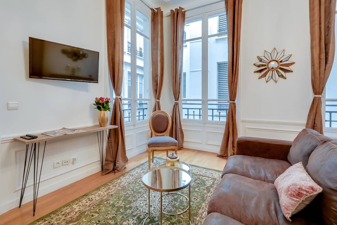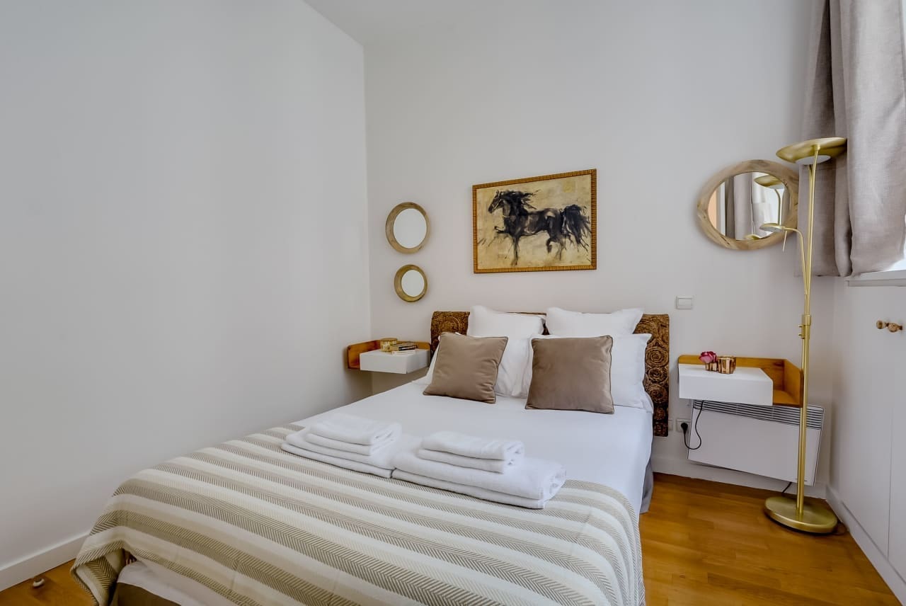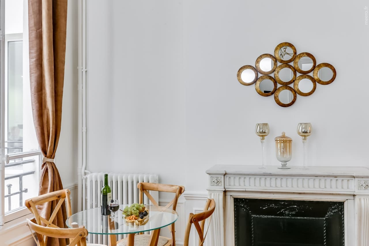 Discover this exquisite luxury apartment rental in the heart of Paris, perfectly positioned moments from the iconic Arc de Triomphe and world-famous Champs-Élysées. This beautifully appointed vacation rental features sophisticated interiors designed with opulent furnishings, including ornate mirrors, premium textiles, and an elegant fireplace that creates an atmosphere of refined Parisian living. The thoughtfully designed space maximizes comfort for two guests with abundant natural light streaming through large windows, illuminating the rich color scheme and luxurious details throughout. The fully equipped kitchen provides everything needed for intimate dining experiences, while the prime location offers unparalleled access to Paris’s most celebrated attractions. Walk effortlessly to the Grand Palais, explore haute couture boutiques, or enjoy world-class dining within minutes of your accommodation. This premium villa rental combines classic Parisian elegance with modern conveniences, making it the perfect choice for discerning travelers seeking an authentic luxury experience in one of the world’s most prestigious neighborhoods. Experience the epitome of sophisticated urban living in this exceptional Paris vacation rental.