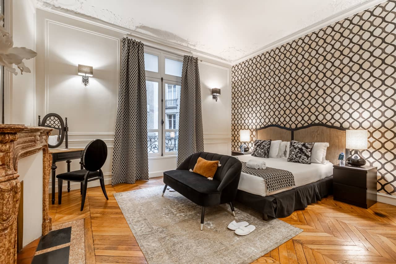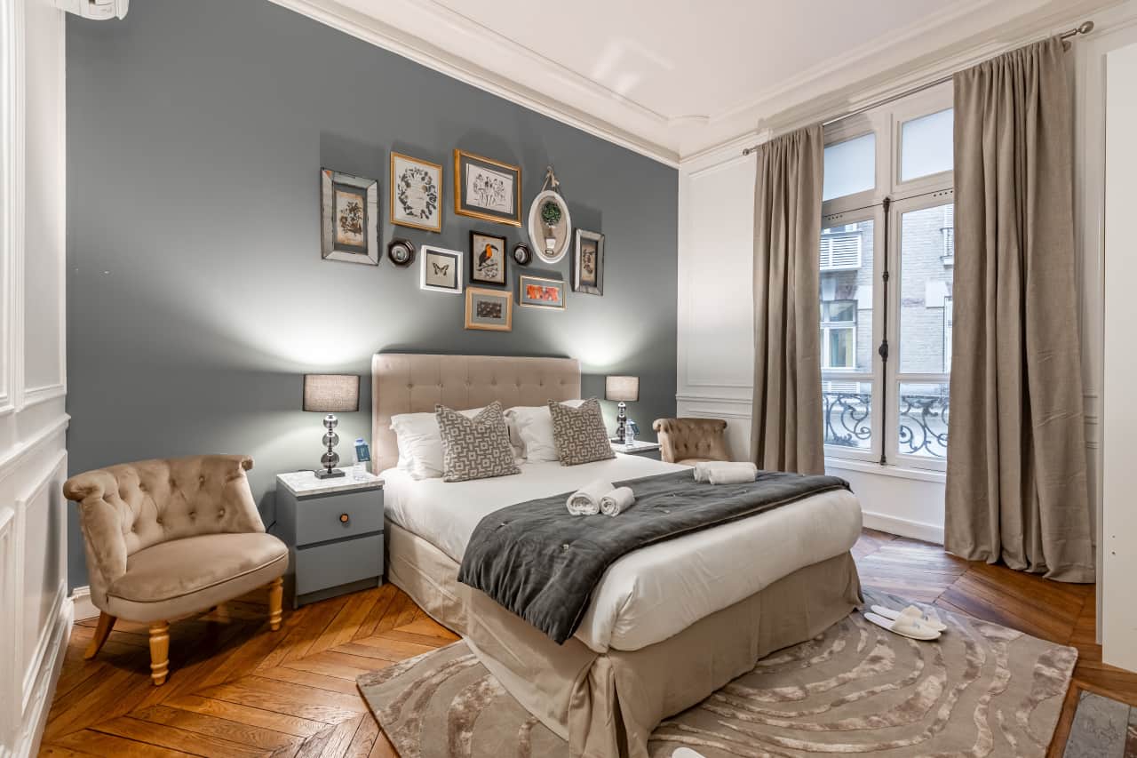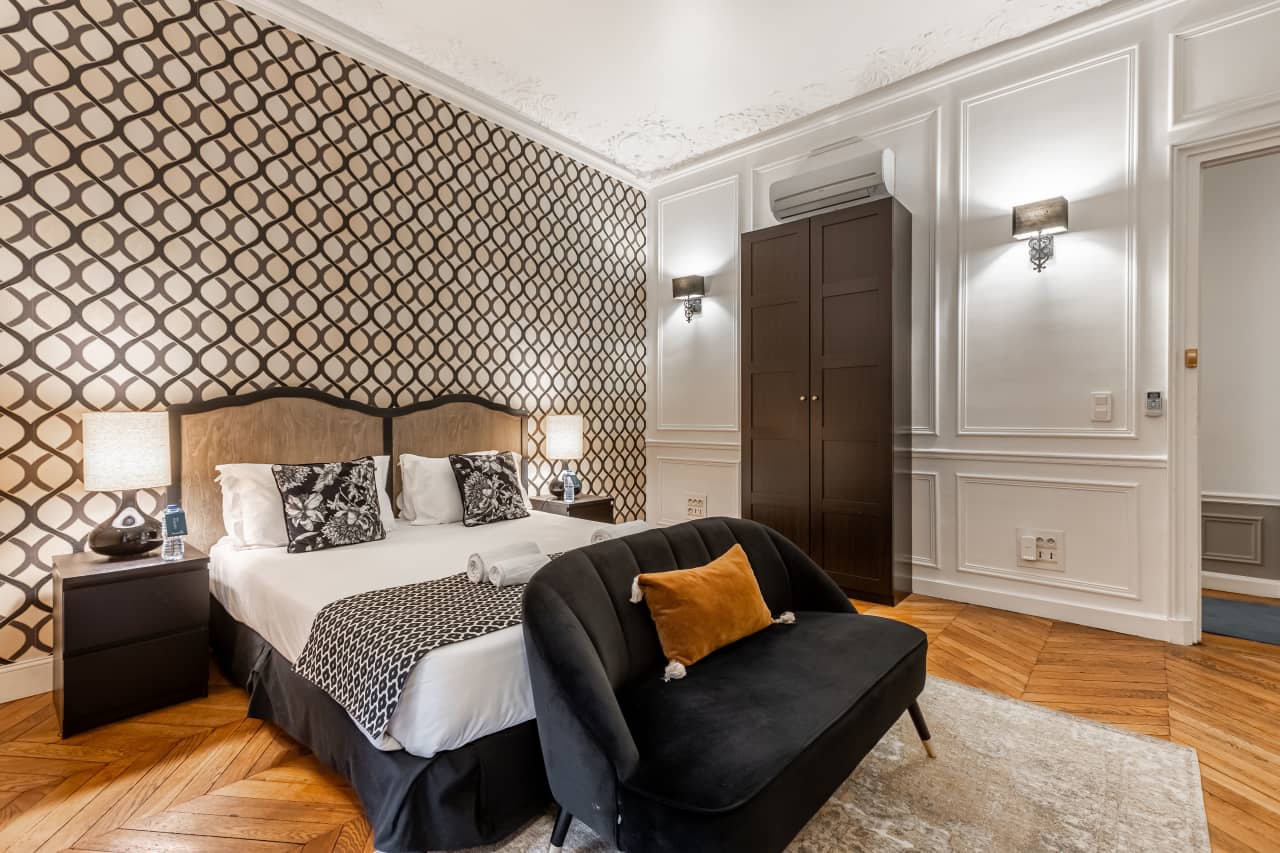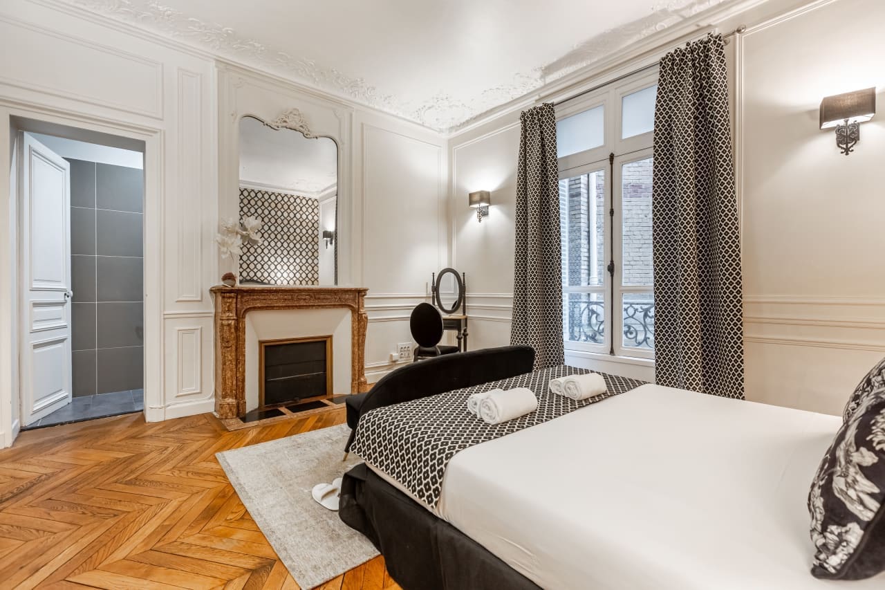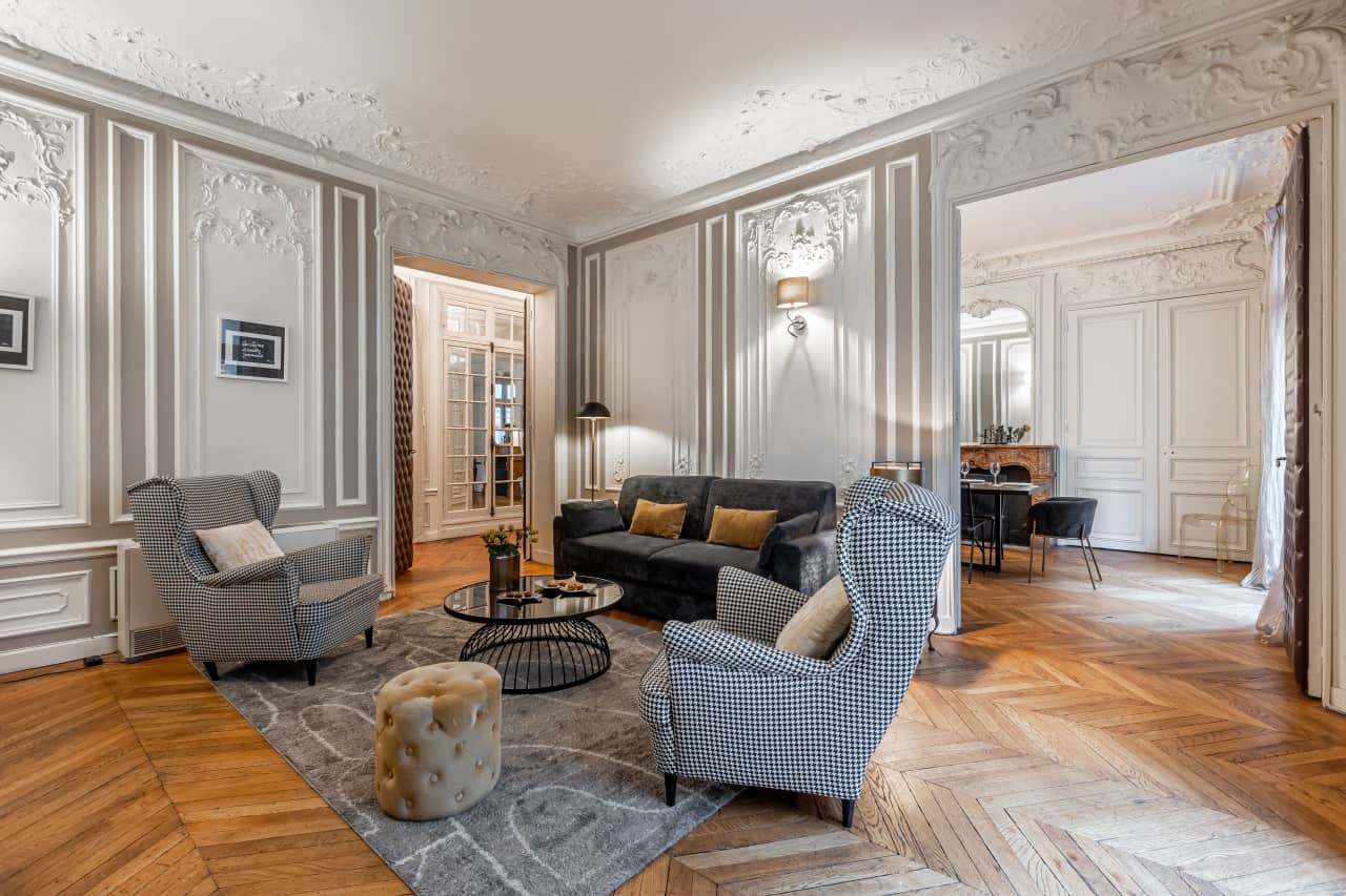 Experience the pinnacle of Parisian luxury in this exquisite 3-bedroom apartment mere moments from the iconic Champs-Élysées. This 160 square meter vacation rental masterfully blends timeless elegance with modern sophistication, featuring stunning hardwood floors throughout and soaring ceilings that create an airy, grand atmosphere. The accommodation boasts marble fireplaces that serve as dramatic focal points, while carefully curated furnishings and vintage-inspired wallpapers create an atmosphere of refined luxury. Each of the three beautifully appointed bedrooms offers a tranquil sanctuary with premium linens and thoughtful details for the ultimate comfort. The gourmet kitchen comes fully equipped for culinary enthusiasts, perfect for preparing intimate meals or entertaining guests. Two elegant bathrooms provide spa-like amenities for a truly indulgent stay. This prime Paris location puts you at the heart of the city’s most prestigious shopping, dining, and cultural attractions, making it the ideal luxury villa rental for discerning travelers seeking an authentic Parisian experience with unparalleled convenience and style.