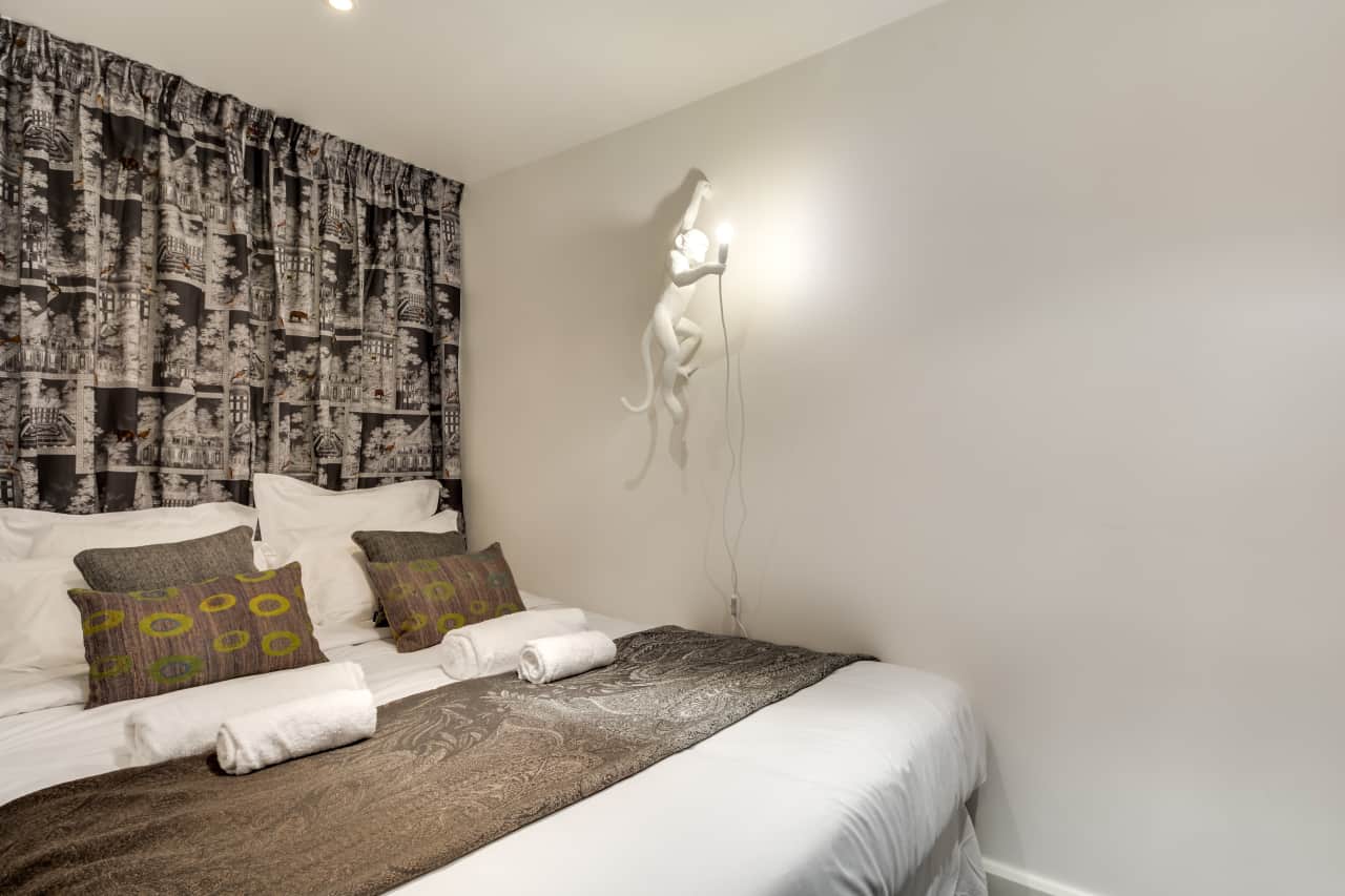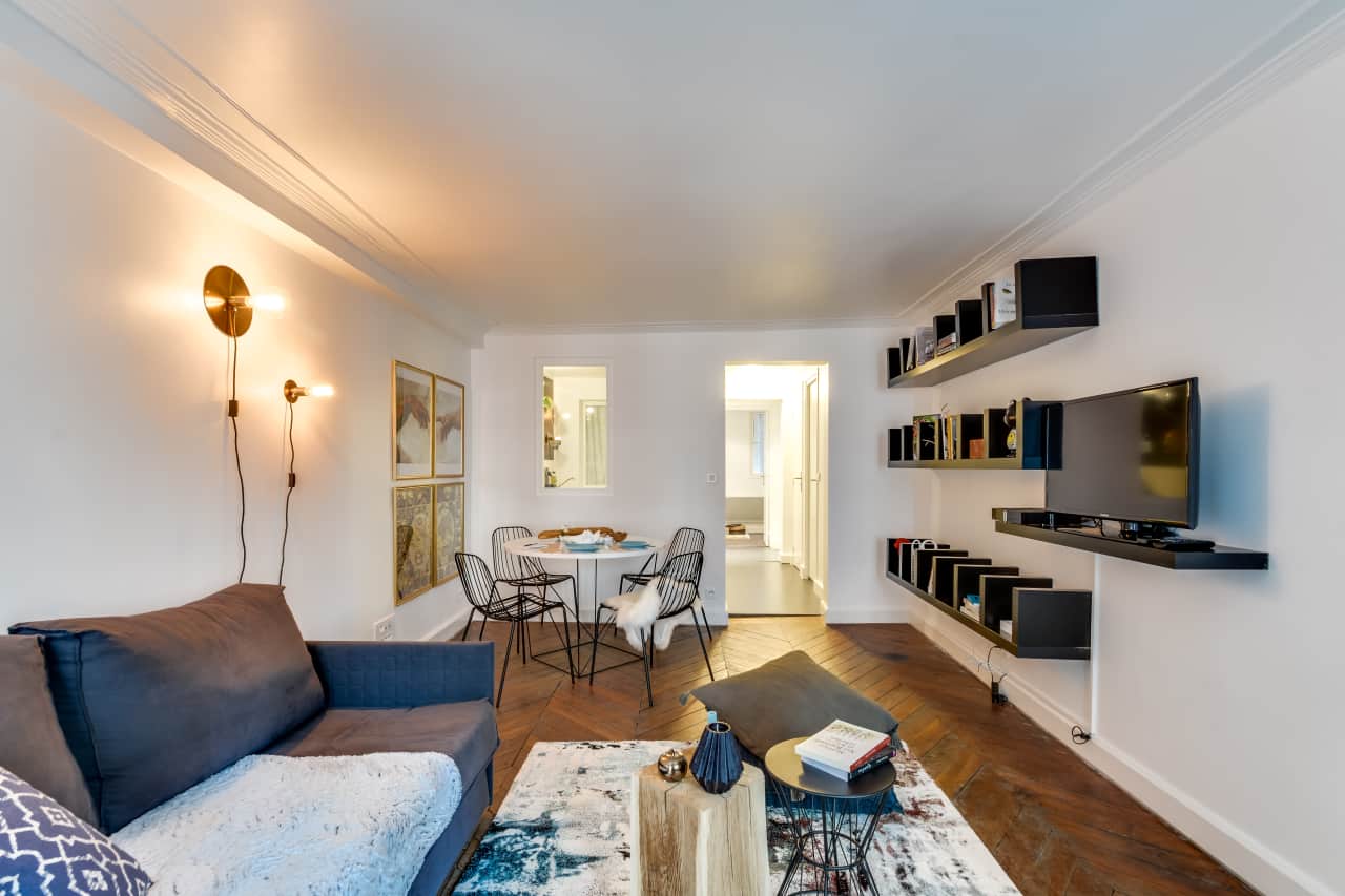 Experience the epitome of Parisian luxury in this exquisite 1-bedroom villa nestled in the prestigious Les Halles district. This 40 sqm vacation rental combines contemporary sophistication with timeless French elegance, featuring floor-to-ceiling windows that flood the space with natural light and showcase stunning city views. The meticulously designed accommodation boasts rich hardwood flooring, curated artwork, and luxurious textile details that create an intimate urban sanctuary. The gourmet kitchen comes fully appointed with premium appliances, perfect for preparing intimate meals during your Paris getaway. Located in the coveted 1st arrondissement, this luxury villa places guests steps away from world-class shopping, acclaimed restaurants, and iconic landmarks. The vibrant Les Halles neighborhood offers an authentic Parisian lifestyle with its bustling markets, charming bistros, and historic architecture. This premium vacation rental provides the perfect base for exploring the City of Light while enjoying modern comforts and refined amenities. Ideal for couples seeking an unforgettable luxury accommodation experience in the heart of Paris.