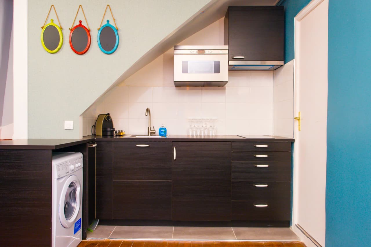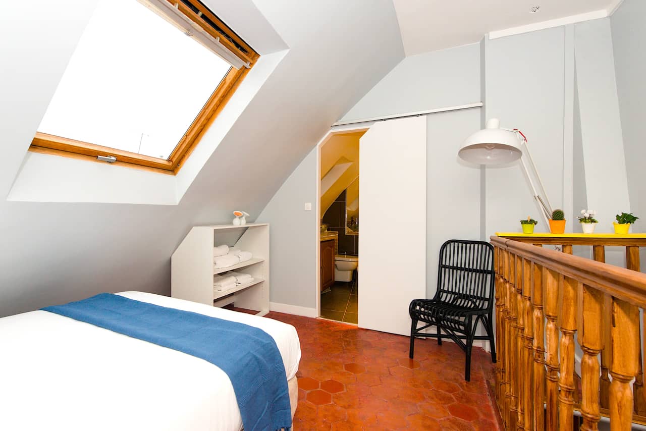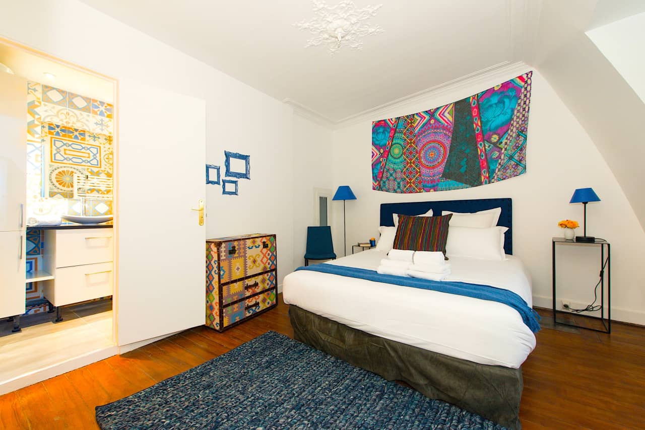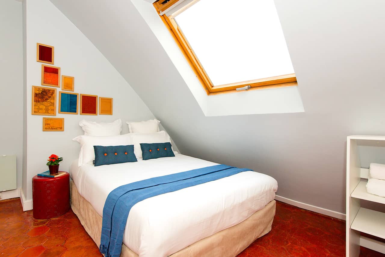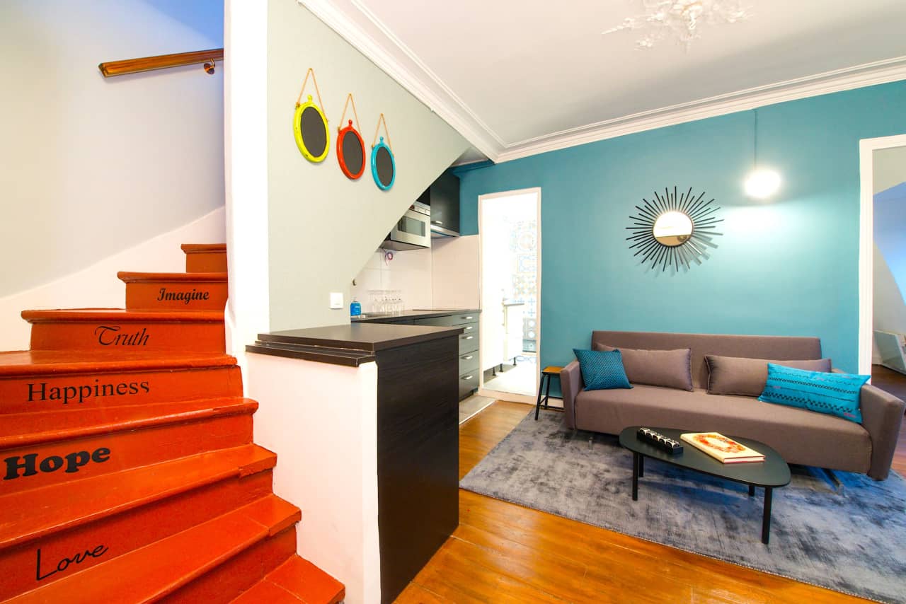 Discover this exceptional luxury villa rental in Paris’s prestigious 1st arrondissement, steps from the Louvre Museum and Palais Royal gardens. This sophisticated 64 sqm accommodation features three elegantly appointed bedrooms and two bathrooms, perfect for families or groups of up to six guests. The villa showcases contemporary Parisian design with vibrant artistic touches throughout, creating an inspiring urban sanctuary. Enjoy the cleverly designed gourmet kitchen nestled beneath a stunning staircase, while dramatic angled ceilings with strategically placed windows frame breathtaking views of Paris’s iconic rooftops. The property’s unique architectural elements maximize natural light and space, offering guests an authentic Parisian living experience in one of the city’s most coveted neighborhoods. This luxury vacation rental provides immediate access to world-class shopping along Rue Saint-Honoré, renowned museums, and the cultural heart of Paris. Whether exploring nearby attractions or relaxing in this stylish retreat, guests will appreciate the perfect blend of comfort, location, and sophisticated design that defines this remarkable Parisian villa.