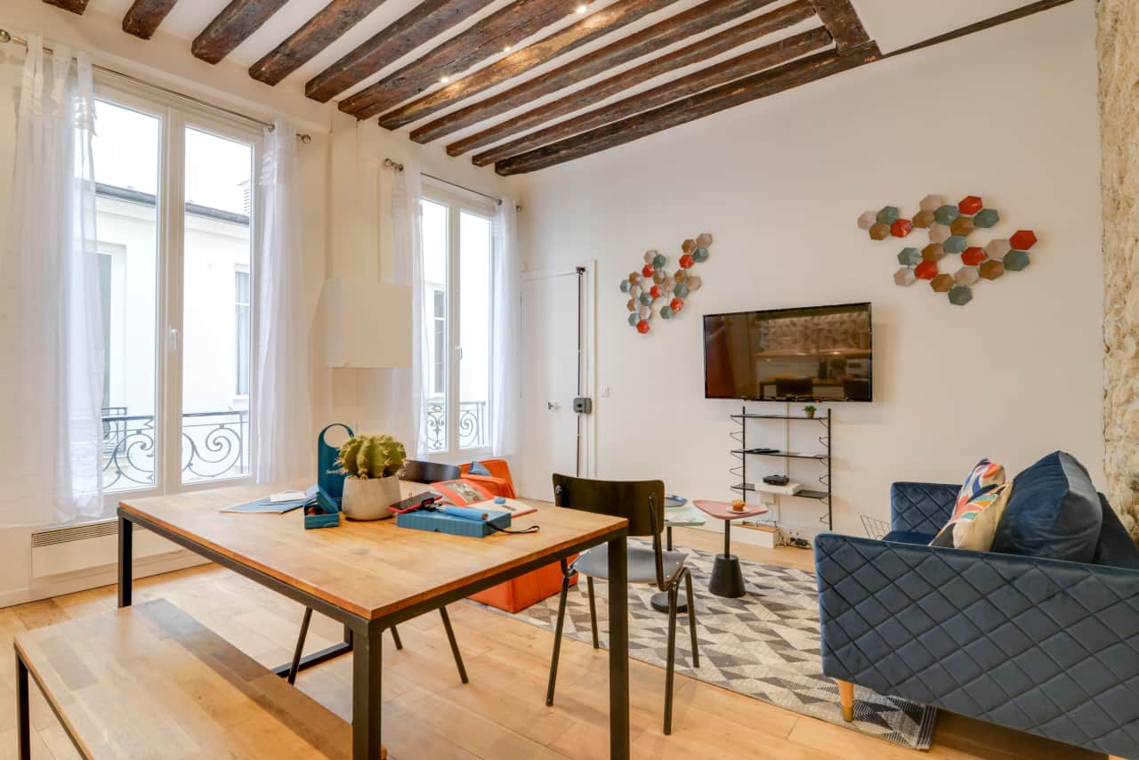 Experience the pinnacle of Parisian luxury in this exquisite 2-bedroom villa nestled in the prestigious Opera Grands Boulevards district. This sophisticated 57-square-meter vacation rental seamlessly blends historic charm with contemporary elegance, featuring authentic exposed stone walls and designer furnishings throughout. The gourmet kitchen invites culinary adventures with premium appliances and ample space for preparing French delicacies using local market finds. Perfectly positioned in the dynamic second arrondissement, this luxury accommodation offers unparalleled access to world-class shopping along Rue Etienne Marcel’s designer boutiques and the vibrant entertainment hub of Forum des Halles. The villa comfortably accommodates up to 4 guests with premium linens and modern amenities ensuring an unforgettable stay. Step outside to discover iconic Parisian cafés, renowned restaurants, and cultural landmarks just moments from your doorstep. Whether you’re seeking a romantic getaway or an sophisticated urban retreat, this exceptional Paris villa rental delivers an authentic luxury experience in one of the city’s most coveted neighborhoods, where historic grandeur meets contemporary Parisian lifestyle.