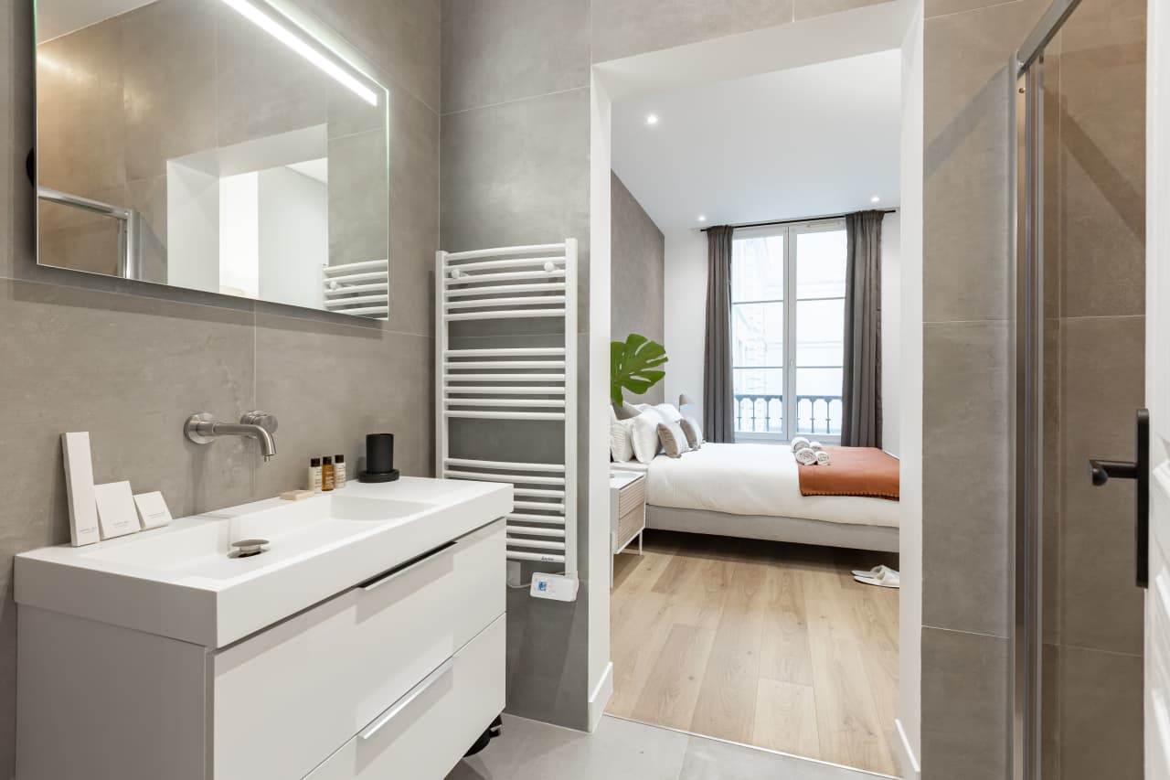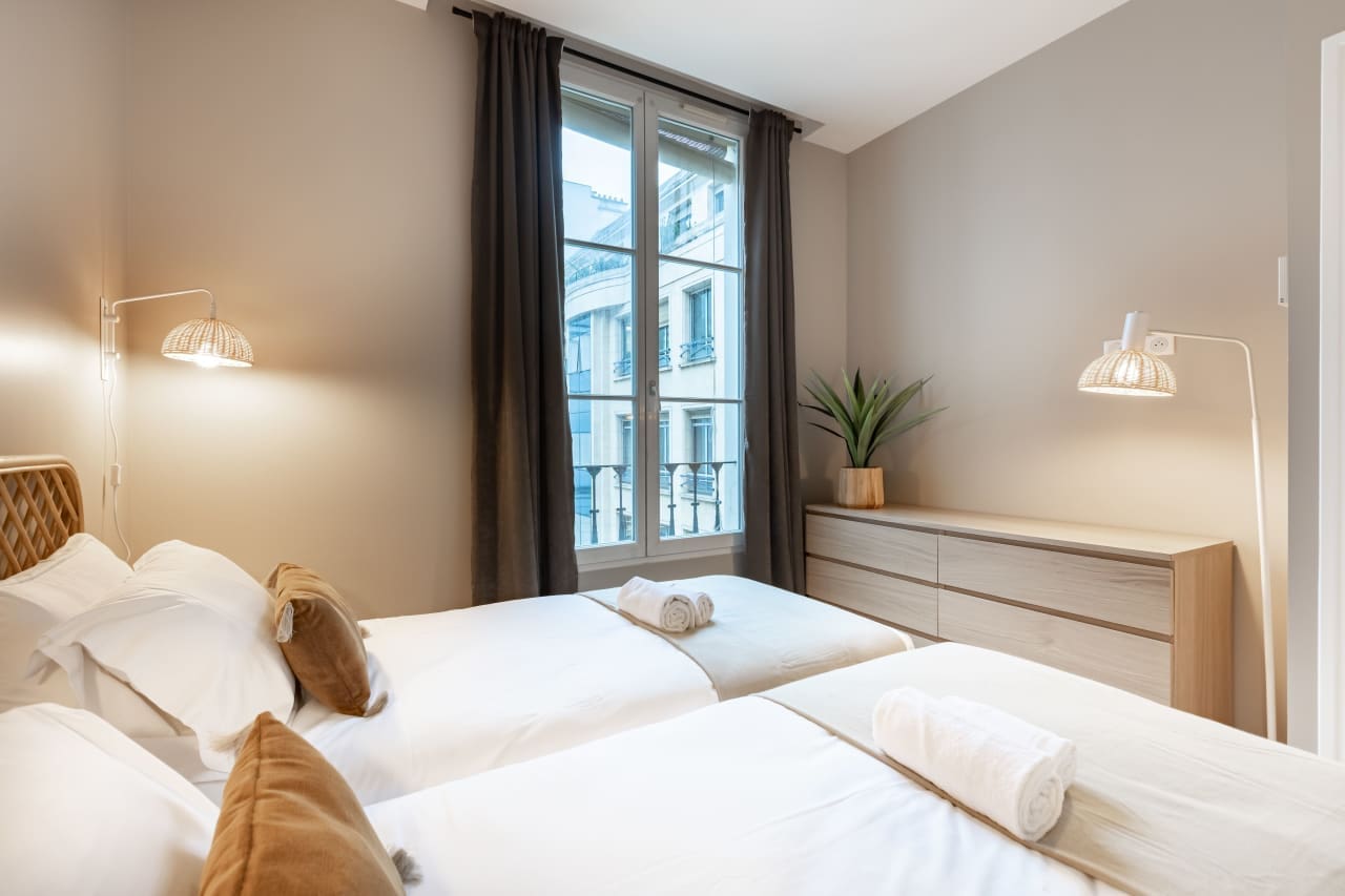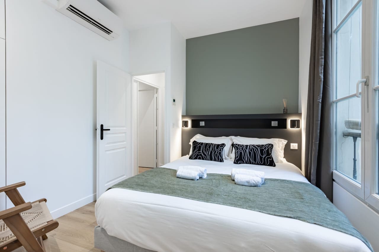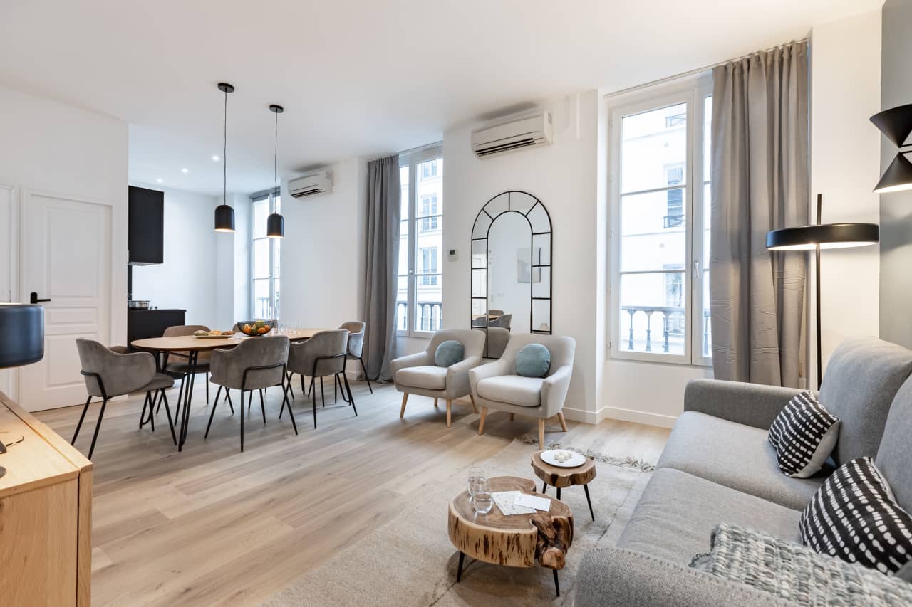Discover the epitome of Parisian sophistication in this exquisite three-bedroom luxury villa nestled in the prestigious Palais Royal Louvre district. This 76-square-meter vacation rental masterfully blends classic French elegance with contemporary design, featuring carefully curated furnishings that capture the authentic spirit of Paris. Each of the three sumptuous bedrooms provides a serene retreat for up to six guests, while two beautifully appointed bathrooms ensure comfort and convenience. The heart of this luxury accommodation is its state-of-the-art kitchen, perfect for creating memorable dining experiences with loved ones. Floor-to-ceiling windows frame spectacular panoramic views of the historic cityscape, flooding the space with natural light. Located steps from world-renowned museums, charming cafés, and the enchanting Seine River, this premium Paris villa rental offers unparalleled access to the city’s cultural treasures. Whether exploring the nearby Louvre Museum or strolling through elegant gardens, guests enjoy the perfect blend of luxury living and authentic Parisian lifestyle in this exceptional second arrondissement location.