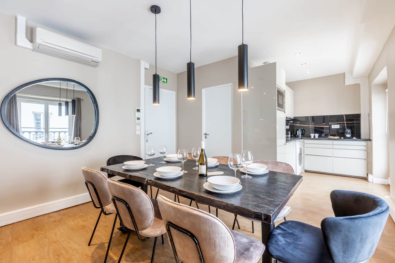 Discover this exquisite luxury villa rental in Paris’s prestigious Palais Royal district, just steps from the world-famous Louvre Museum. This sophisticated 3-bedroom vacation rental accommodates guests in 76 square meters of beautifully appointed space, featuring 2 elegant bathrooms and stunning city views through expansive windows. The accommodation seamlessly blends Parisian heritage with contemporary luxury, showcasing refined interiors that capture the essence of French elegance. Located in the coveted second arrondissement, this premium villa offers unparalleled access to Paris’s cultural treasures, world-class shopping, and finest dining establishments. The fully equipped modern kitchen provides the perfect setting for intimate meals, while the three sumptuous bedrooms ensure restful nights in the heart of the City of Light. Guests enjoy the rare privilege of staying in one of Paris’s most exclusive neighborhoods, where historic charm meets modern sophistication. This luxury accommodation represents the pinnacle of Parisian hospitality, offering discerning travelers an authentic yet luxurious base for exploring the Seine’s romantic banks and the capital’s endless attractions.