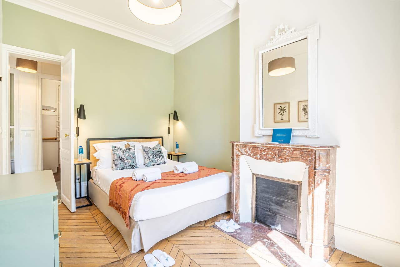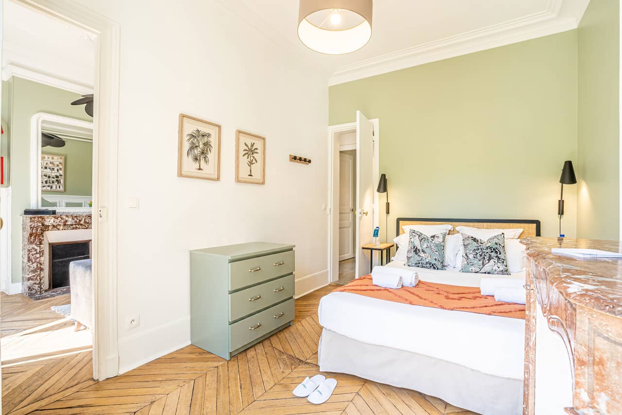 Experience quintessential Parisian elegance in this exquisite luxury apartment nestled in the prestigious Saint-Germain-des-Prés district. This sophisticated one-bedroom vacation rental features pristine hardwood floors, panoramic city views through expansive windows, and designer interiors inspired by the tranquil colors of riverside gardens. The spacious 42 sqm accommodation offers an intimate retreat for discerning travelers seeking authentic Parisian living. The gourmet kitchen comes fully appointed with premium appliances for culinary enthusiasts. Located in Paris’s cultural heart, you’ll enjoy immediate access to world-renowned galleries, boutique shopping, and exceptional dining establishments. This prime 6th arrondissement location places iconic landmarks, charming cafés, and the picturesque Seine River just steps from your door. The thoughtfully curated décor blends contemporary luxury with classic French charm, creating an atmosphere of refined comfort. Perfect for romantic getaways or sophisticated city breaks, this premium Paris accommodation provides an unparalleled base for exploring the City of Light’s most coveted neighborhood.