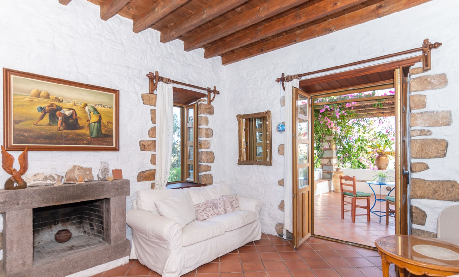 Step into a world of refined elegance as you enter this expansive five-bedroom apartment. The interior boasts a harmonious blend of rustic charm and contemporary style, with exposed stone walls and wooden-beamed ceilings adding character to the spacious living areas. The open-plan living room is a haven of relaxation, featuring plush seating and large windows that bathe the space in natural light. The fully equipped kitchen is a culinary enthusiast’s dream, perfect for preparing delightful meals. Each bedroom is a sanctuary of comfort, offering stunning views and soothing sea breezes, ensuring restful nights for all guests.