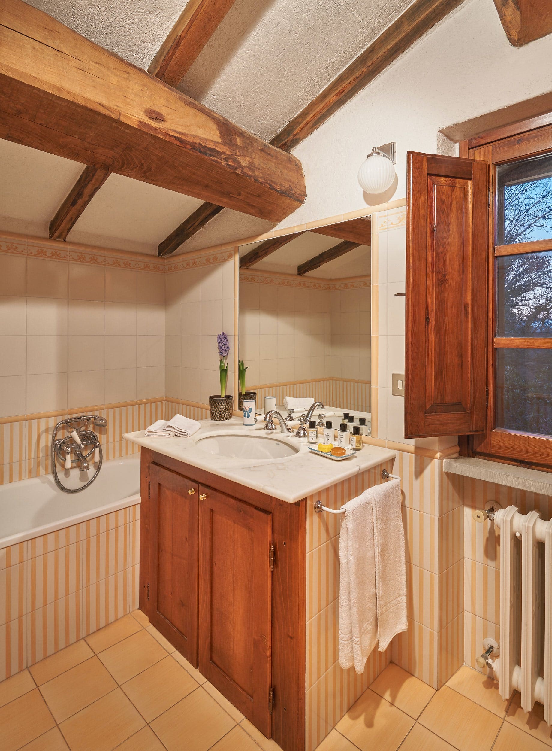 Palazzo Leccio Perugia encompasses five distinct apartments, providing a perfect blend of privacy and shared spaces for groups. The interiors feature traditional stonework and exposed wooden beams that evoke a sense of history, while air-conditioning ensures comfort. The 14 bedrooms are tastefully decorated, offering ample accommodation for up to 30 guests, with 13 bathrooms providing convenience for all. Each apartment has its own living area and kitchen, making it ideal for families and friends traveling together.