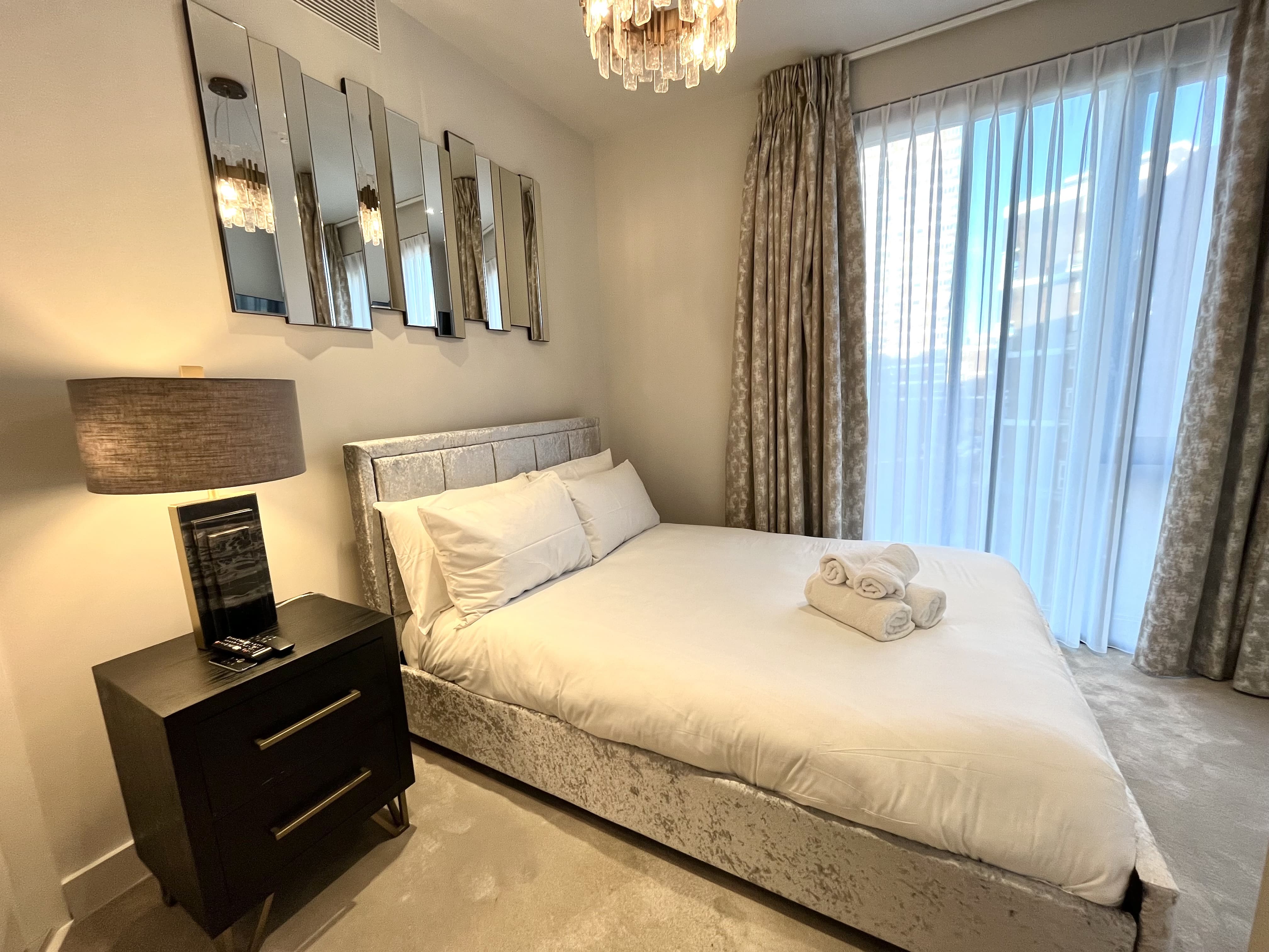 The apartment accommodates six guests across three bedrooms and two bathrooms. Guests can enjoy the convenience of an electric vehicle charging station. The property is family-friendly, and well-behaved pets are welcome. Please note the quiet hours from 11pm to 7am. Explore more options by browsing our luxury villa rentals in United Kingdom.