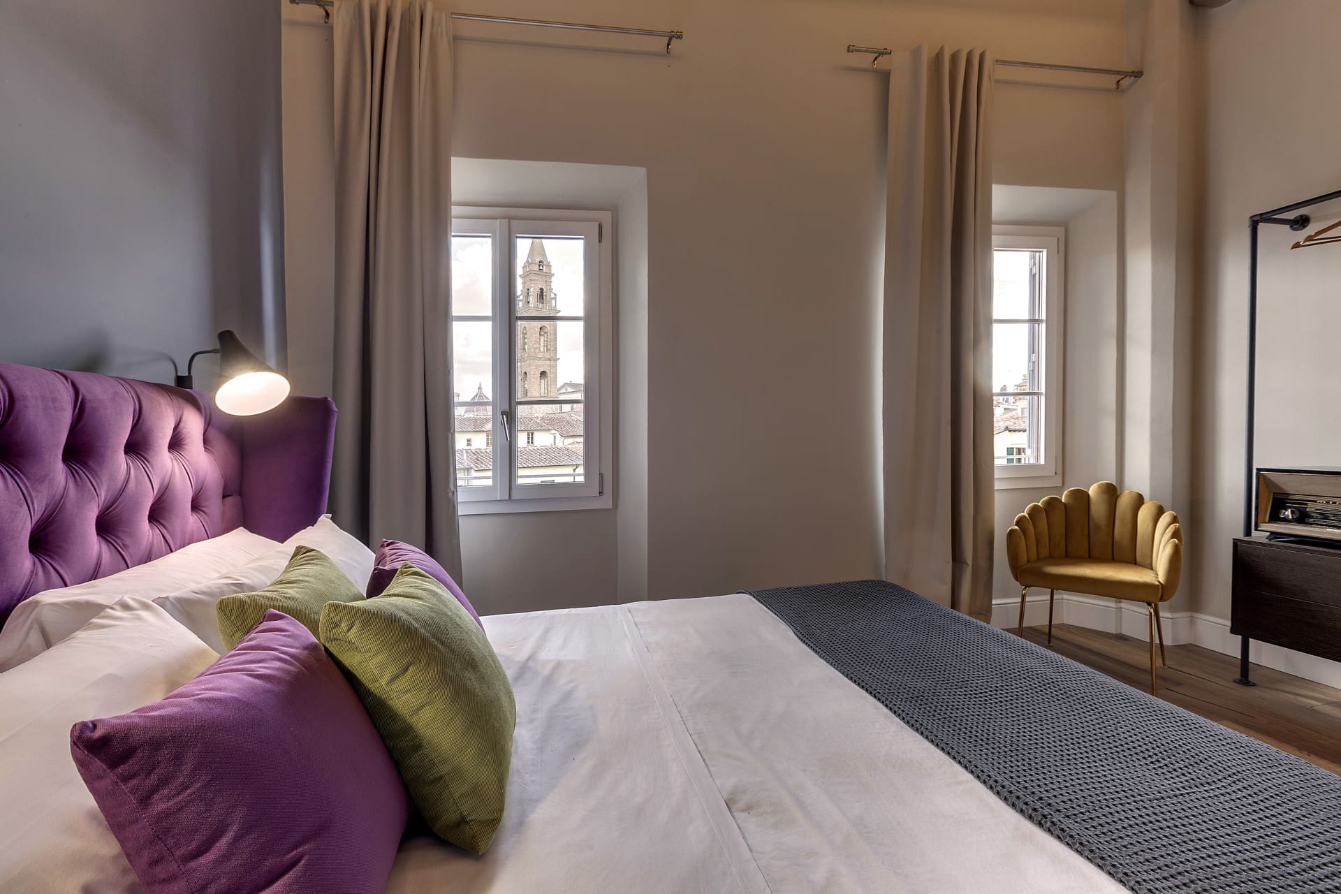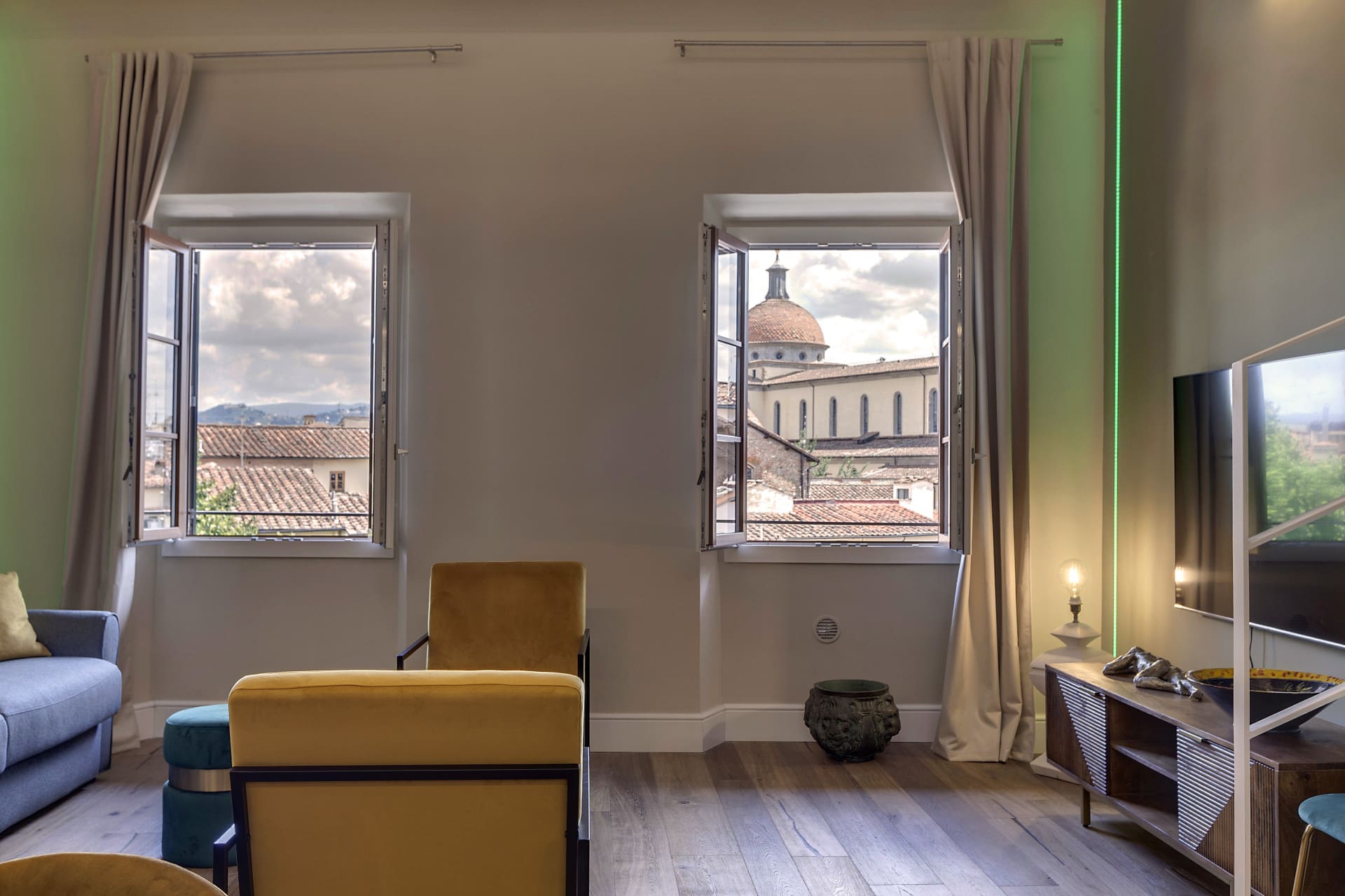 Though primarily an urban retreat, the apartment’s windows frame stunning cityscapes that bring Florence’s historic beauty into view. Enjoy a morning coffee with the backdrop of the Church of Santo Spirito or unwind with a glass of wine as the sun sets over the city.