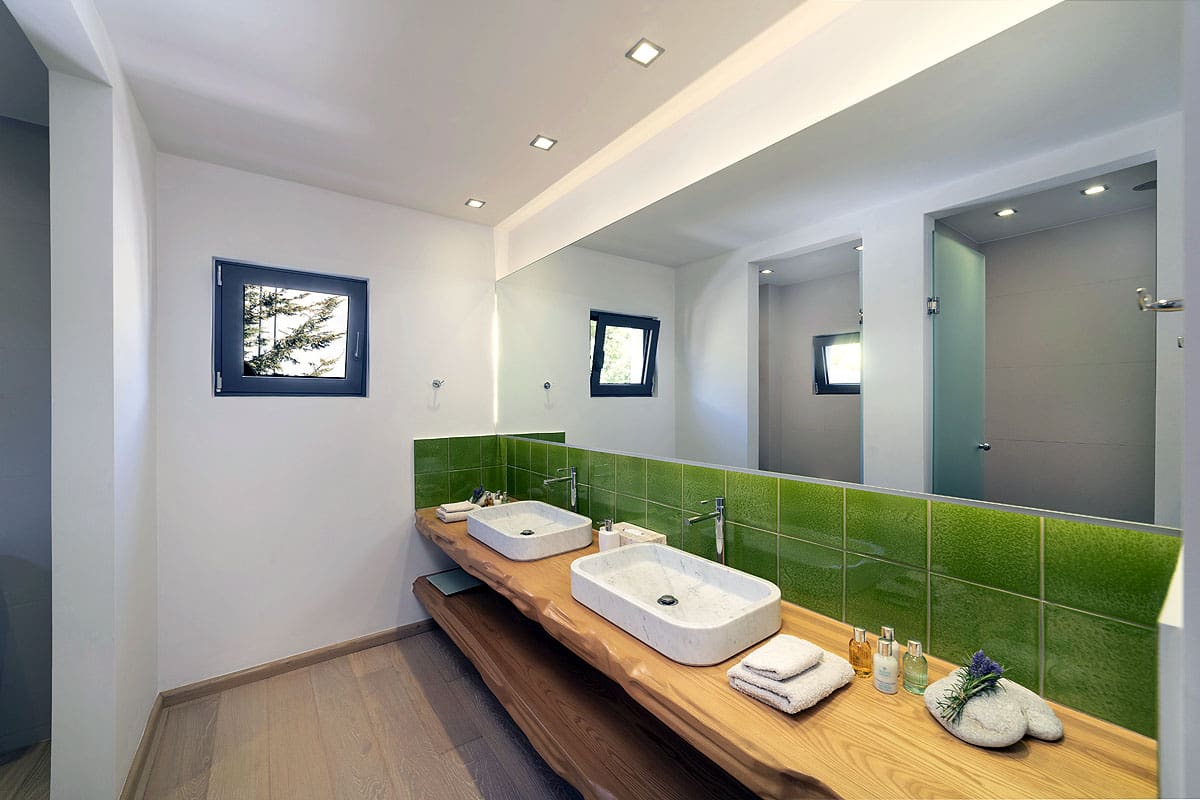 The apartment comfortably accommodates up to twelve guests across six bedrooms, each with its own en-suite bathroom. Private parking is available, and we recommend hiring a car to fully explore the area. Note that the property is spread over three floors, which may not be suitable for those with reduced mobility. One bedroom is separate from the main villa, offering additional privacy. Browse our luxury villa rentals in Greece for more properties.