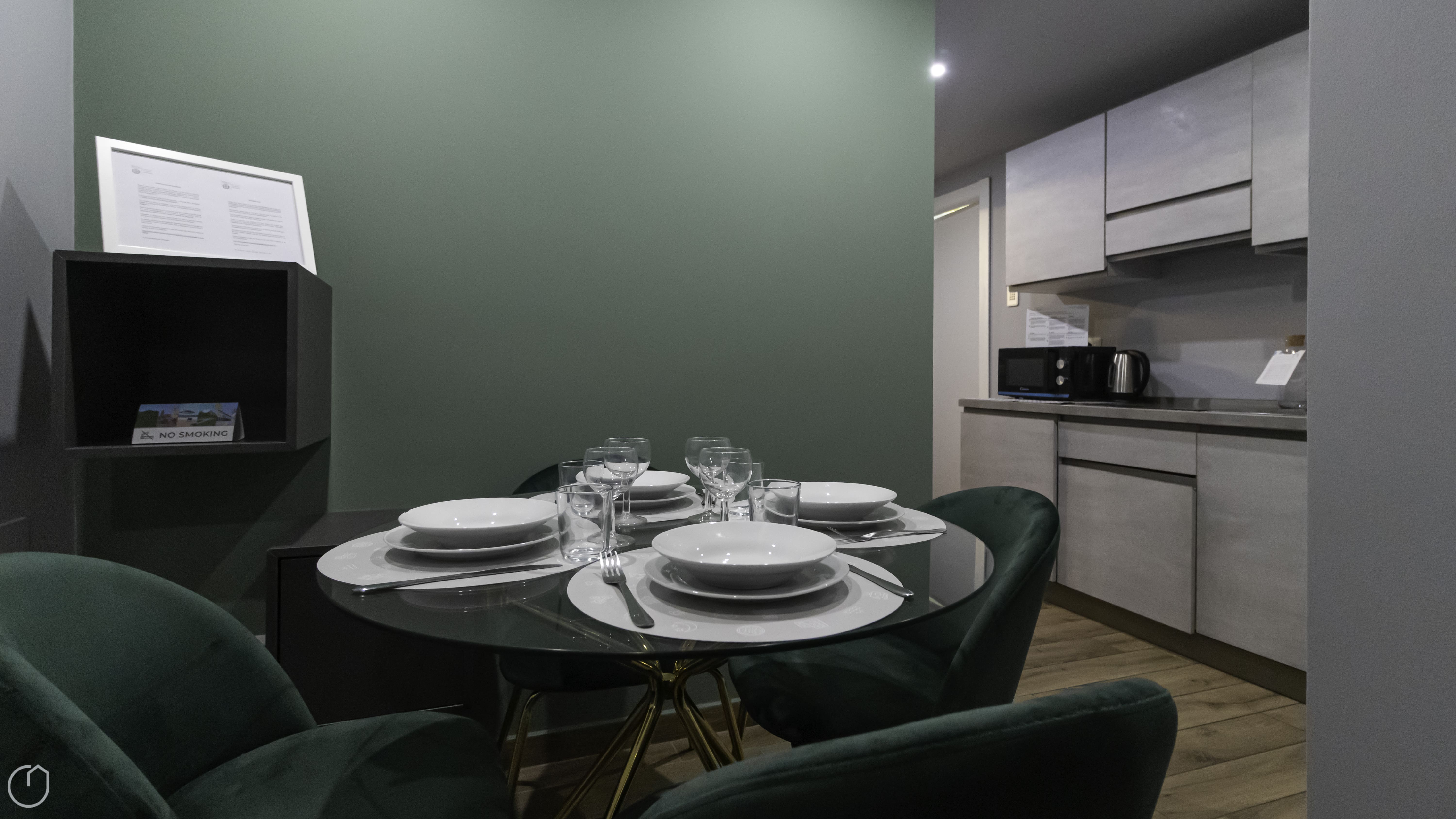 Step inside this tastefully appointed apartment and discover a harmonious blend of style and function. The two double bedrooms are not only plush and inviting but also equipped with individual workspaces, ideal for remote working. The bathrooms are modern and well-equipped, ensuring comfort and convenience. While the kitchen is compact, it offers everything needed for light meal preparations, making it perfect for quick bites or morning coffee. Although the central hallway serves as the dining area and lacks natural light, it provides a cozy spot for intimate meals.
