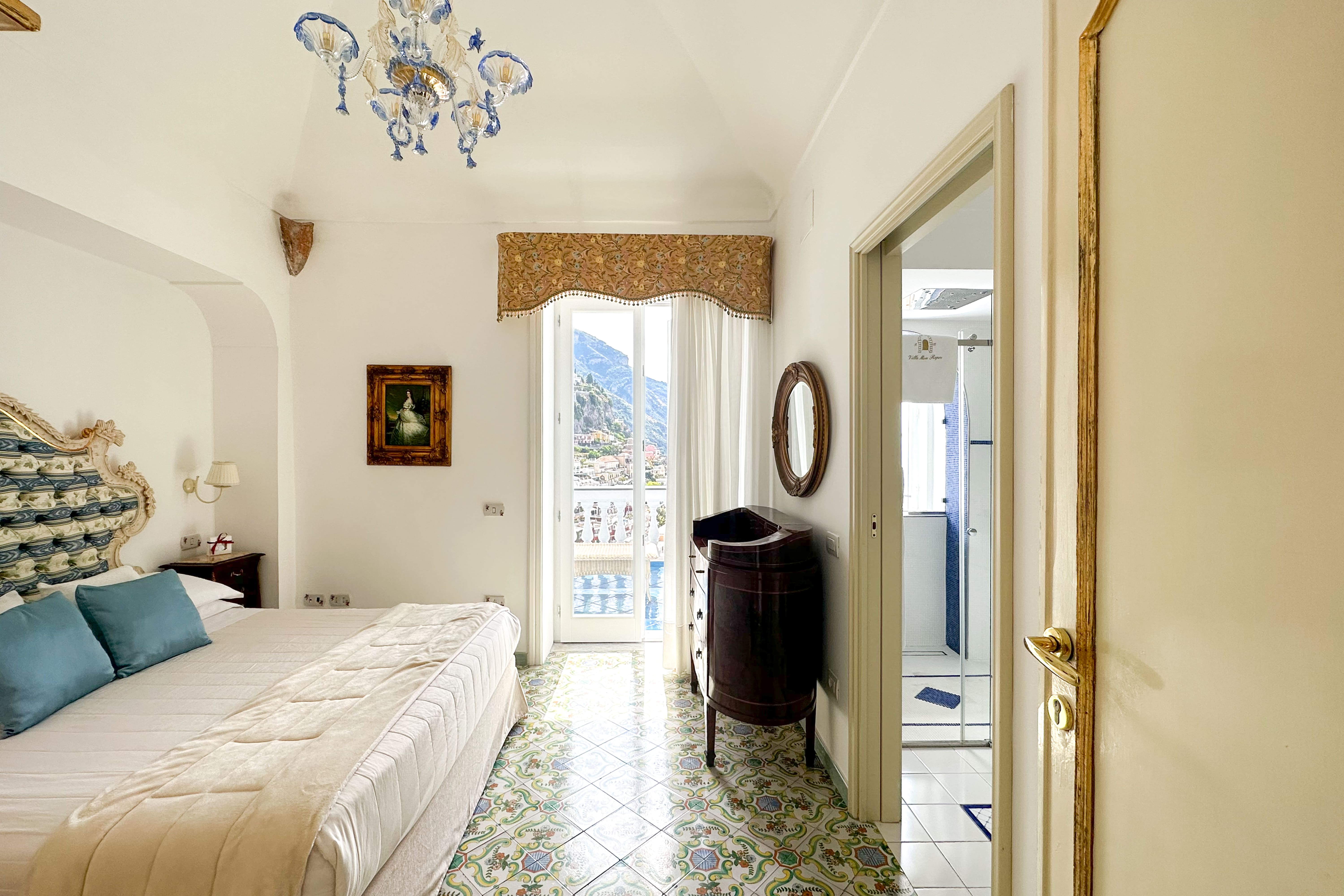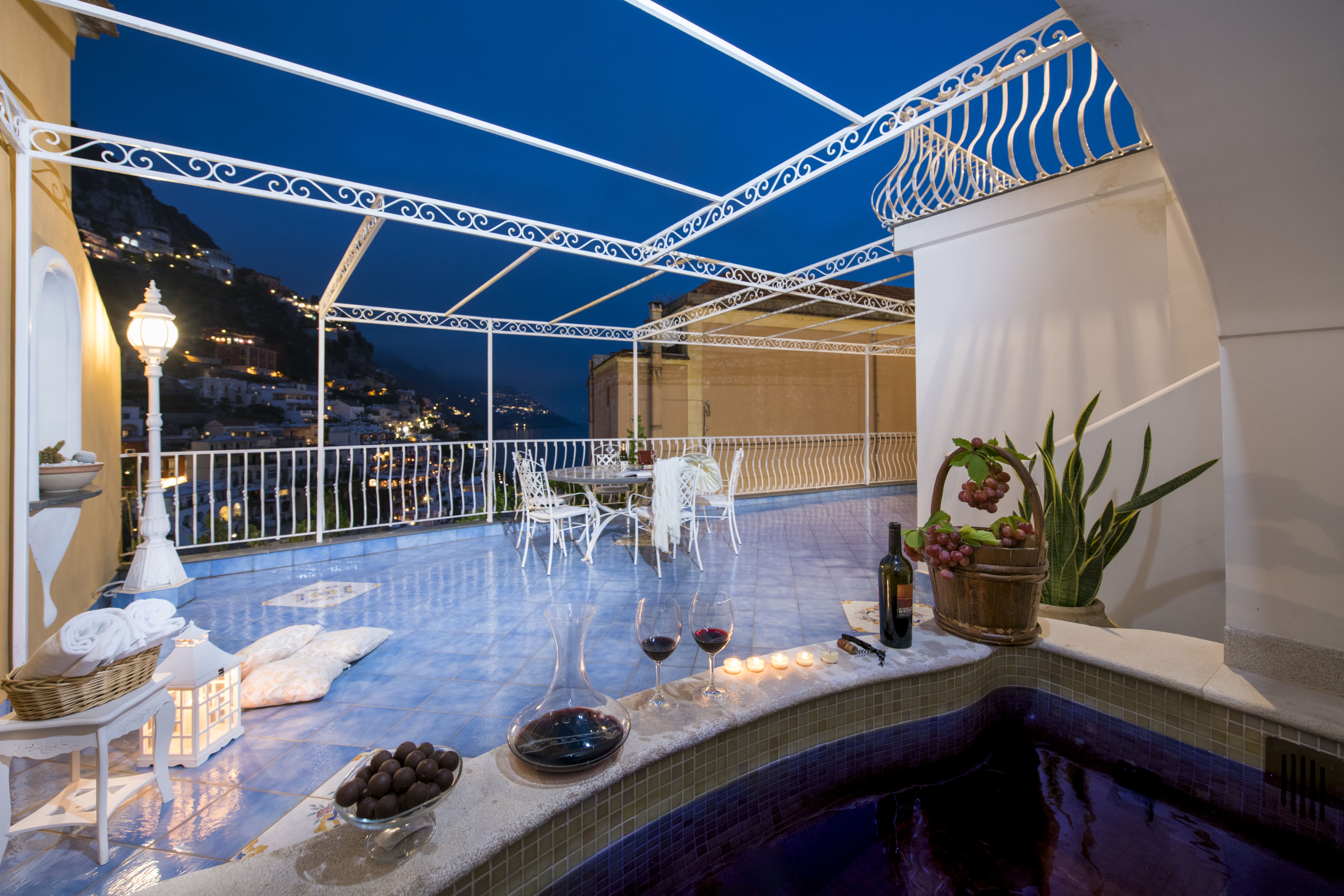 The outdoor spaces are equally captivating, with a terrace that provides panoramic views of the sparkling sea and the charming town of Positano. Relax by the swimming pool, which features hydromassage seats, or dine al fresco while enjoying the stunning coastal landscape. The proximity to the beach and the sea adds an extra layer of luxury to your stay.