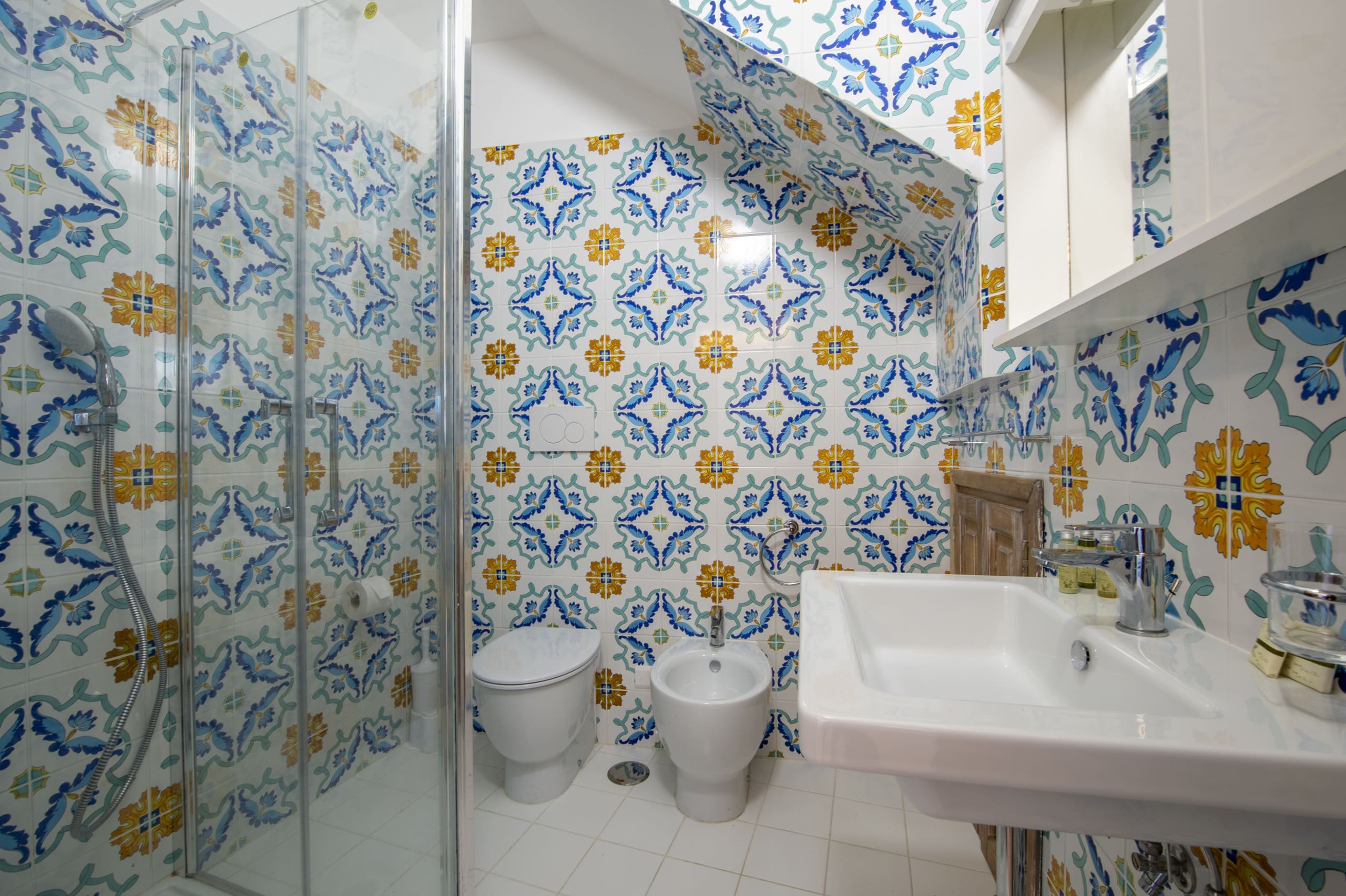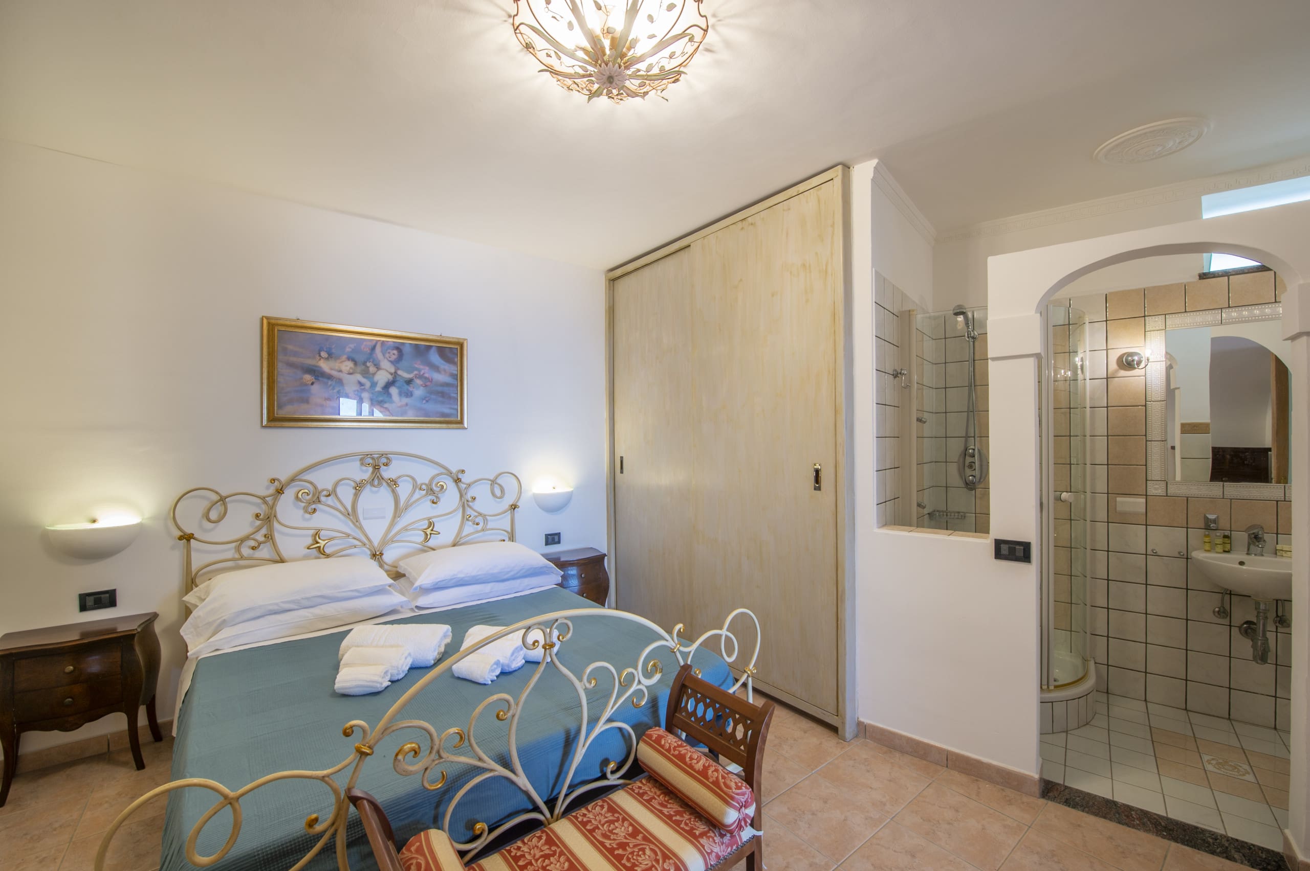 Step into a world of elegance and comfort as you enter this beautifully designed apartment. The interiors are a seamless blend of modern luxury and traditional charm, featuring antique and mid-century furniture. Appreciate the artistry of Murano glass pendants and restored Art Deco armchairs that complement the hand-painted floor tiles. The spacious living area is perfect for relaxation, while the fully equipped kitchen caters to all your culinary needs. Each of the two bedrooms offers a tranquil retreat with plush bedding and en-suite bathrooms, ensuring privacy and comfort for all guests.