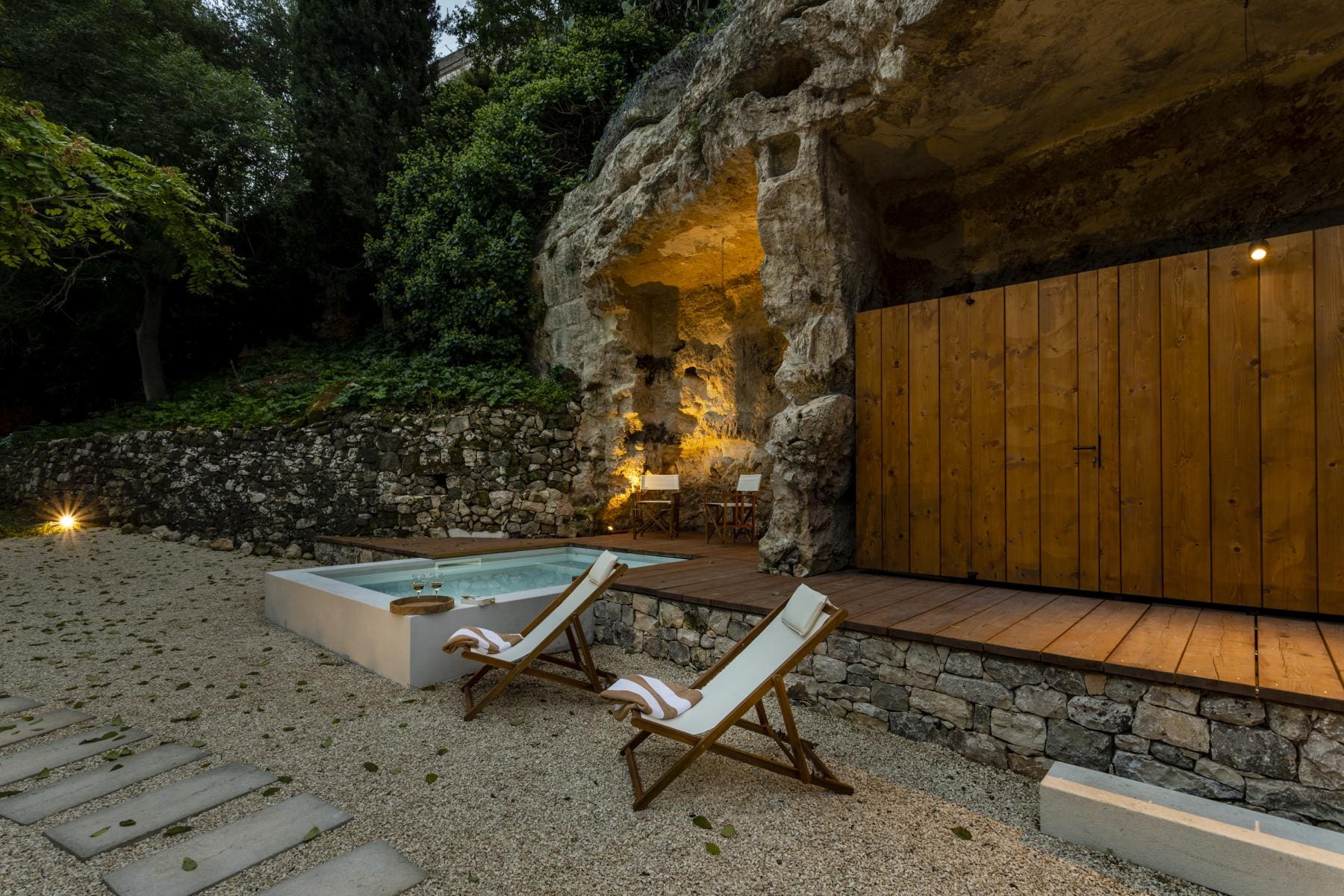 The outdoor area is a true Sicilian delight, complete with a shaded terrace and a plunge pool carved into the rock. Although the pool is more suited for a refreshing dip than a swim, it provides a delightful way to cool off under the Sicilian sun. Enjoy al fresco dining while overlooking the picturesque surroundings of Ragusa, an experience that captures the essence of Sicilian life.