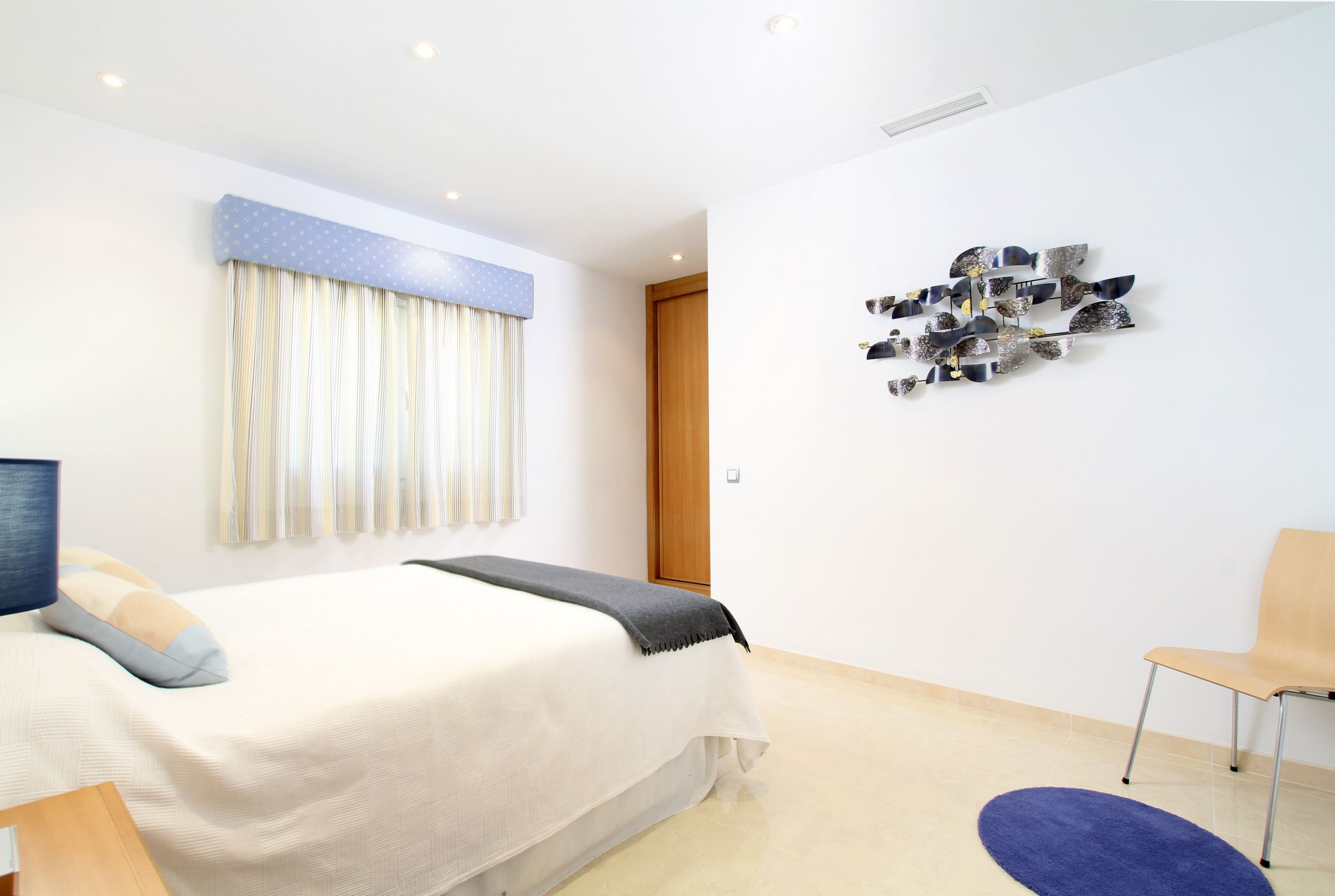 The interior of this luxury apartment rental in Mallorca is a testament to refined elegance and modern convenience. With four spacious bedrooms, each with its own bathroom, guests are ensured privacy and comfort. The open-plan living area is bathed in natural light, creating a warm and inviting atmosphere. A fully equipped kitchen stands ready for culinary adventures, while the living room provides a perfect setting for relaxation after a day of exploring.
