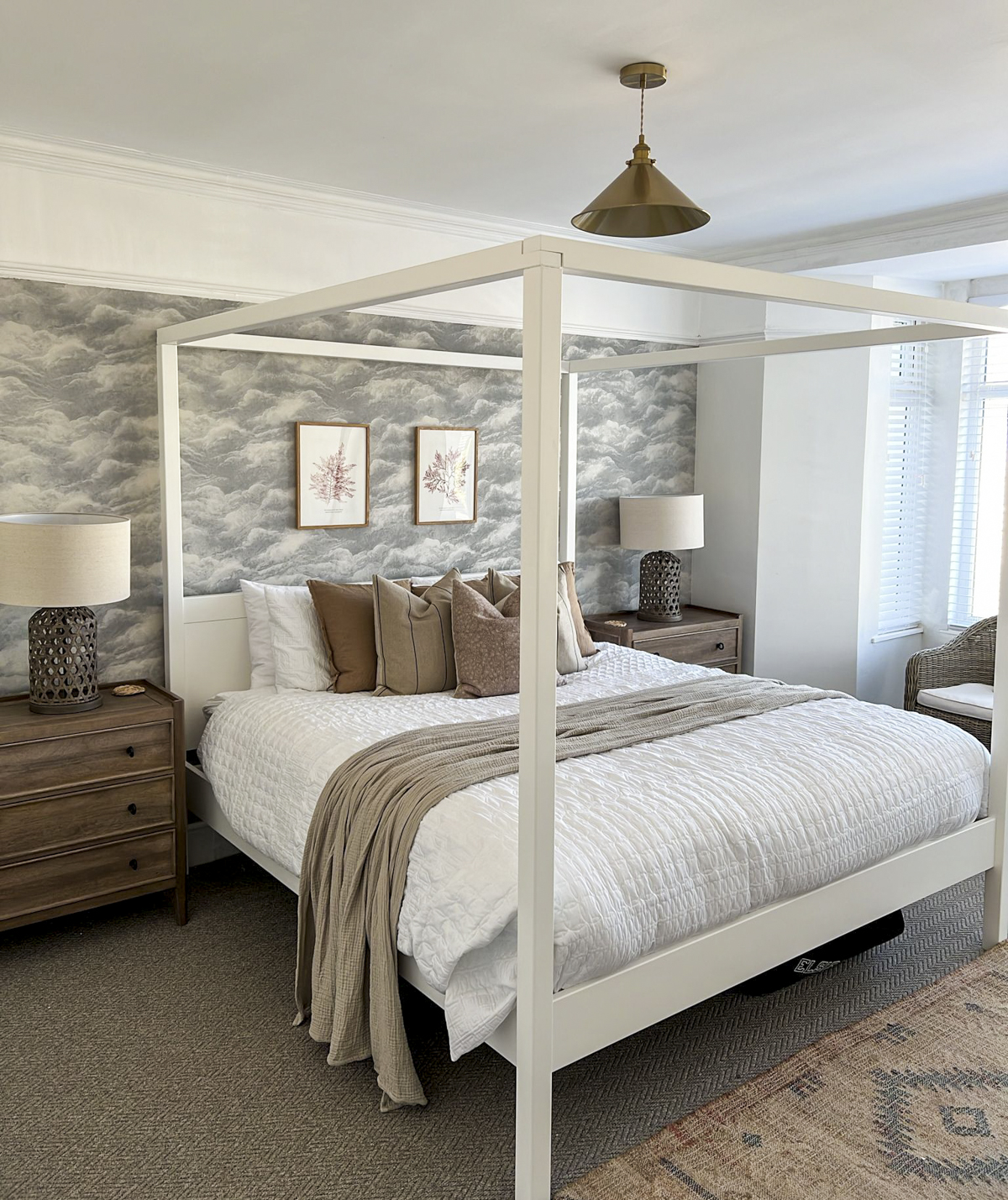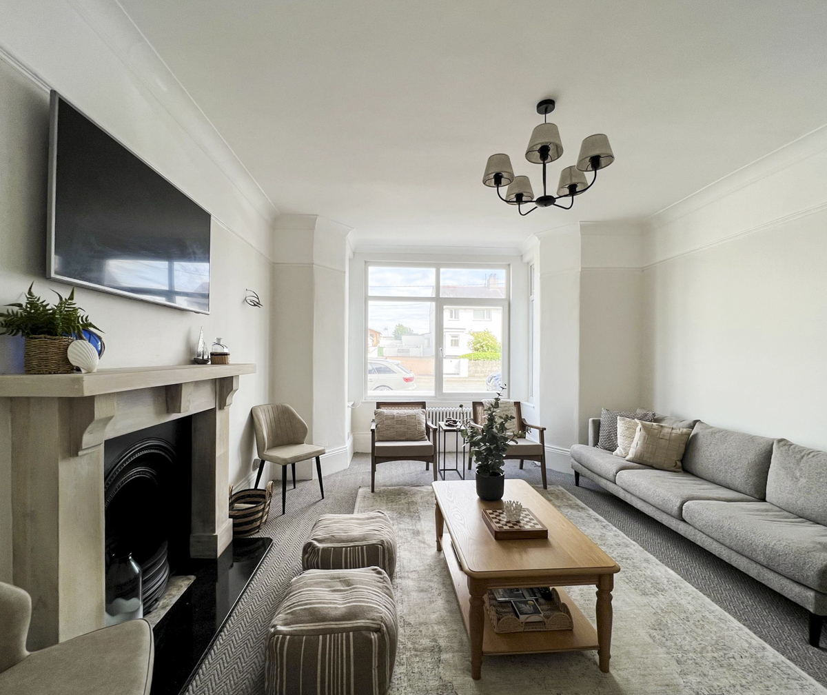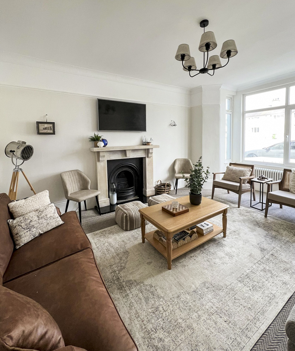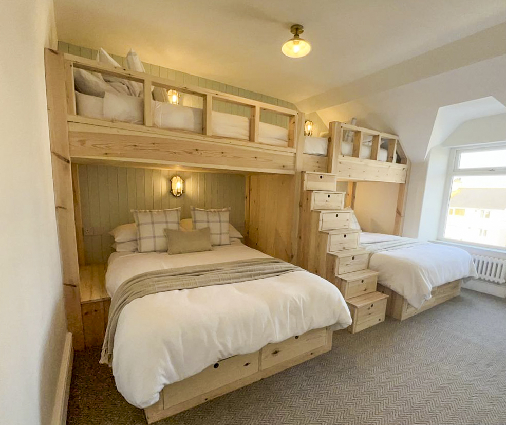 Marine Lodge unfurls further secrets as you explore its various living spaces. The tranquil front lounge, graced by the warmth of a log burner, invites you to unwind and revel in its period charm. You can ascend the stairs to discover the crown jewel, the loft lounge. Bathed in light through its French doors and adorned with vaulted ceilings, this dreamy living space offers panoramic views of the Irish Sea. An idyllic backdrop for serene reading sessions, evening drinks and chatter or a respite from the bustling little ones, the loft lounge is the epitome of sophistication.
