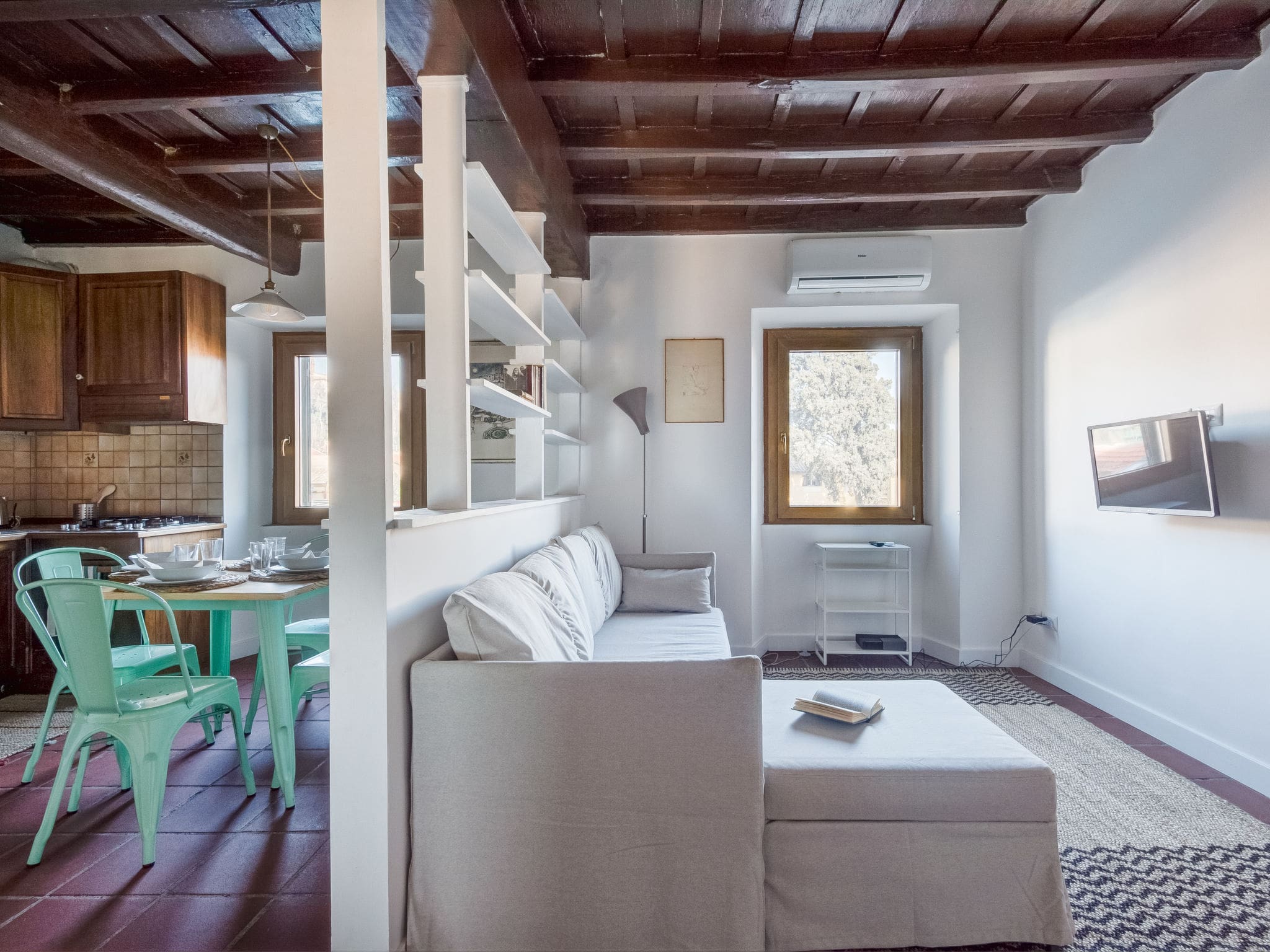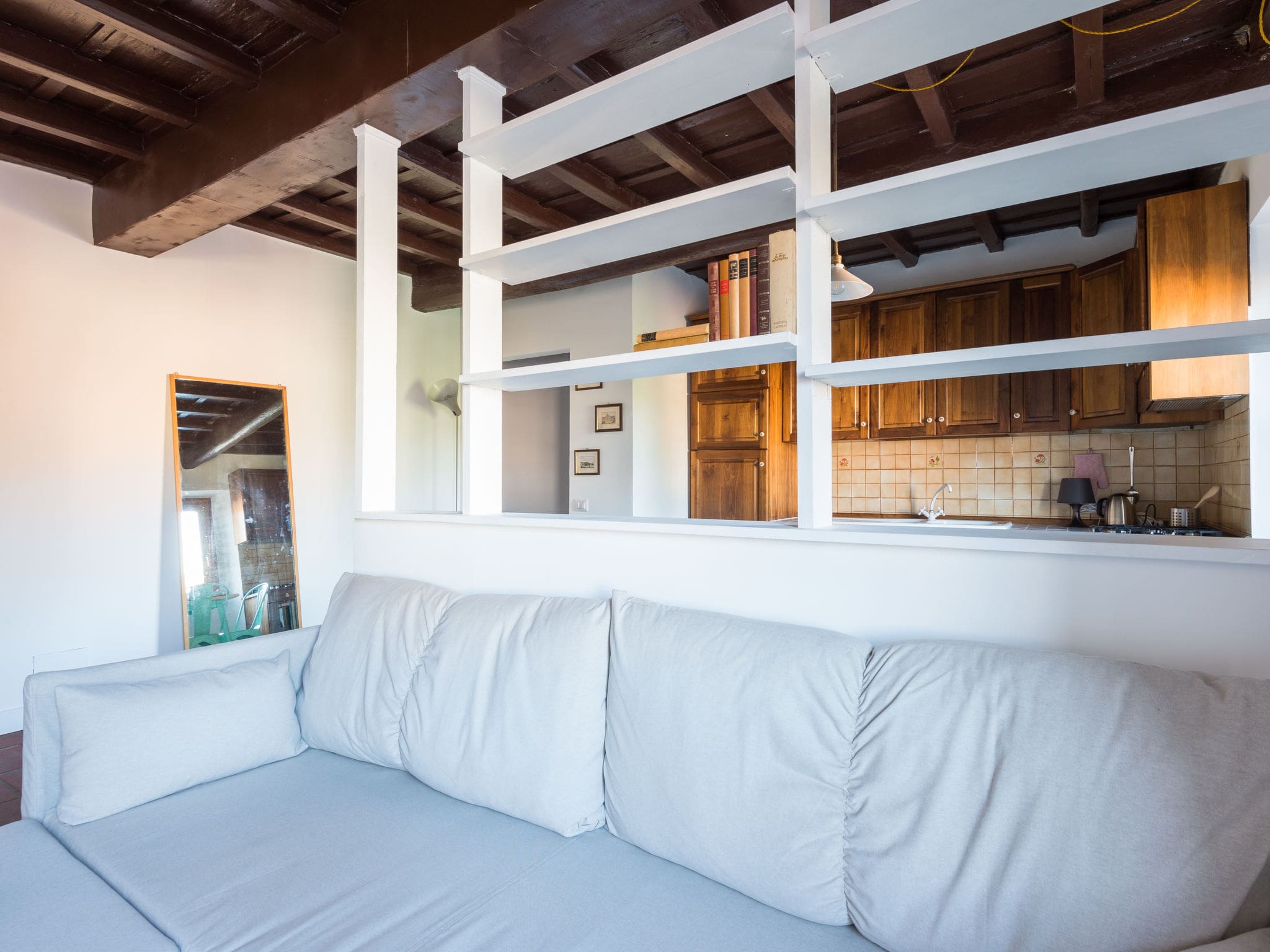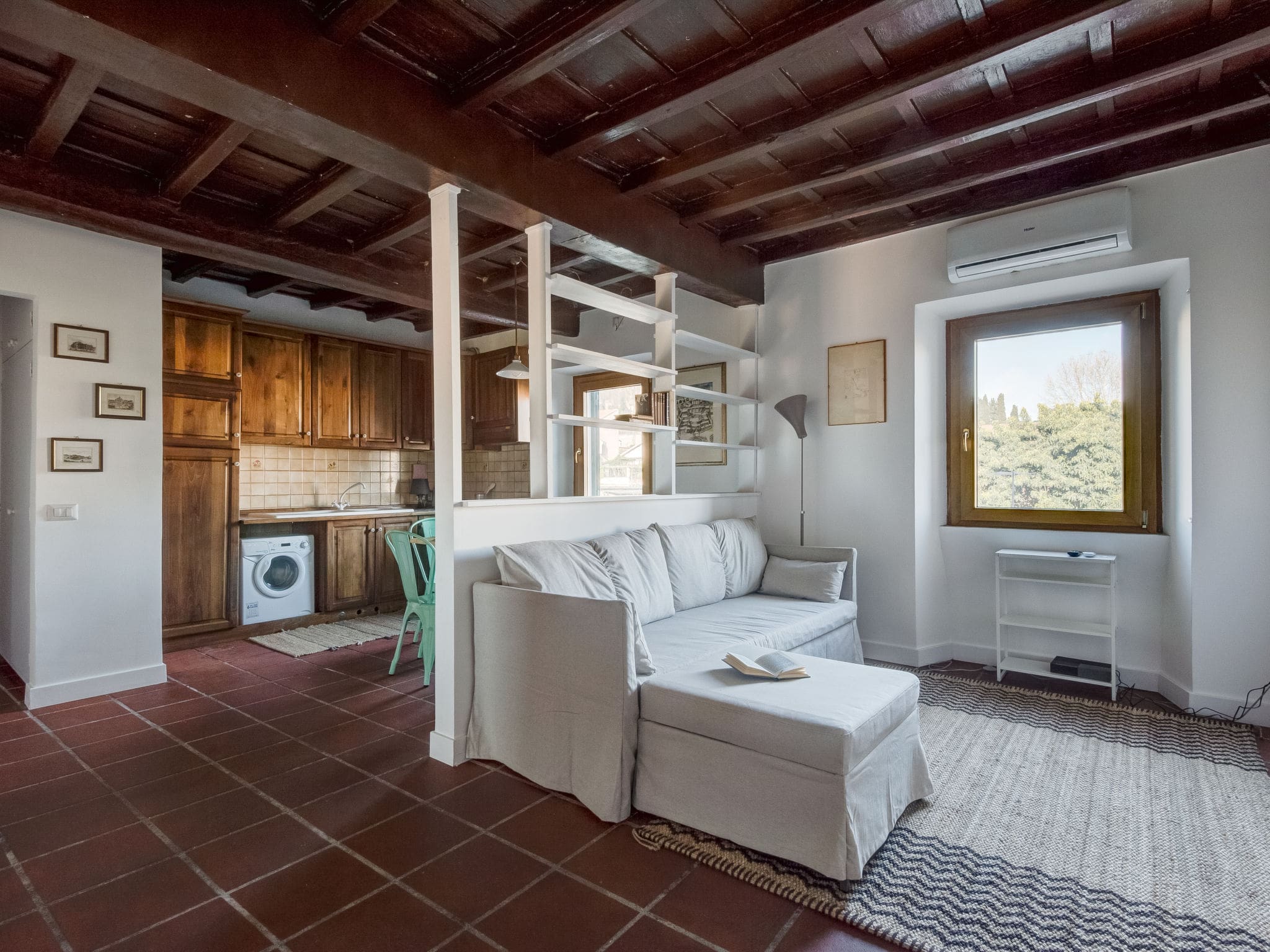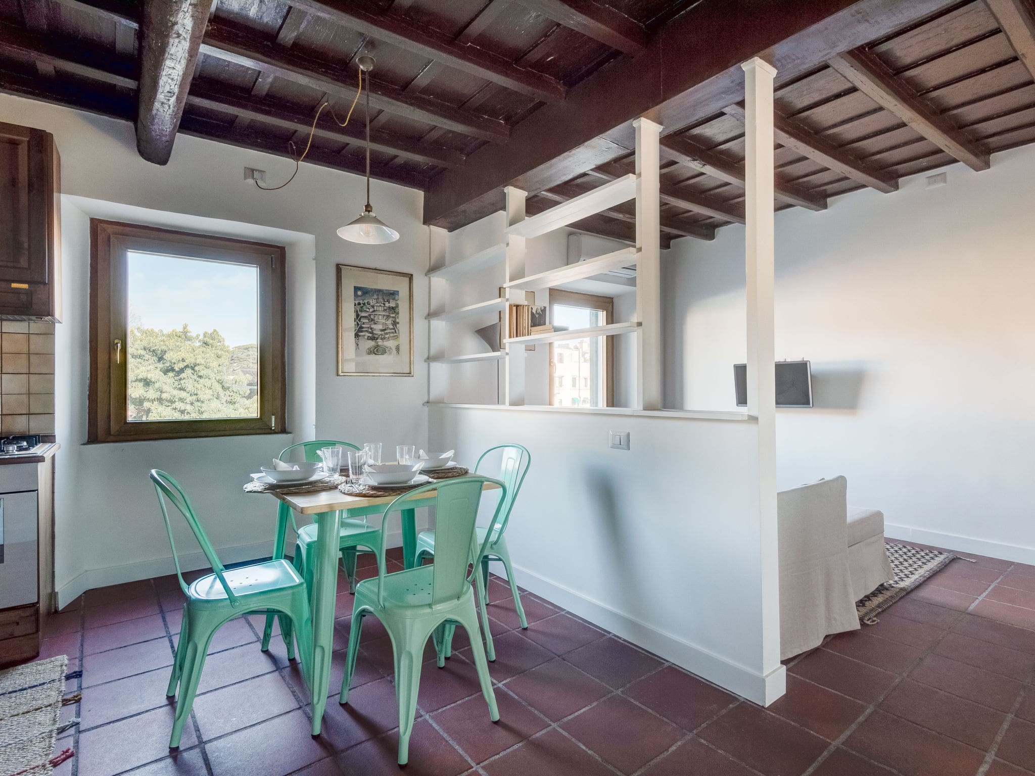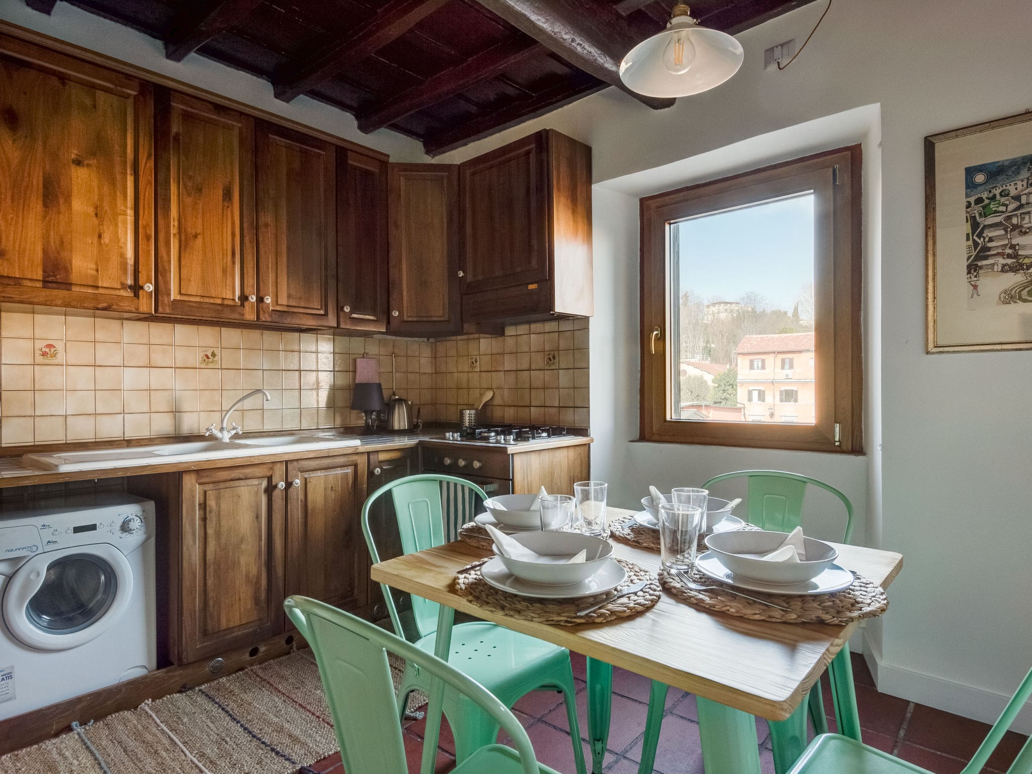 Casa Trasteverino welcomes up to three guests in comfortable accommodation ideal for couples or small families. The combination of double bedroom and sofa bed in the living area provides flexible sleeping arrangements, while the apartment’s central location keeps major attractions and family-friendly restaurants within easy reach. The kitchenette allows for simple meal preparation, particularly helpful for families with young children, while the washing machine ensures longer stays remain practical. However, families should note there is no elevator access to the third-floor apartment.