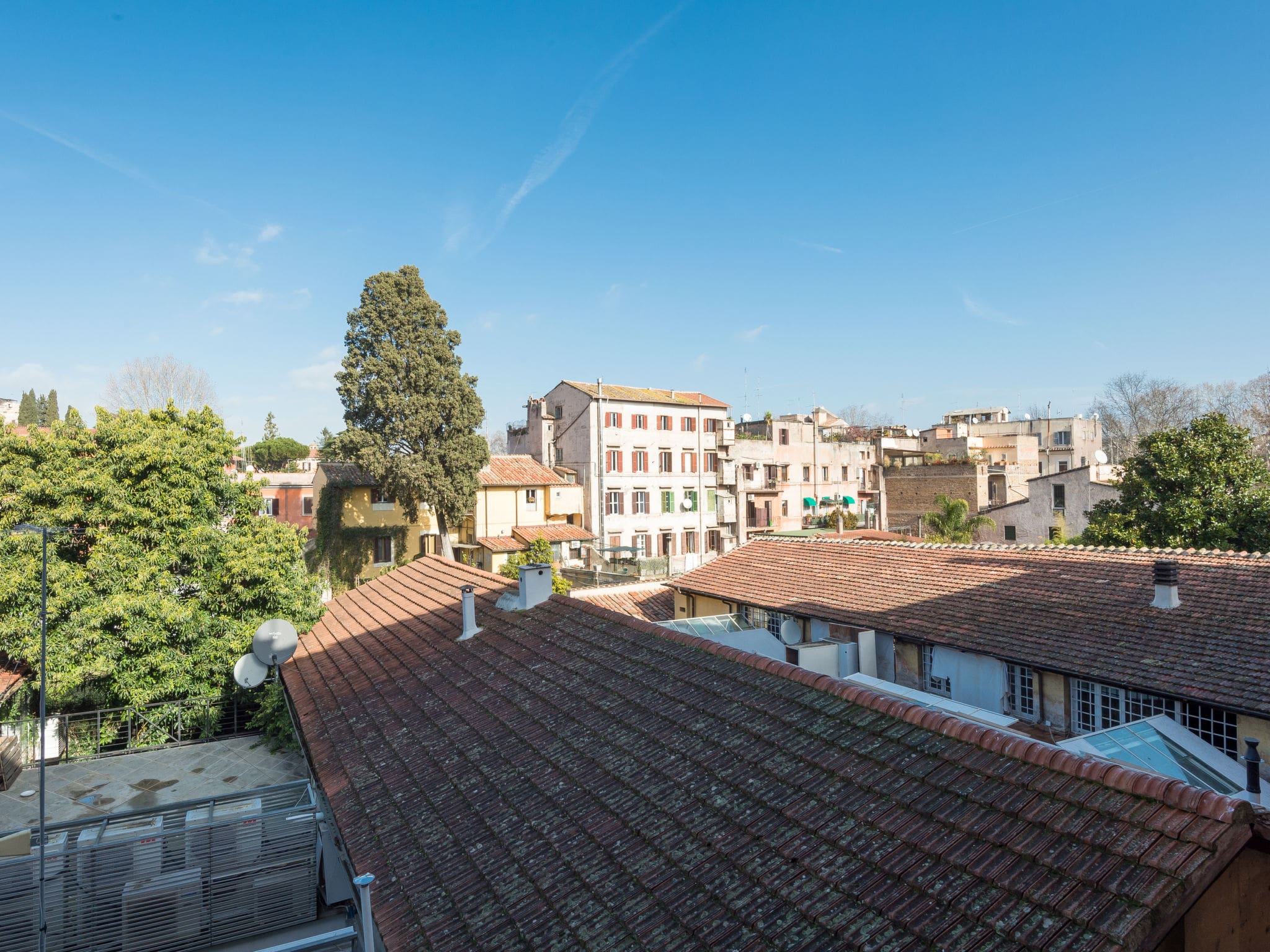 While Casa Trasteverino doesn’t feature private outdoor space, its prime location places you steps away from some of Rome’s most enchanting piazzas and outdoor dining areas. The famous Piazza di Santa Maria in Trastevere, with its stunning medieval basilica and lively café culture, lies within easy walking distance. The nearby Gianicolo Hill offers panoramic views over the city and peaceful gardens perfect for morning strolls or sunset contemplation. The neighborhood’s cobblestone streets are lined with outdoor terraces where you can savor authentic Roman cuisine while watching daily life unfold in this historic quarter.