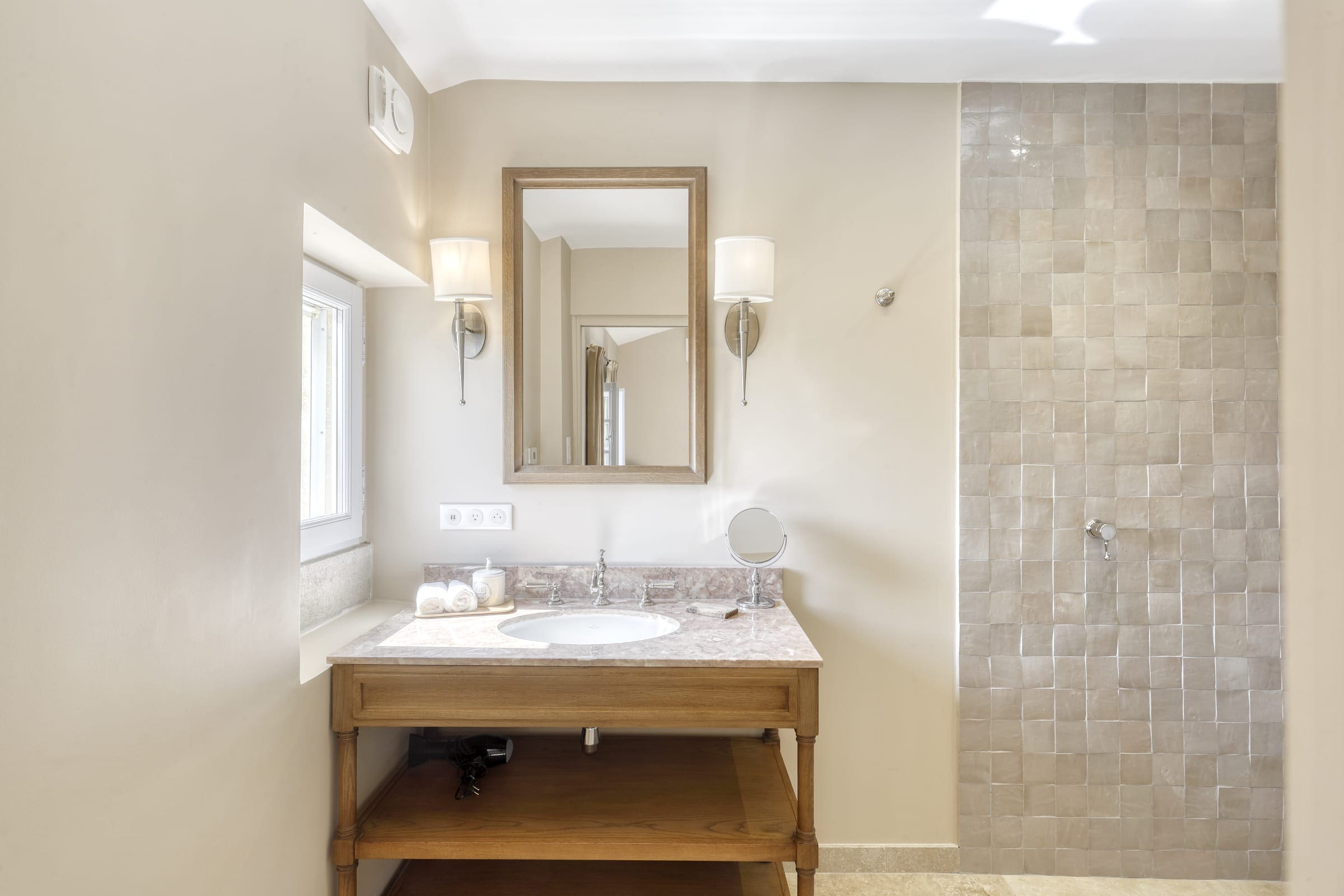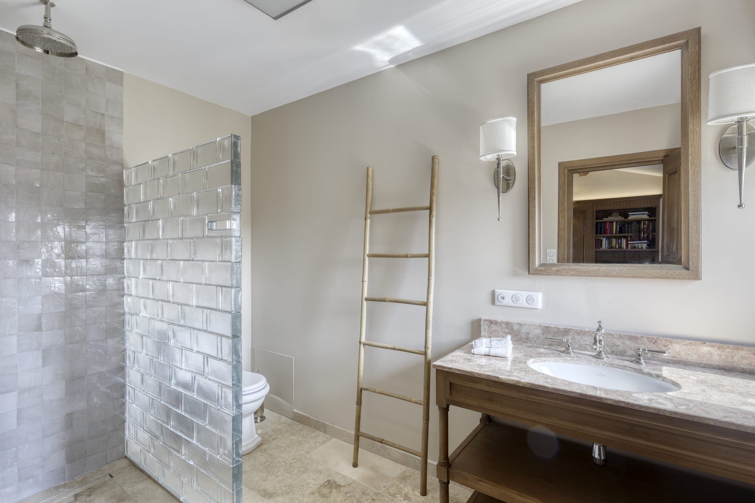 Surrounded by lush greenery, the outdoor spaces are truly enchanting. The infinity pool offers a stunning vantage point to admire the rolling hills of the Alpilles. Relax on the sun-drenched terrace or enjoy al fresco dining with a panoramic backdrop. The garden’s fragrant lavender and olive trees enhance the idyllic Provençal ambiance.