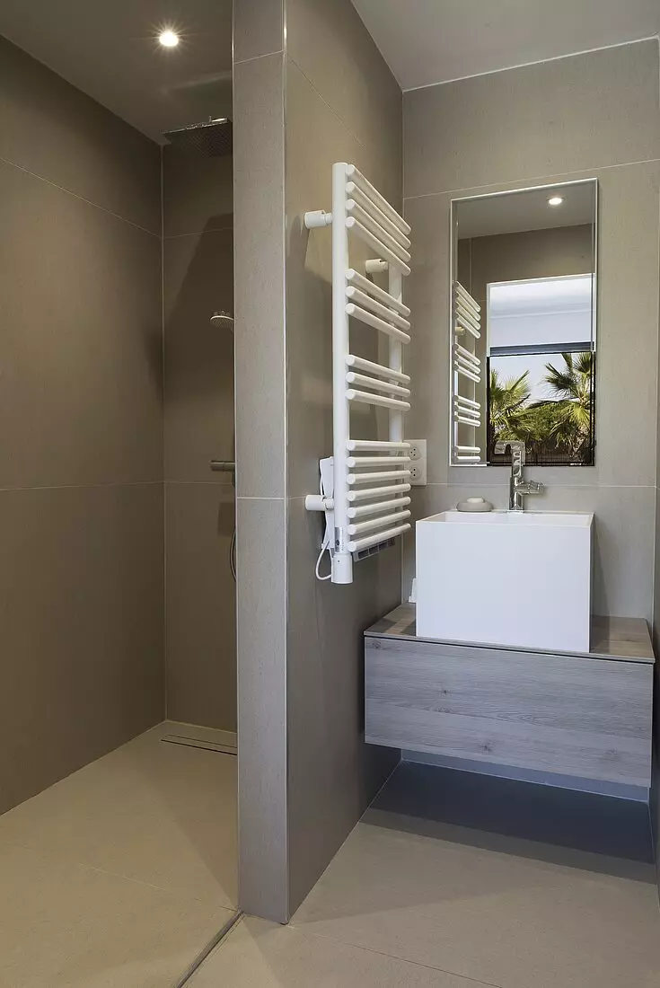 This refined apartment is a masterpiece of modern design, spread across three spacious levels. The interior boasts clean lines, with abundant natural light flooding through expansive windows, creating a warm and inviting atmosphere. The sleek kitchen is equipped with state-of-the-art appliances, perfect for culinary enthusiasts. Five sumptuous bedrooms, each with its own en-suite bathroom, offer privacy and comfort. The primary suite is a highlight, featuring a private terrace with breathtaking sea views, ideal for unwinding in tranquility.