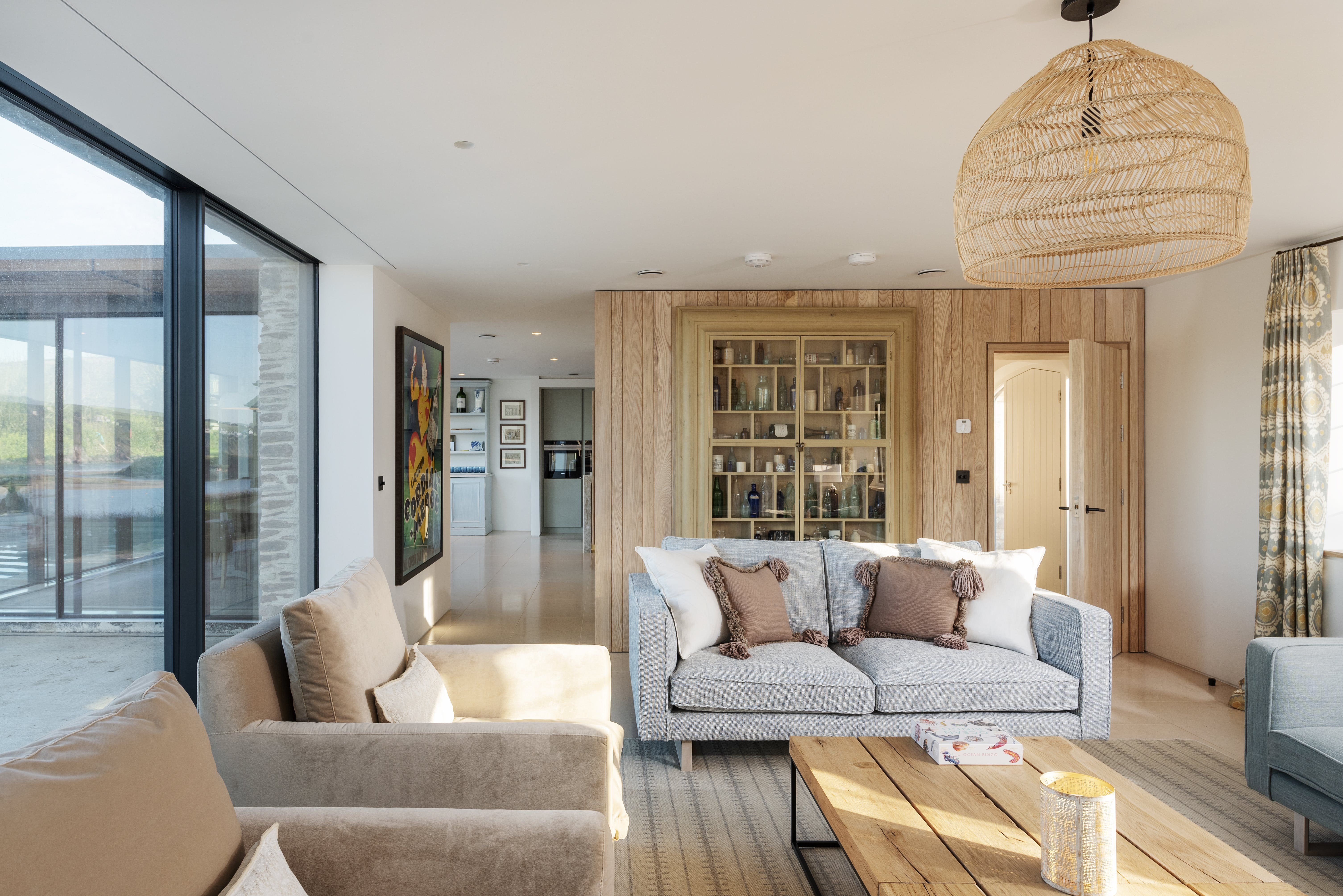 Step into a world of sophistication with bright, spacious interiors that exude modern charm. The open-plan living area, adorned with floor-to-ceiling windows, allows natural light to flood the space, highlighting the elegant ash floors. The fully equipped kitchen is a culinary delight, perfect for creating family feasts. With four beautifully appointed bedrooms, including a master suite with direct outdoor access, and a snug featuring a sofa bed for additional guests, this home accommodates up to ten guests in comfort and style.