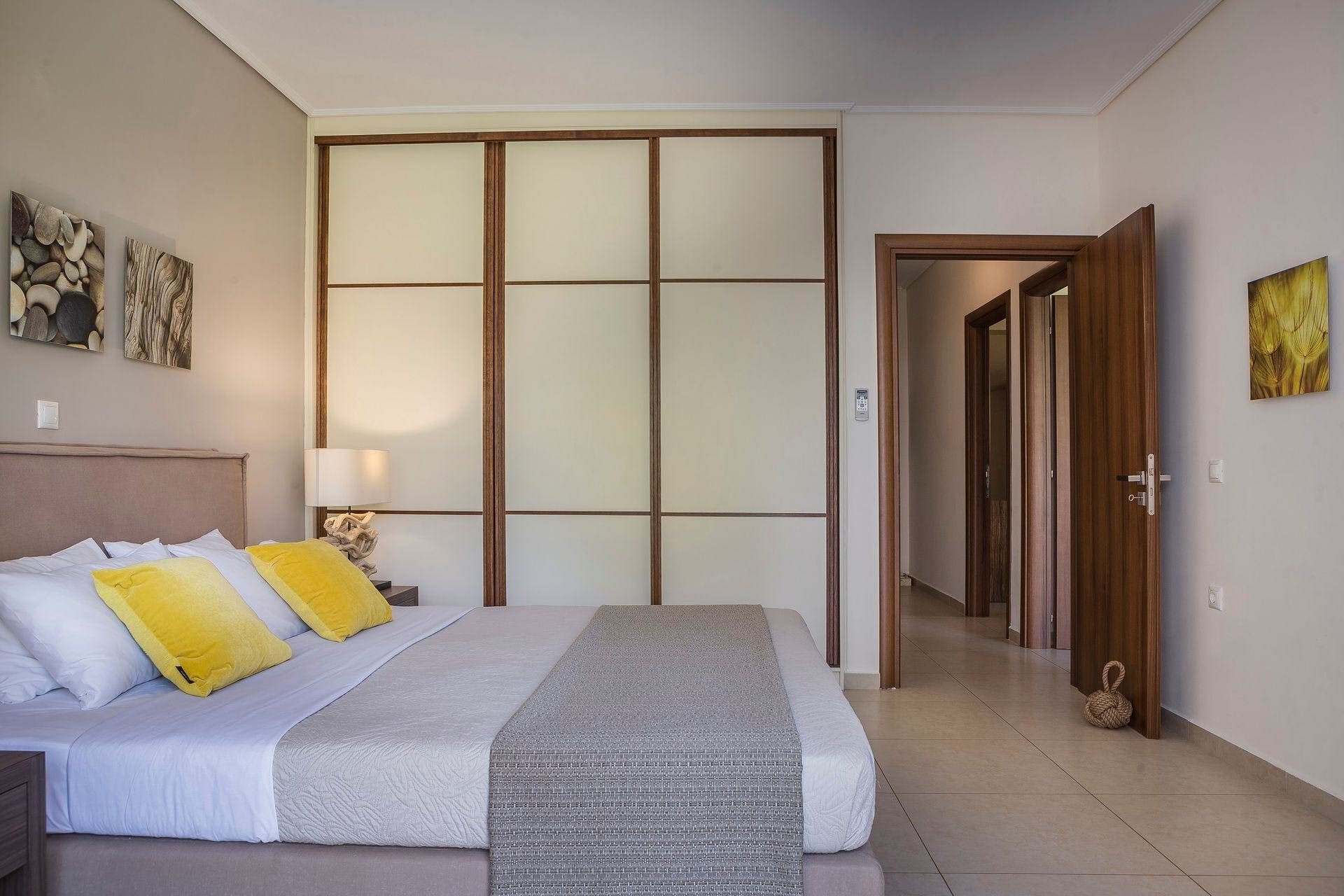 Accommodating up to six guests, the apartment features three bedrooms and two bathrooms. While parking is unavailable, a convenient bus stop is just a minute’s walk away. The private entrance ensures exclusive access to your home within this coastal apartment block. Regular housekeeping is included, ensuring a clean and comfortable stay. Browse our luxury villa rentals in Greece for more properties.