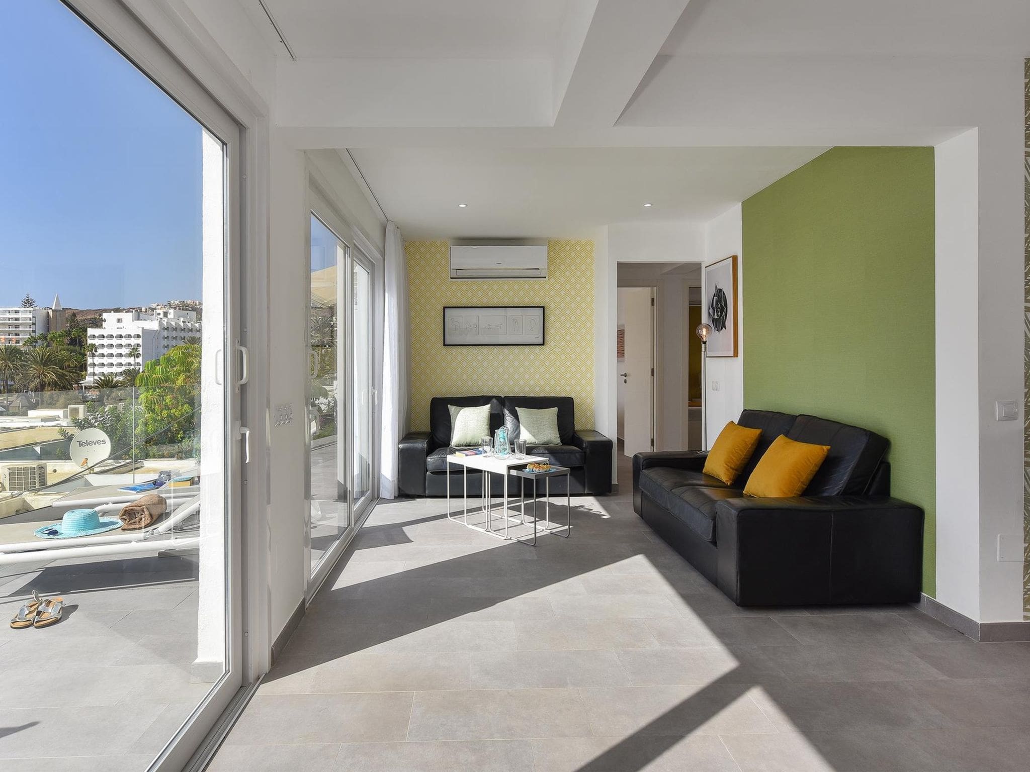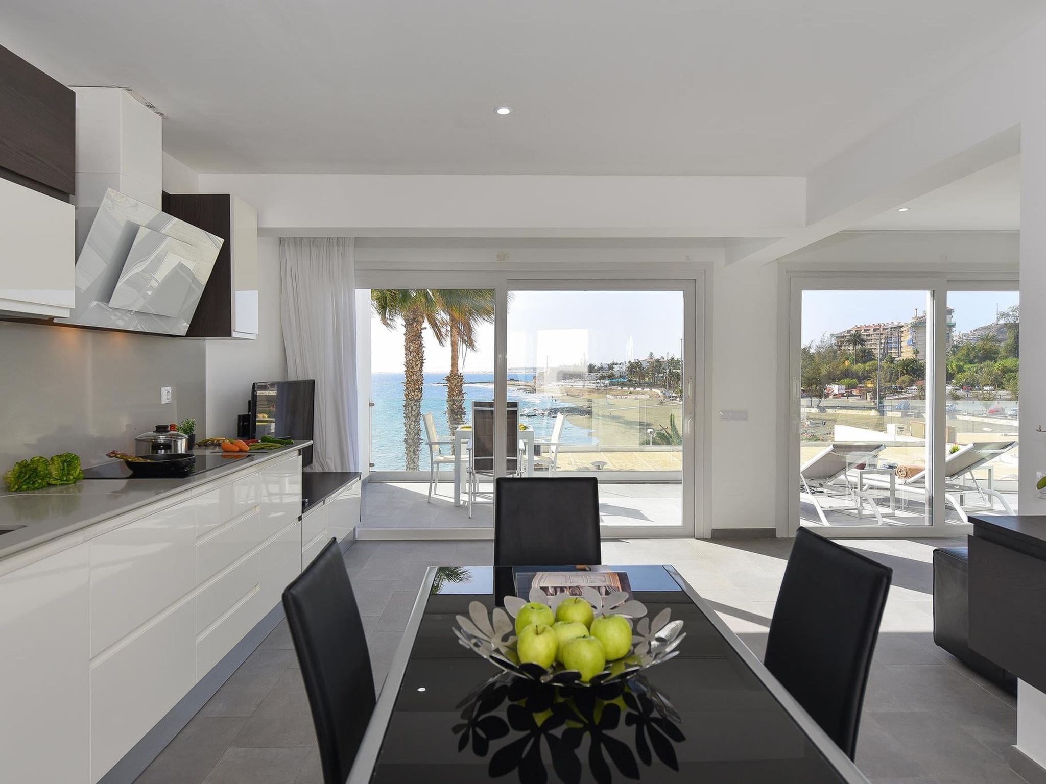 With the beach literally on the doorstep, guests can step directly from their terrace onto the sandy shores of San Agustín beach. This proximity to the water makes it effortless to enjoy early morning swims, spontaneous beach walks, or simply the convenience of returning to the apartment for lunch between beach sessions.