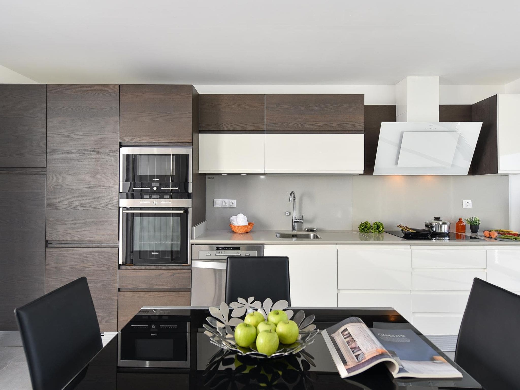 The 90-square-metre apartment features three thoughtfully appointed bedrooms, each equipped with air conditioning for year-round comfort. The master bedroom and second bedroom each contain a comfortable French bed, while the third room is fitted with twin beds, making this property ideal for families or groups of friends. The modern interior design creates a sophisticated yet welcoming atmosphere, with digital television and contemporary furnishings throughout the open-plan living areas.