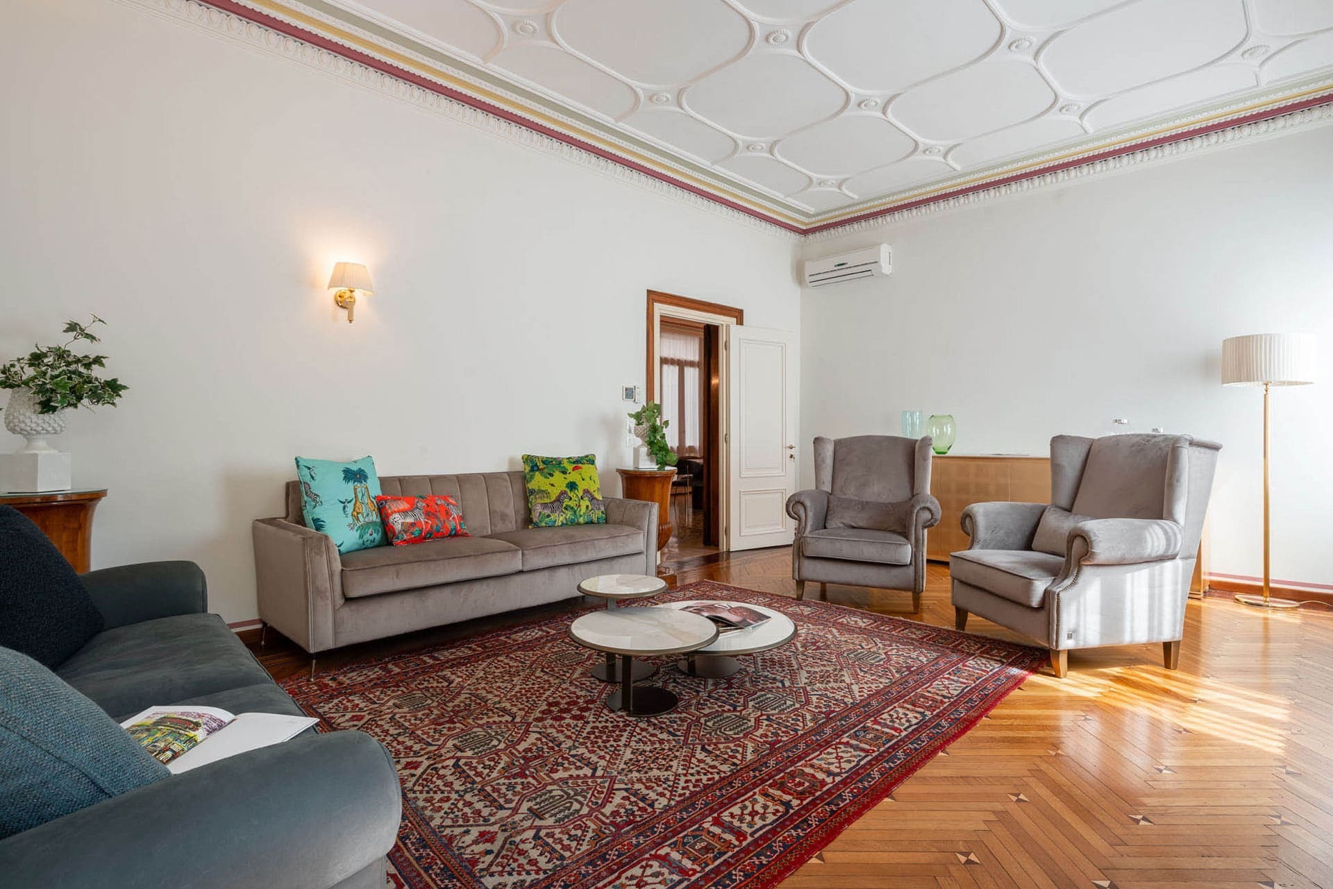 Step inside the palatial interiors of this six-bedroom, eight-bathroom apartment, where opulence and comfort are paramount. The spacious living areas are adorned with exquisite furnishings and art, reflecting the rich cultural heritage of Venice. The central dining room, a masterpiece in itself, promises memorable gatherings, while the meticulously designed bedrooms ensure a restful night’s sleep despite the vibrant city life outside. The well-equipped kitchen provides everything needed for gourmet cooking, ideal for evenings spent dining in.