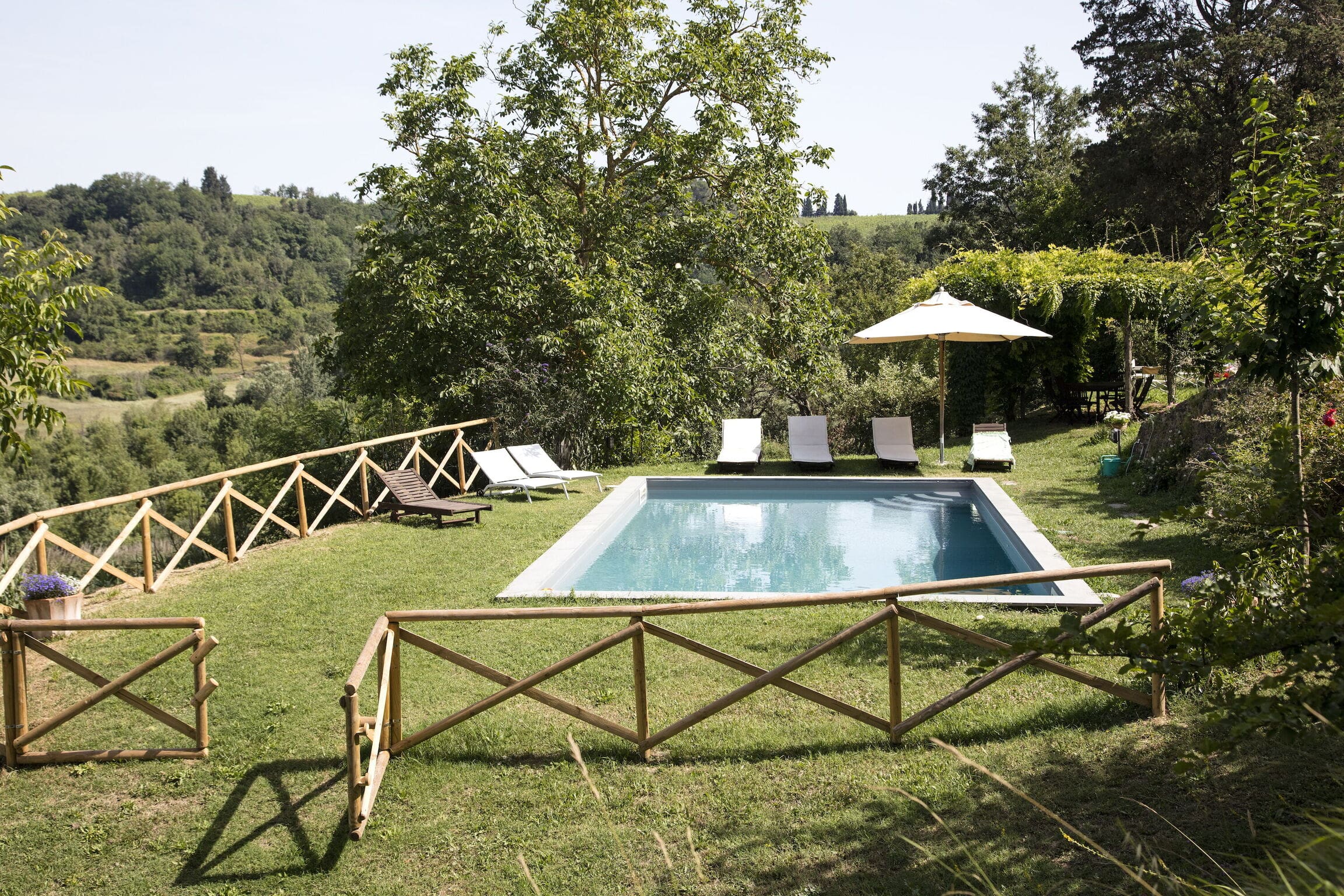 Step outside to enjoy the expansive terraces and gardens that offer panoramic views of the Tuscan hills. The outdoor dining area is perfect for al fresco meals, and the unheated pool, available from May to September, provides a refreshing escape. The lush gardens are a serene setting for relaxation, with plenty of space for children to play under supervision.