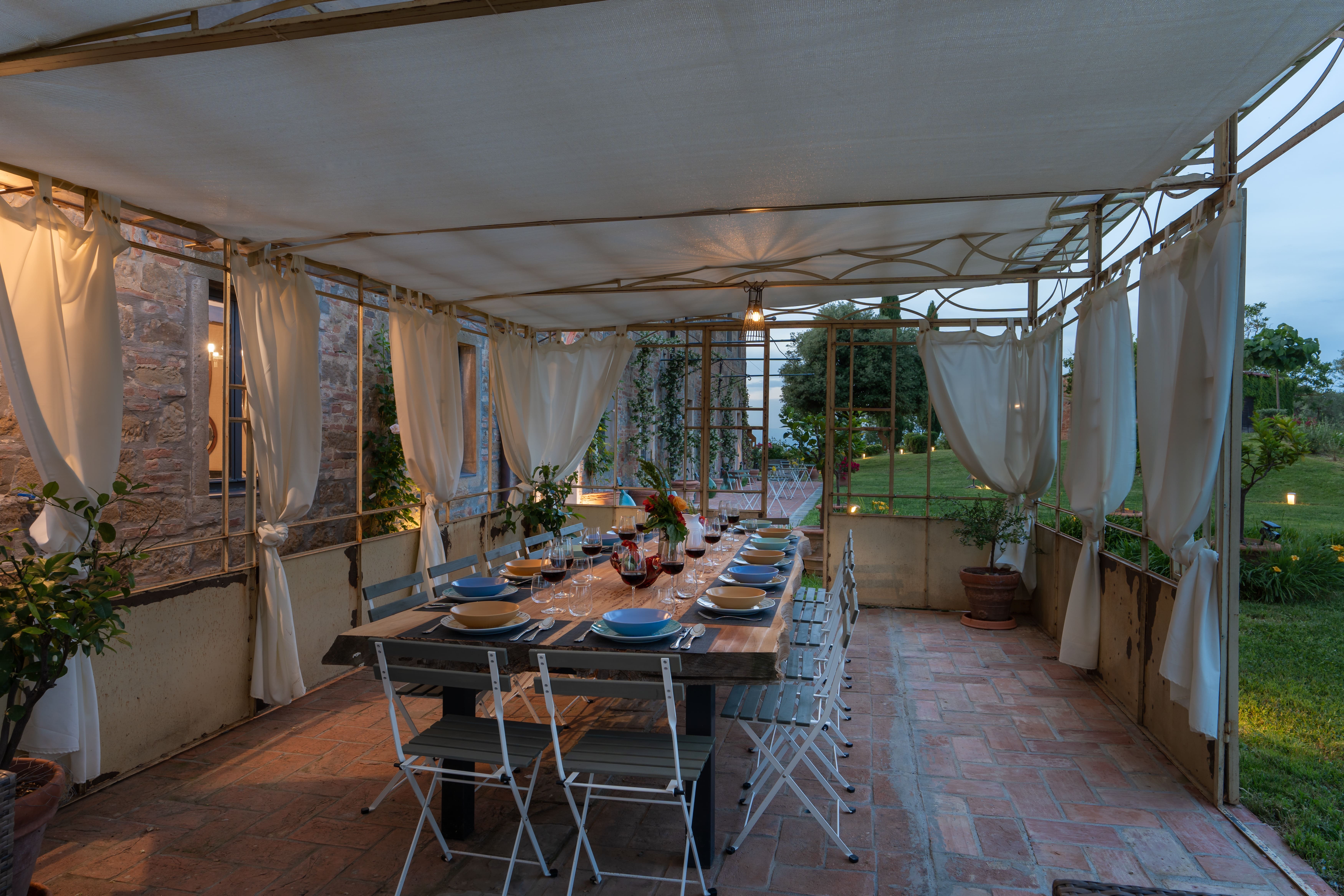 Outside, guests can enjoy the stunning Tuscan setting, complete with a private swimming pool open from late April to early October. Lush gardens and terraces offer serene spots for relaxation, with breathtaking views of the rolling hills. The outdoor dining area is perfect for al fresco meals under the Tuscan sun.