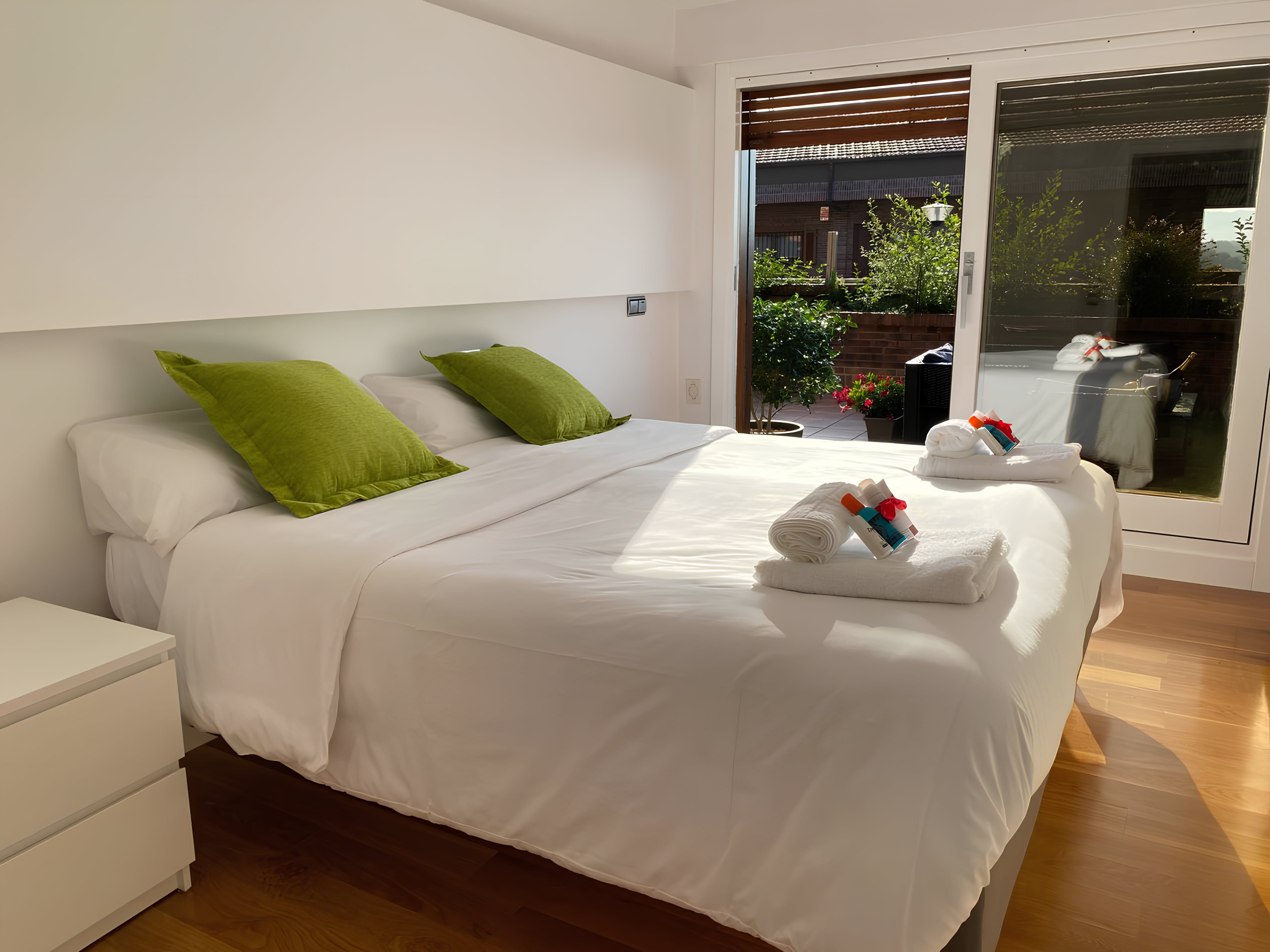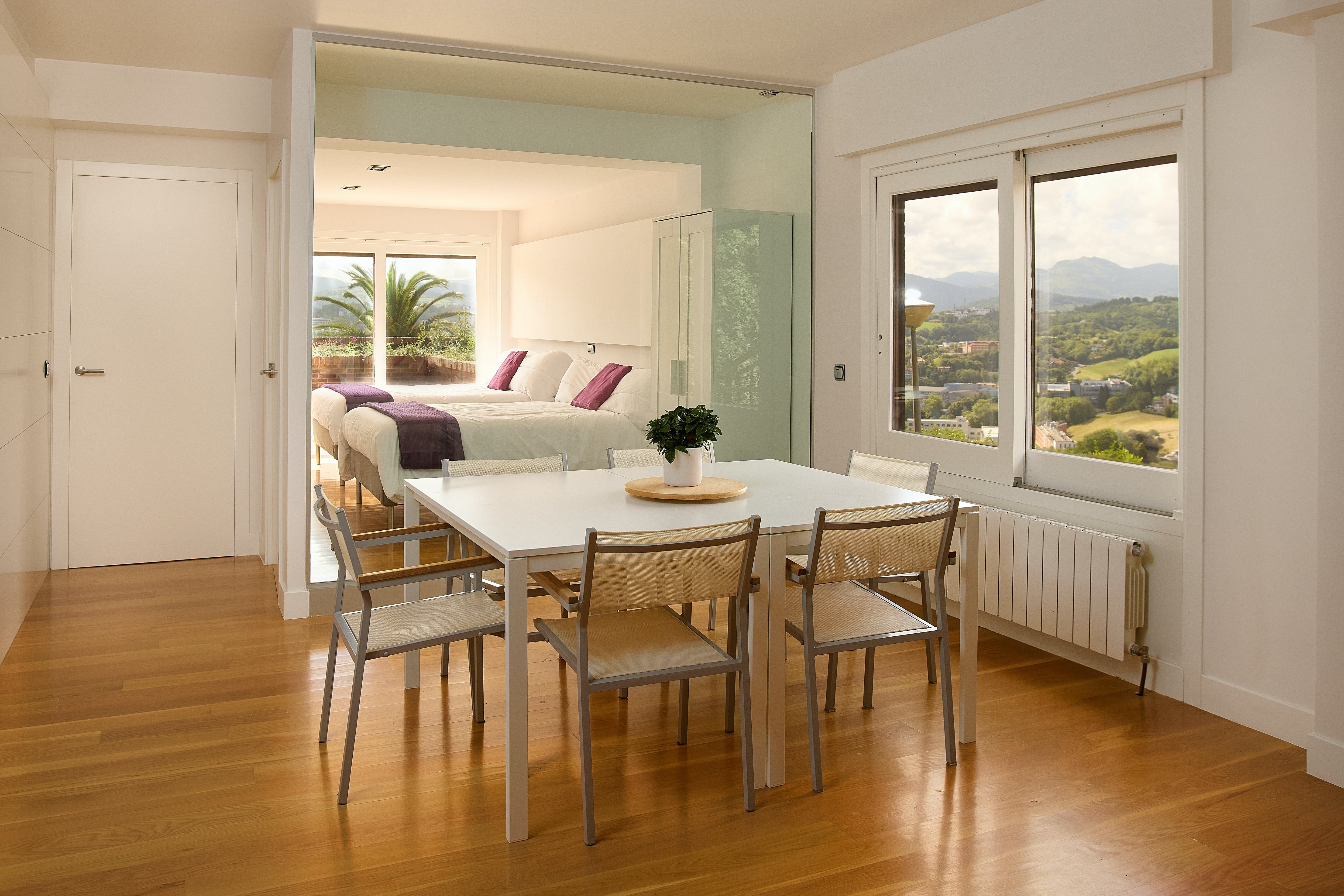 Step into a world of sophistication and comfort as you enter this meticulously designed San Sebastián apartment. The spacious living areas are ideal for relaxation, adorned with contemporary furnishings and large windows that invite natural light to flood the space. The well-equipped kitchen boasts modern appliances, making meal preparation a delight. Each of the four bedrooms offers a tranquil escape, with plush bedding and thoughtful touches, while the bathrooms provide a spa-like experience with luxurious finishes. A unique glass partition between one bedroom and the dining area adds a stylish architectural feature, although it might compromise privacy for some.