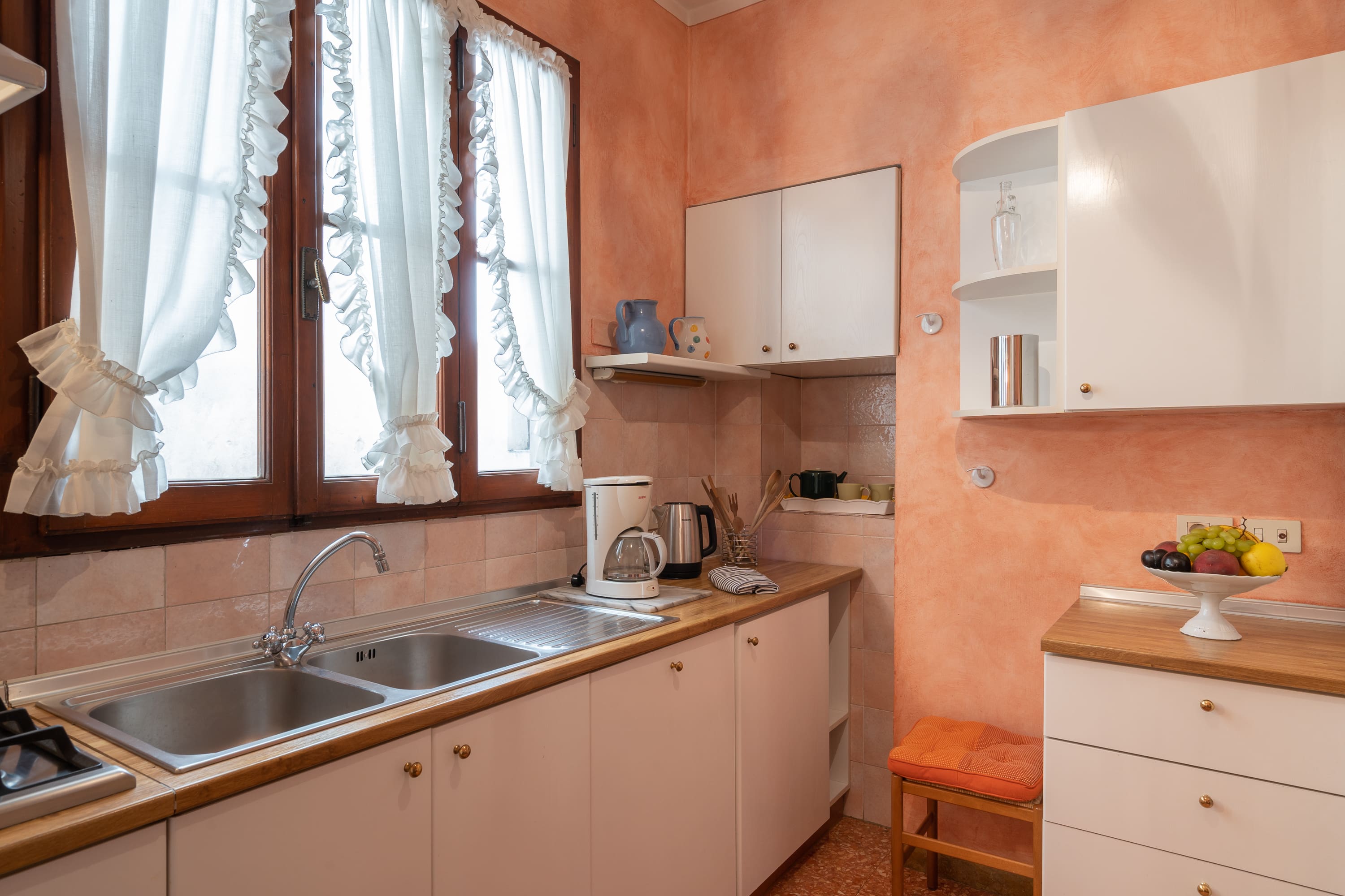 Accommodating up to seven guests, this apartment features three bedrooms and three bathrooms. While the split-level design adds character, please note that stairs may pose challenges for those with reduced mobility. A cot is available upon request for families with young children. Explore our luxury villa rentals in Italy for more exceptional properties.
