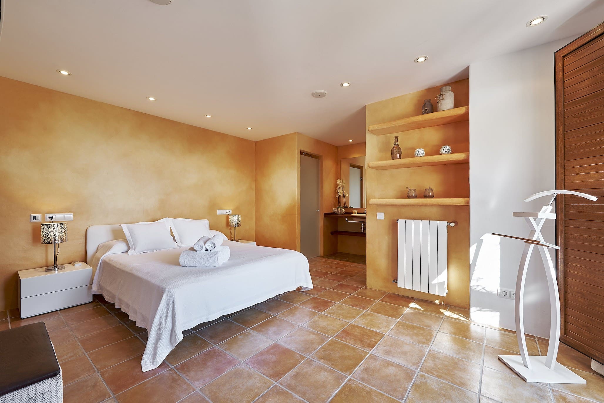 Step outside to experience the vibrant outdoor spaces of Casa Roca. The expansive terrace offers stunning panoramic views, while the large swimming pool invites you to cool off under the warm Spanish sun. The landscaped gardens and multiple outdoor dining areas provide idyllic spots to enjoy al fresco meals or unwind with a cocktail. The villa’s location offers easy access to the serene beauty of Ibiza’s countryside and coastline.