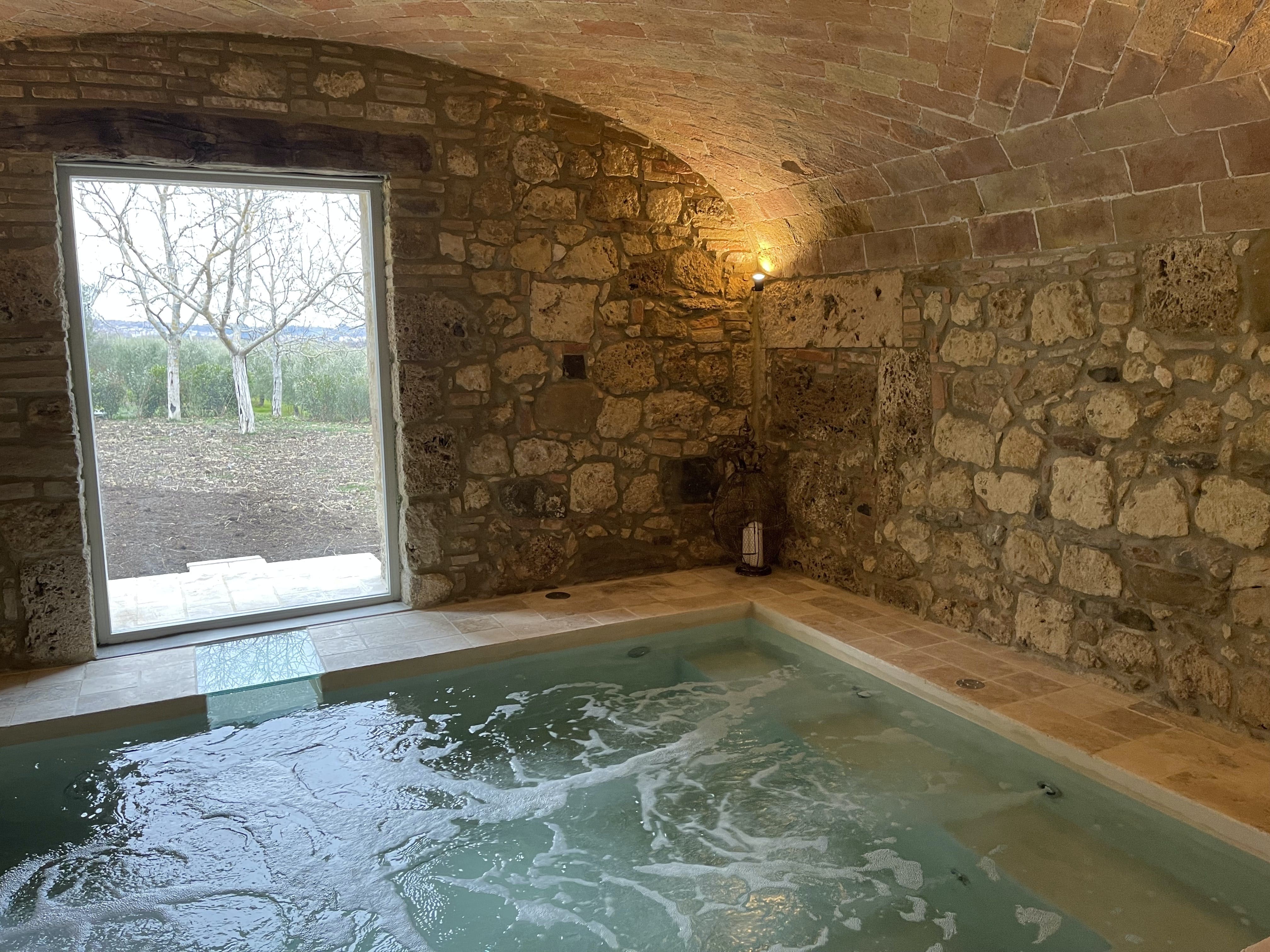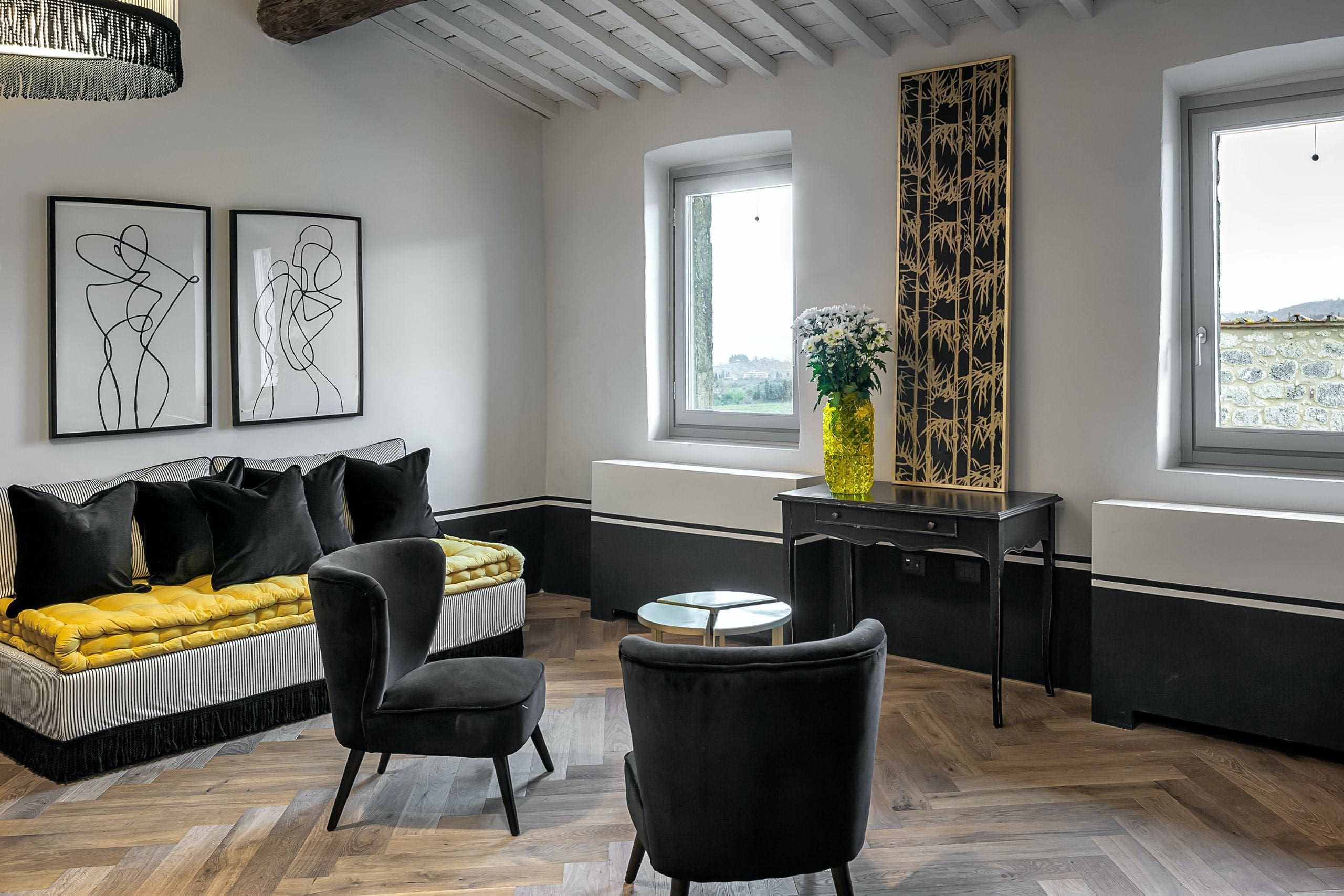 A: The standout feature is the blend of historical elegance with modern luxury, including frescoes and a large swimming pool with countryside views.