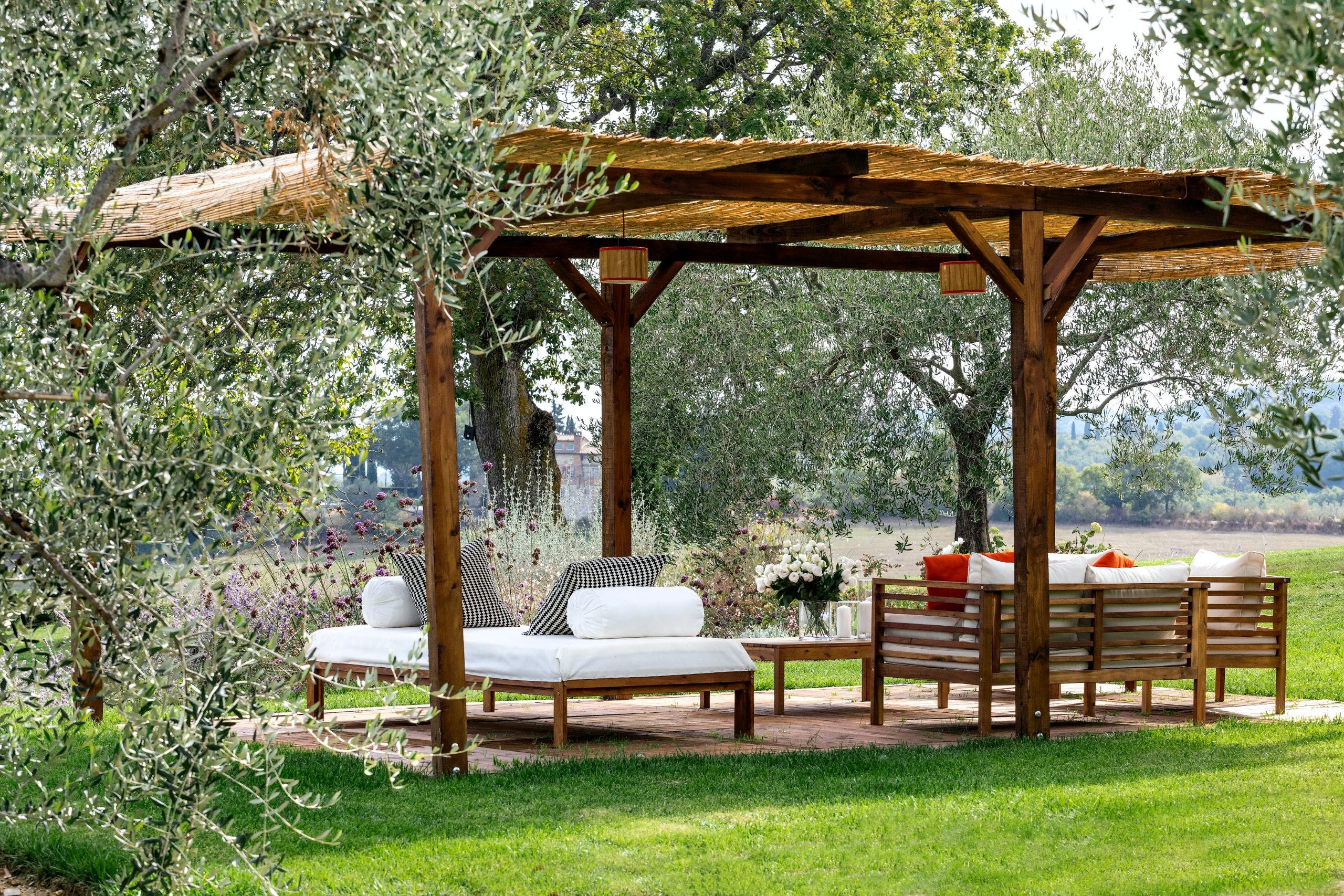 Surrounded by the rolling hills of Tuscany, the outdoor spaces of Palazzo Poggio Sarteano are nothing short of breathtaking. The expansive garden is perfect for leisurely strolls, while the swimming pool, open from the last Saturday of April to the first Saturday of October, offers a refreshing escape from the summer heat. Enjoy alfresco dining under the covered pergola or relax on a sun lounger and soak up the Italian sun.