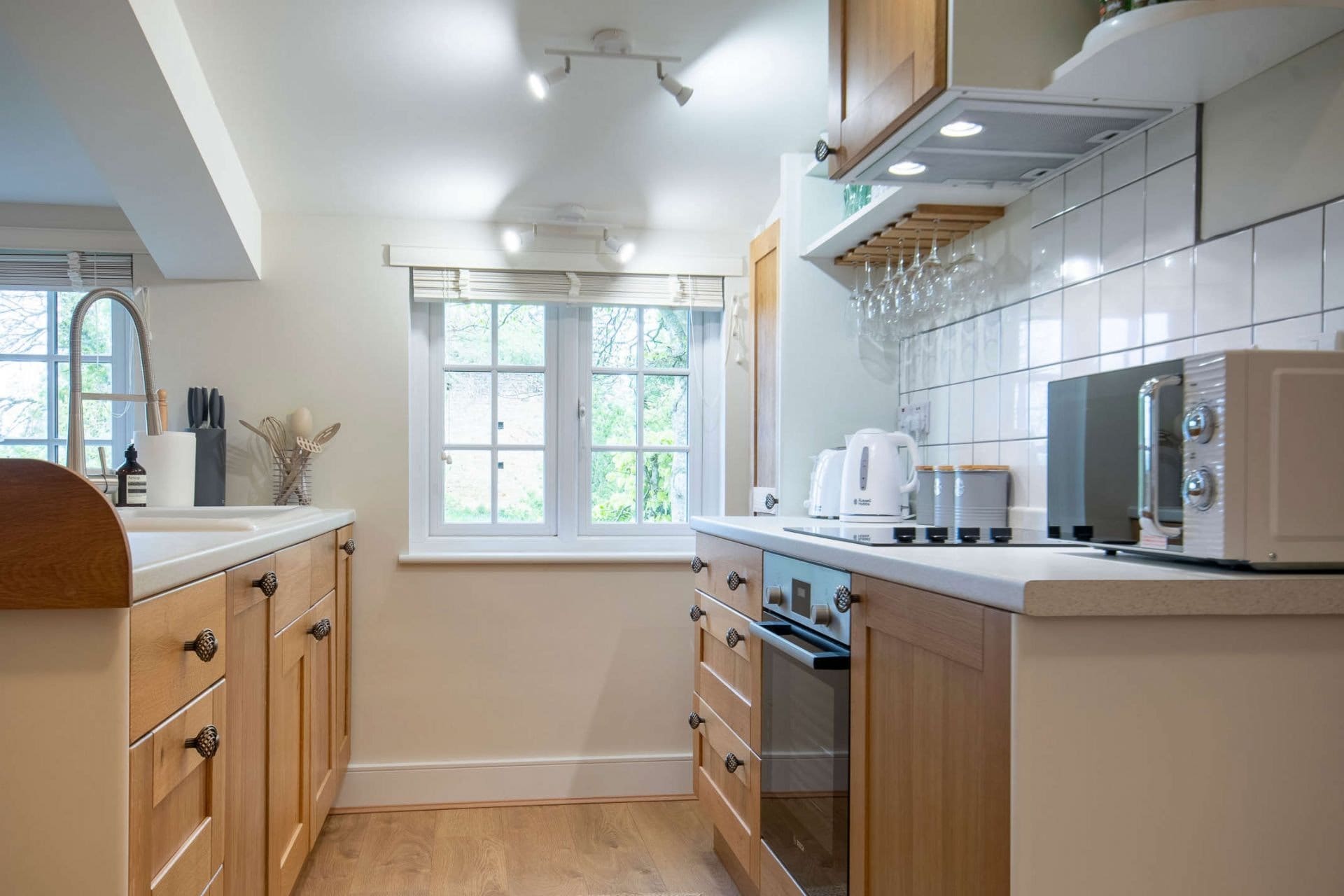 Surrounded by the Cotswolds’ rolling hills and wildflower fields, this peaceful home in Moreton in Marsh is the perfect country retreat. The panelled wood exterior gives way to a bright and comfortable living space, with a slanted roof and postcard windows giving it the feeling of a secluded log cabin. Wake up in the elegantly simple bedrooms before fixing up a hearty breakfast. Then lace up your walking boots for a ramble along the surrounding nature trails that are brimming with birds, herds of deer and wild orchids in the nearby woodlands. After a day of walking, riding or exploring the market town of Stow-on-the-Wold – five minutes away by car – come back home for a barbecue on the front patio as you watch the sunset turn the meadows a dazzling shade of gold.