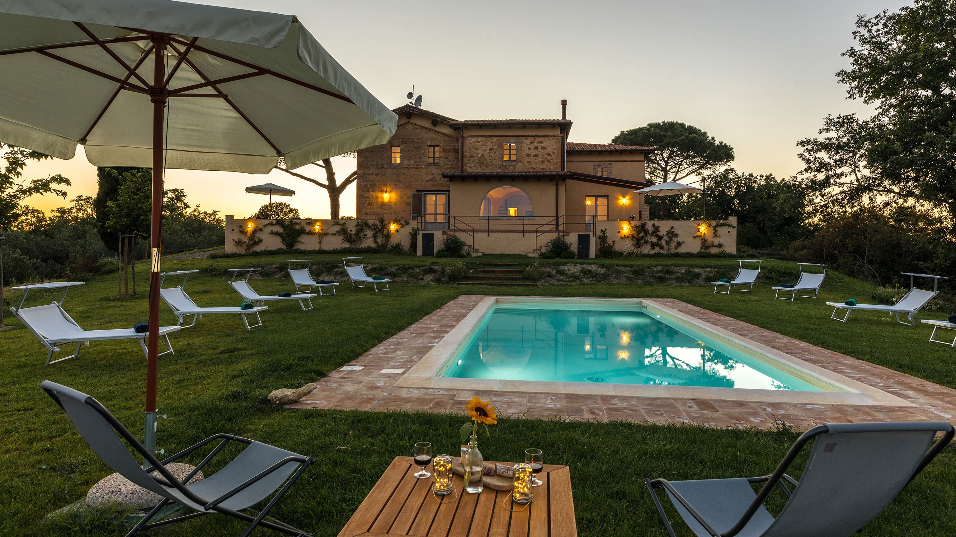 The outdoor areas are a true highlight, with a magnificent swimming pool available from April to October, set amidst a manicured lawn fringed with local flora. Multiple terraces provide perfect spots for alfresco dining, all offering breathtaking views of the Tuscan countryside. Whether lounging by the pool or enjoying a sunset meal, this setting is designed for relaxation and rejuvenation.