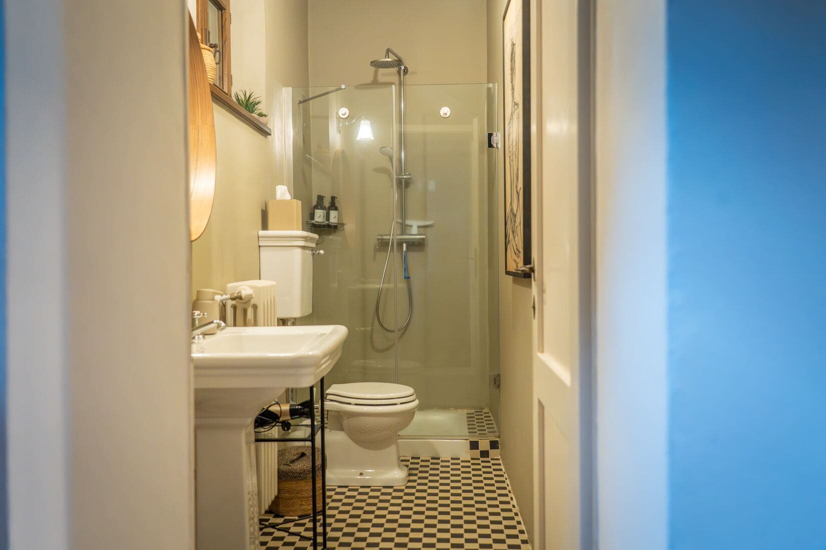 Upon entering, you’ll be captivated by the apartment’s harmonious blend of traditional architecture and contemporary design. The spacious living areas feature a working fireplace, creating a warm and inviting atmosphere perfect for family gatherings. The kitchen, equipped with modern amenities, seamlessly connects to the dining area, offering a delightful space for culinary exploration. With five beautifully appointed bedrooms, including a top-floor suite with a luxurious clawfoot tub, the apartment comfortably accommodates up to nine guests. Each room exudes charm and comfort, ensuring a restful retreat after a day of exploration.