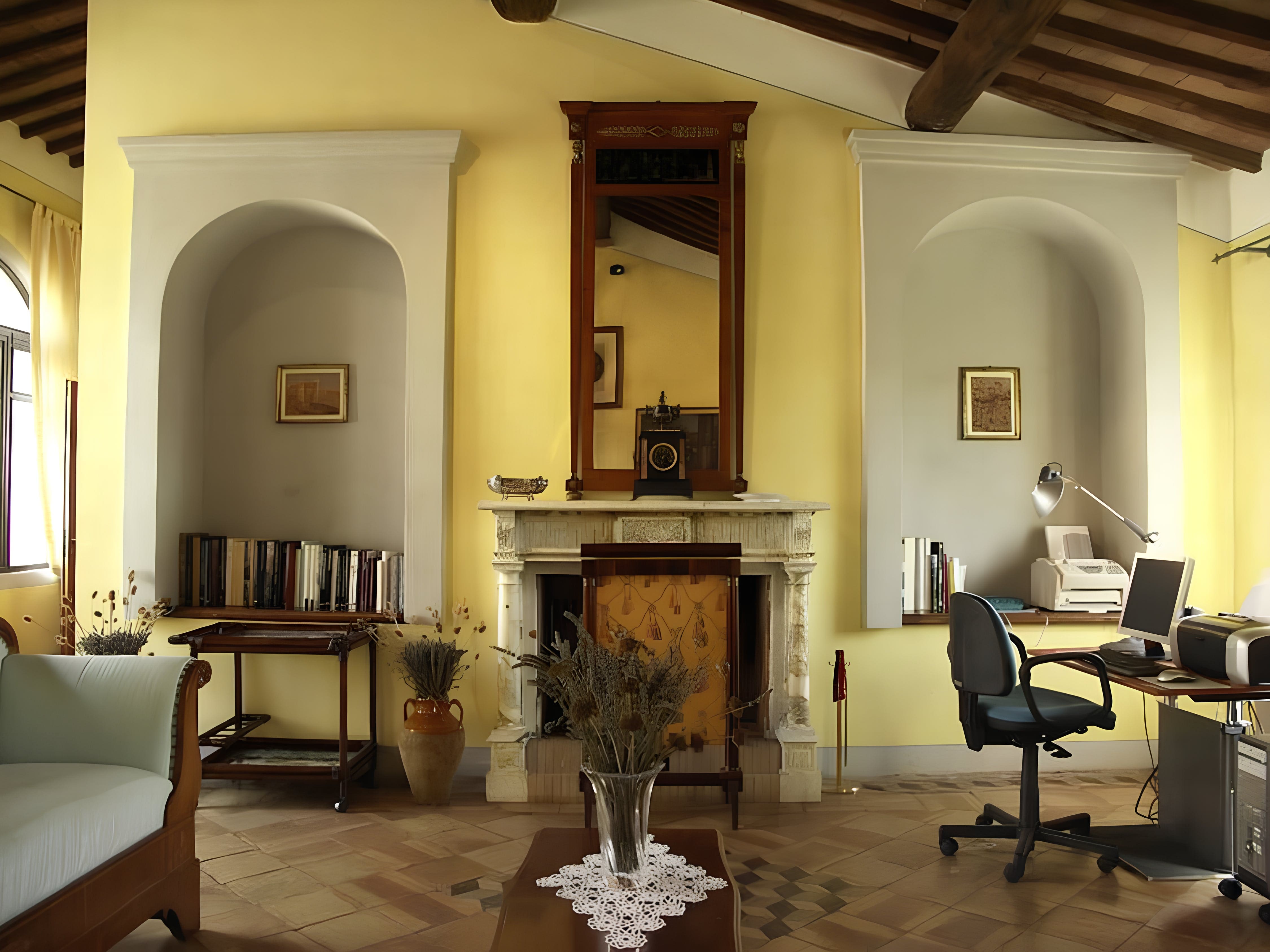 Surrounded by the breathtaking Tuscan landscape, the outdoor spaces of the apartment are equally enchanting. Relax by the private swimming pool, open from June to September, or enjoy a friendly match on the tennis court. The expansive grounds invite leisurely strolls among the lush gardens, and the outdoor dining area is perfect for al fresco meals against the stunning backdrop of rolling hills.